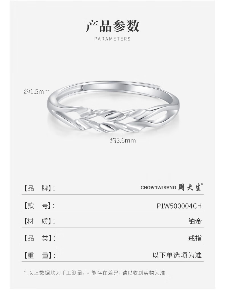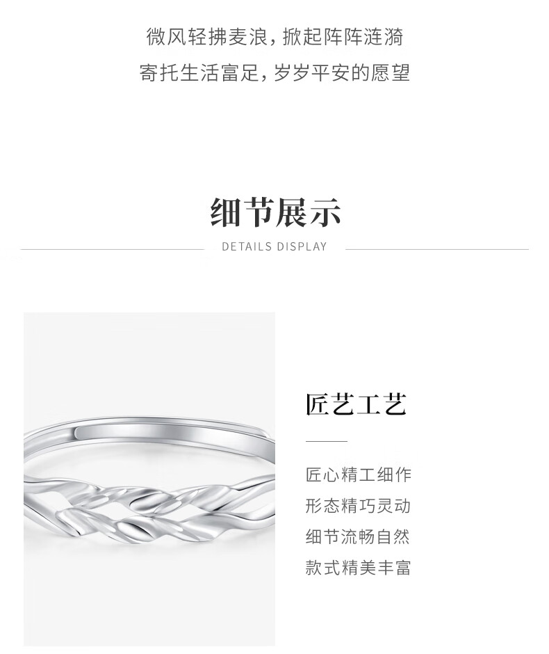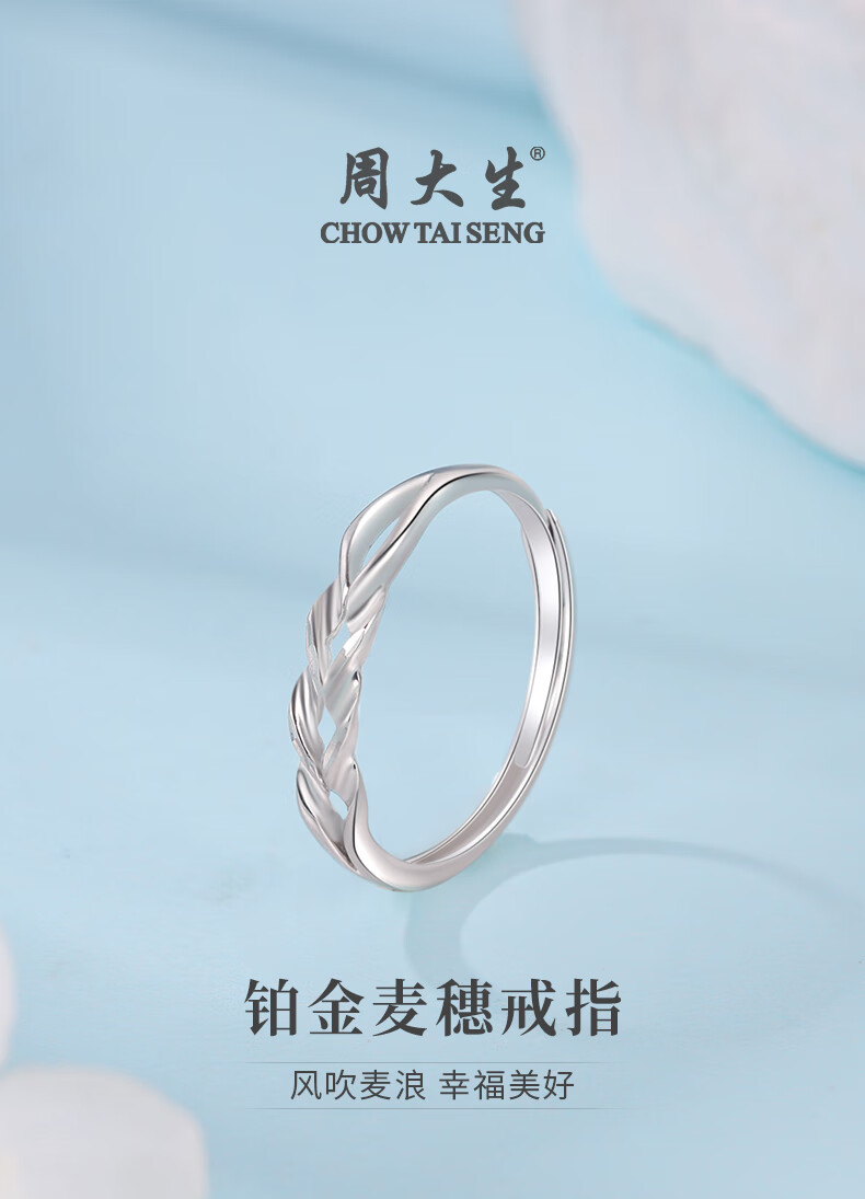 Zhou Taisheng platinum ring wheat ear ring PT950 live mouth exquisite light luxury gift for girlfriend and wife Christmas gift wheat ear ring about 2.2g