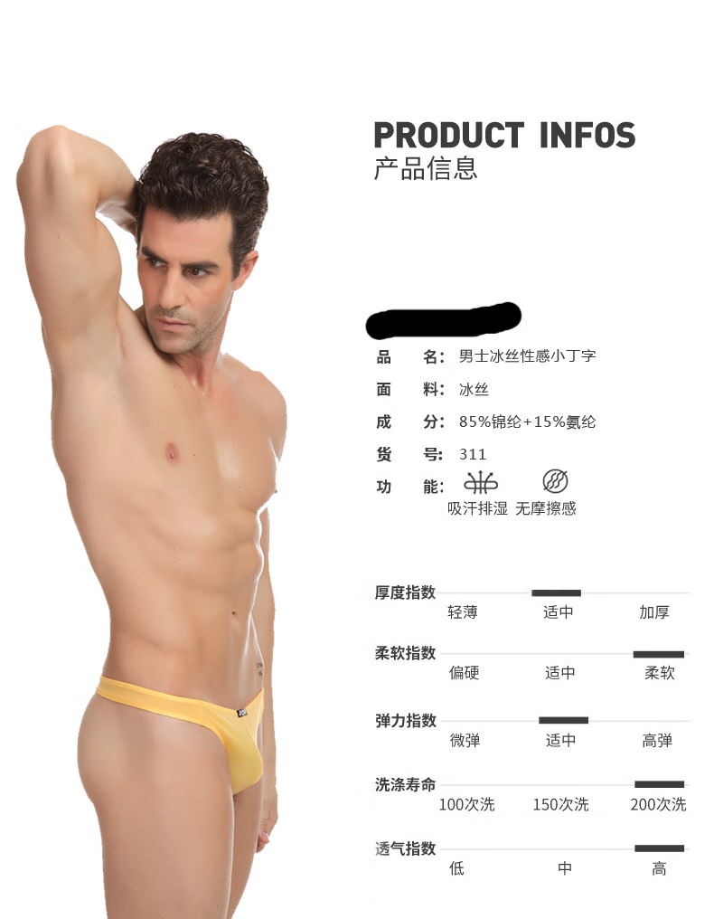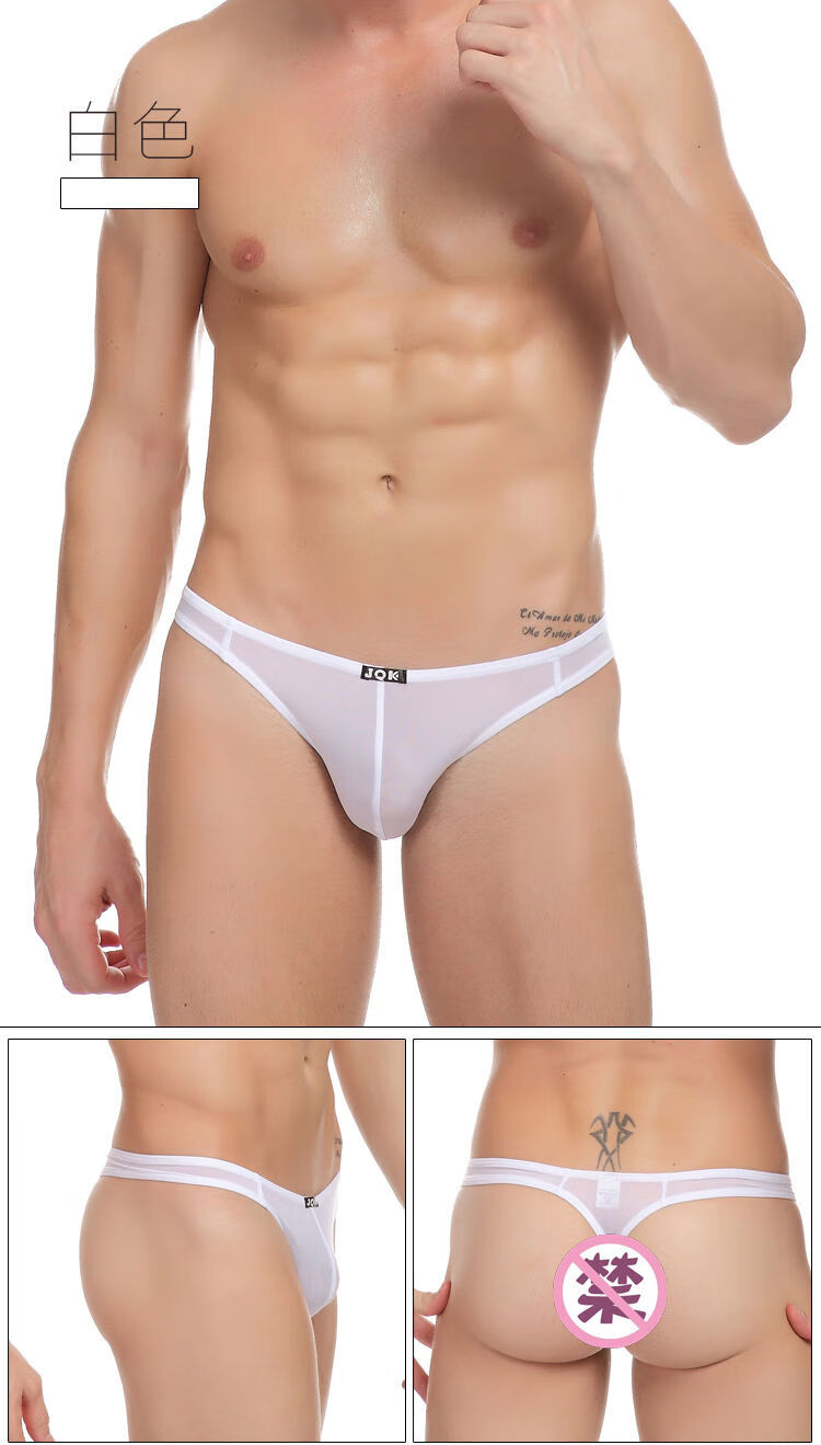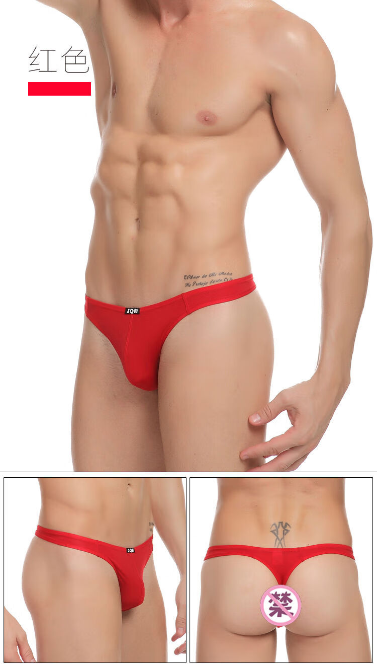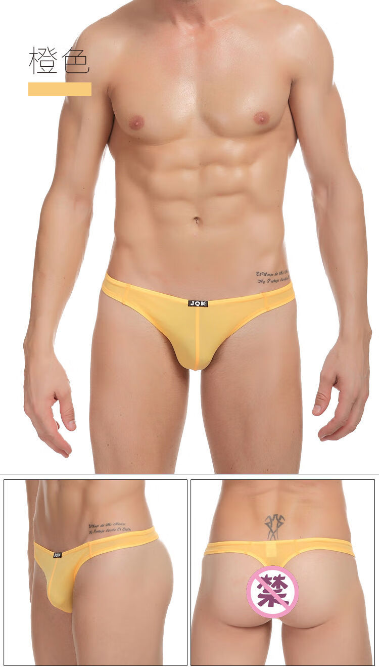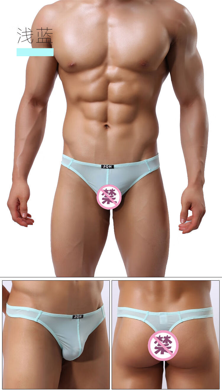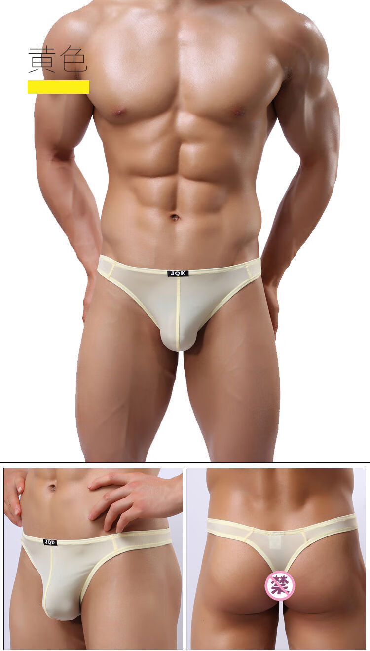 FMSERUIOS men's underwear hip lift thong low waist sexy ice silk U convex breathable thin comfortable sports youth briefs black XL