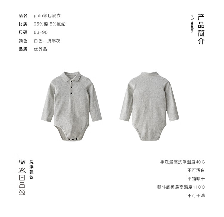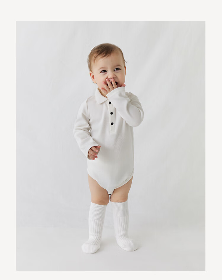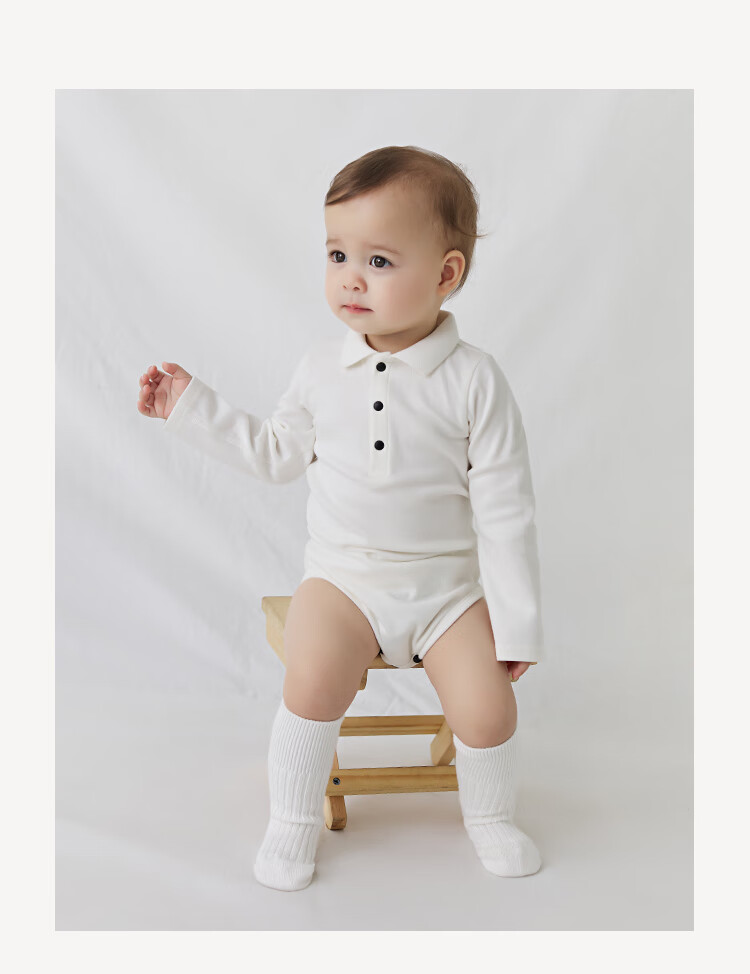 Enhennbaby baby lapel bag, spring baby jumpsuit, newborn one-year-old clothes, romper, white (one size smaller) 66cm