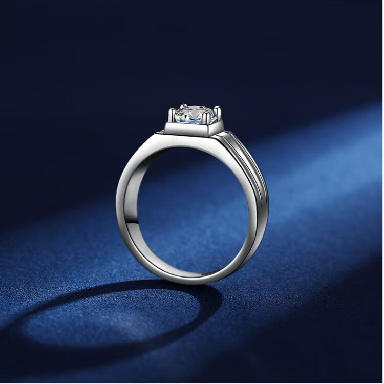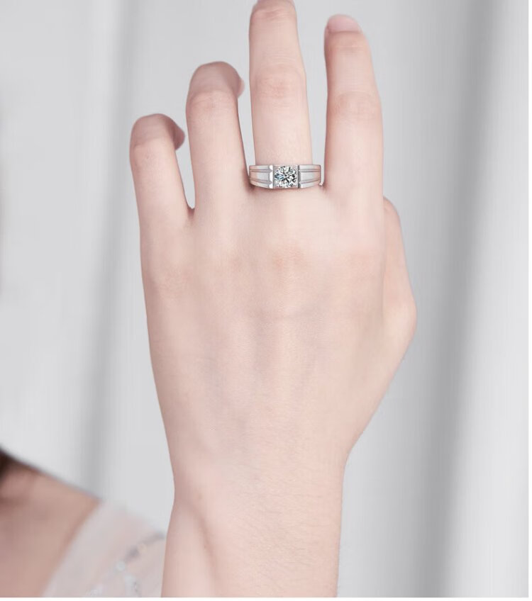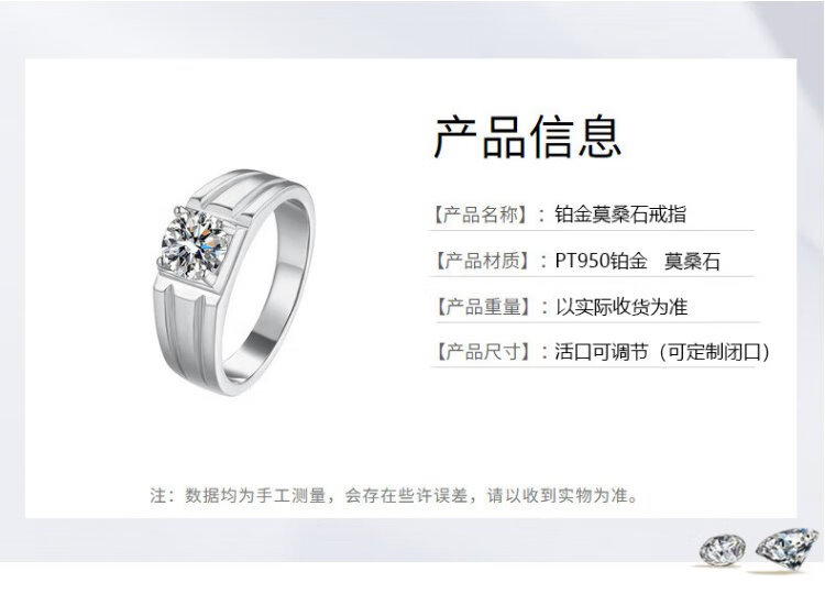 RHM platinum ring men's moissanite diamond platinum ring high-end fashion temperament engagement birthday gift for boyfriend platinum moissanite ring + certificate + gift box