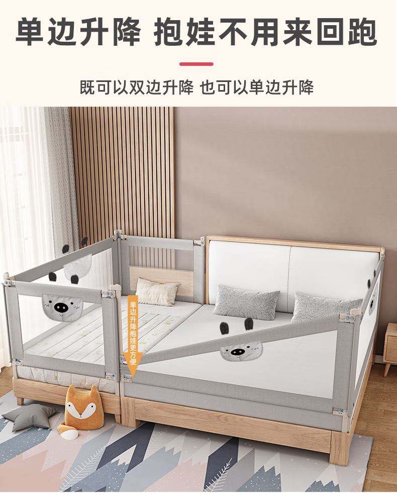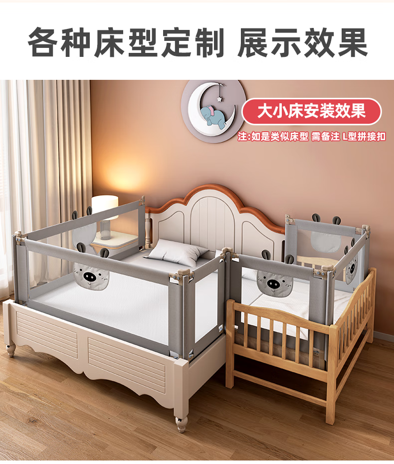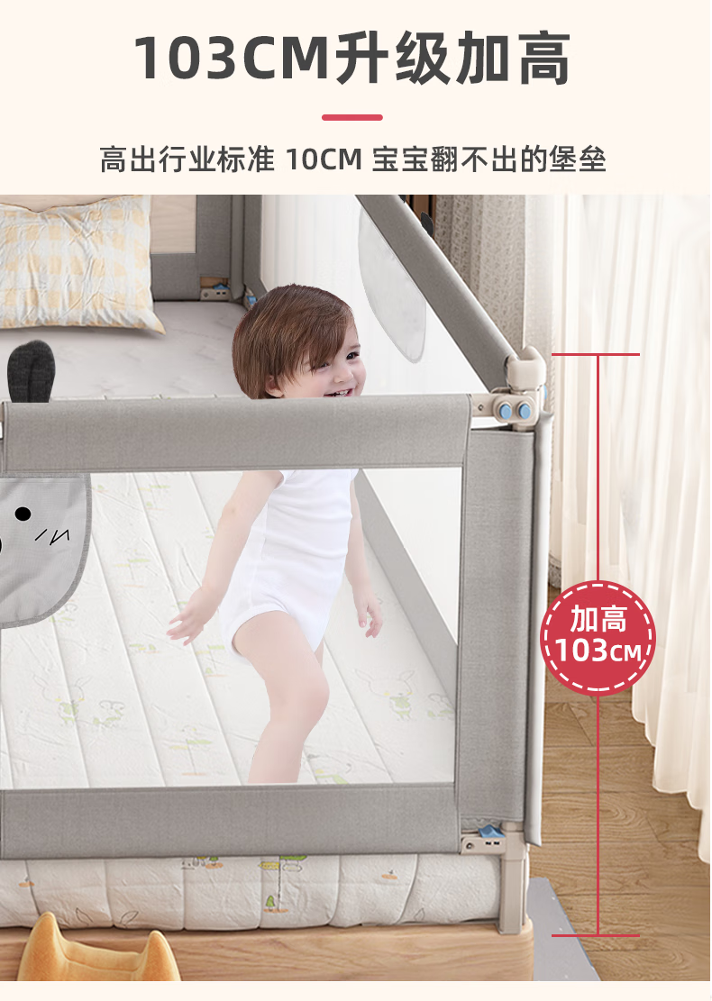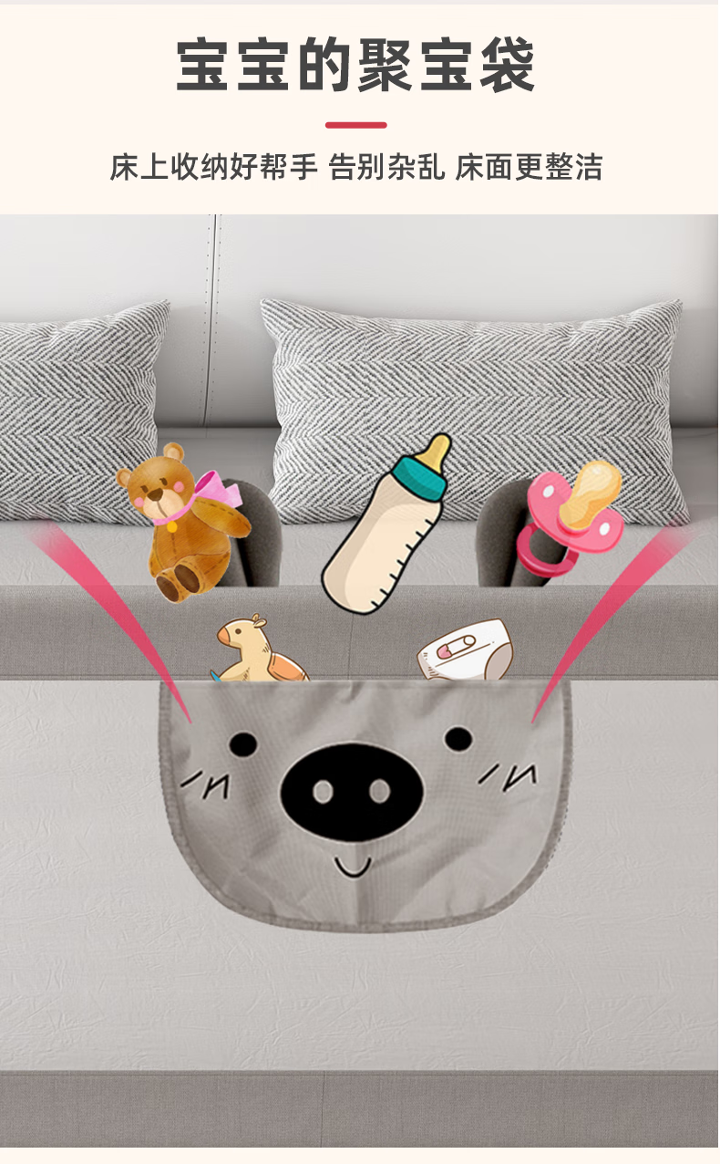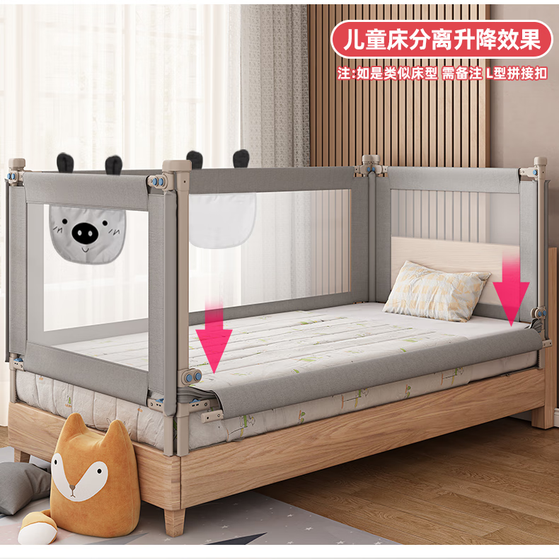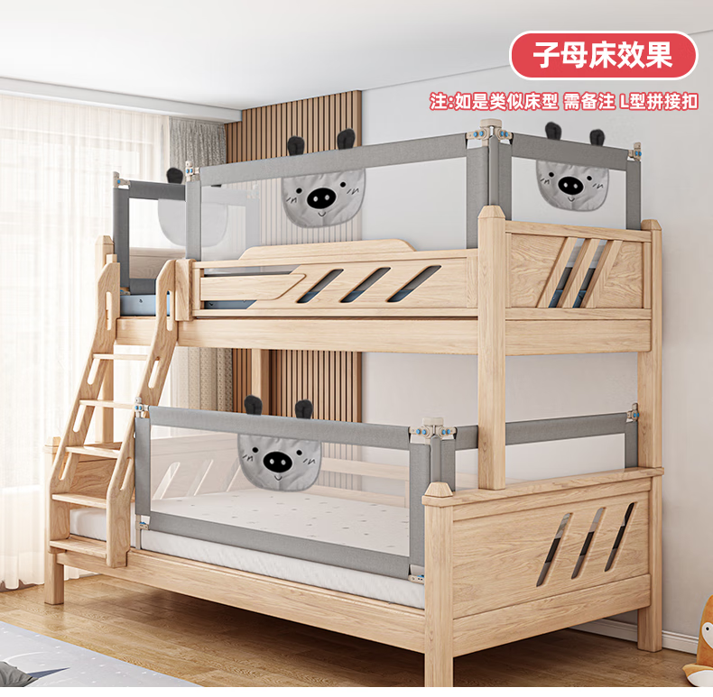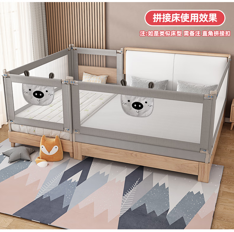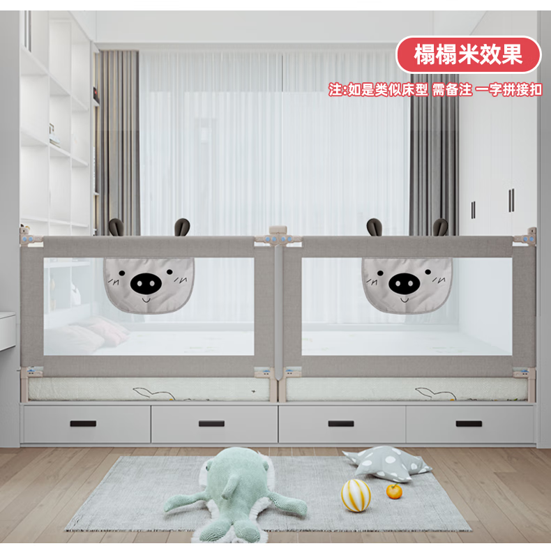 Beeio custom-made crib fence baby anti-fall guardrail crib with customized size bedside baffle Gray piggy 0.8-1.5 meters Remarks size/single-sided installation