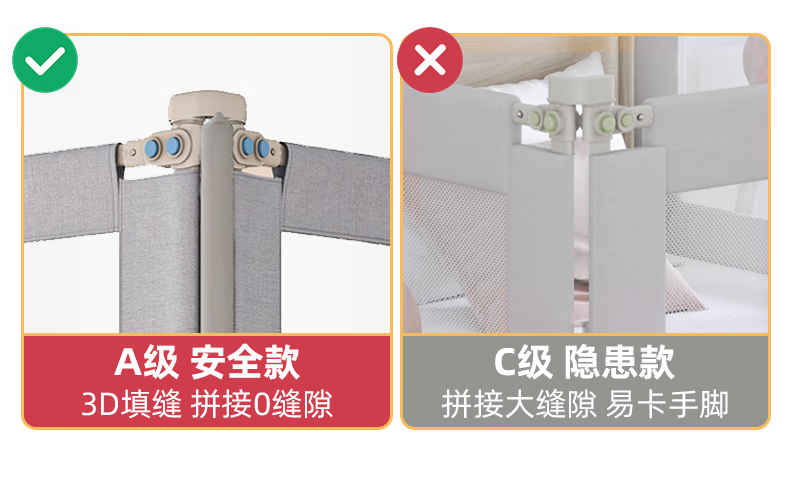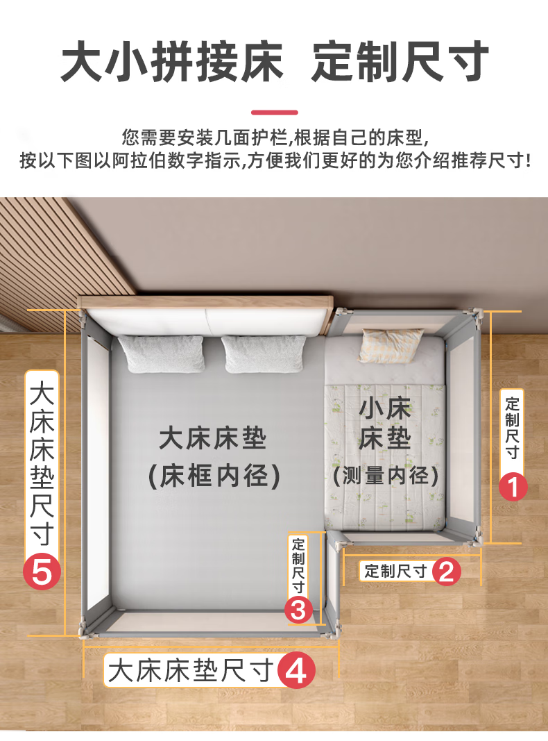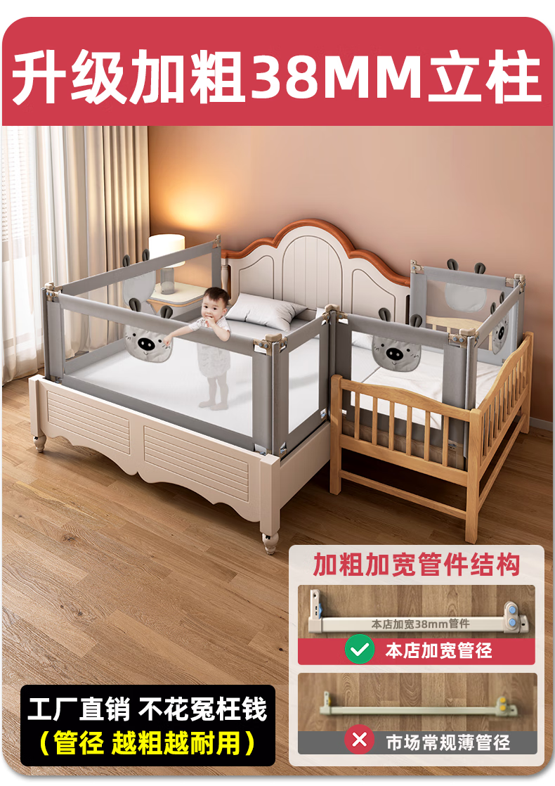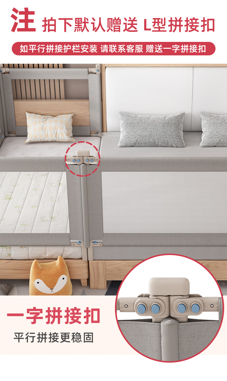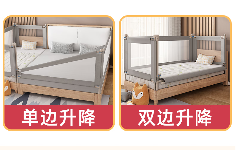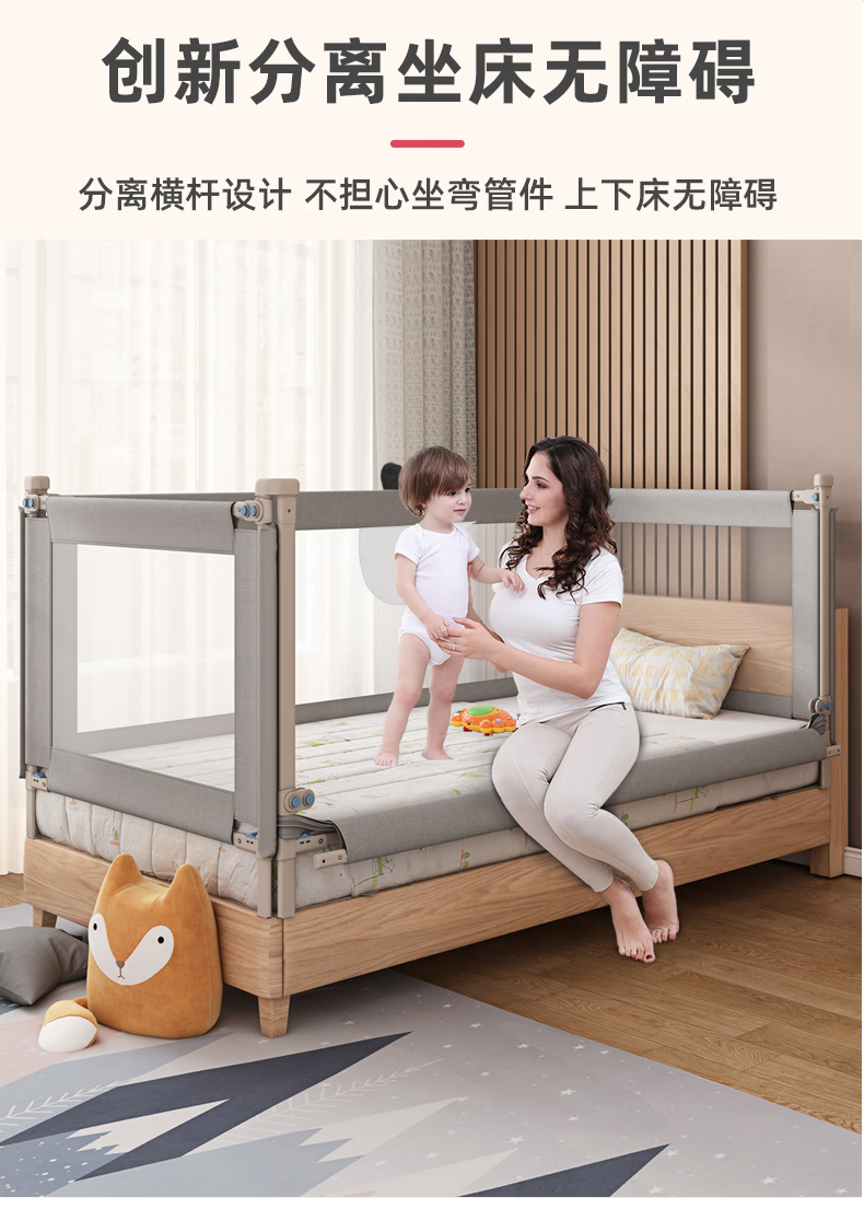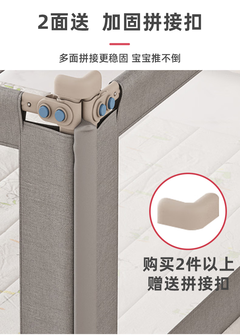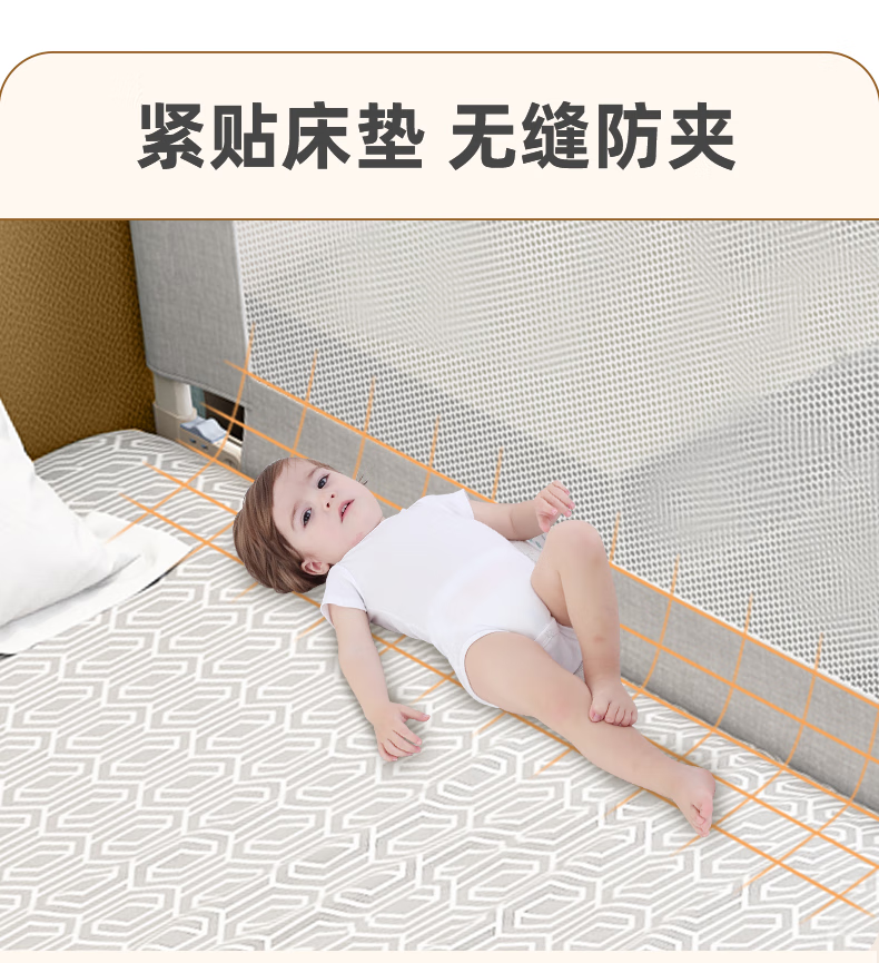 Beeio custom-made crib fence baby anti-fall guardrail crib with customized size bedside baffle Gray piggy 0.8-1.5 meters Remarks size/single-sided installation