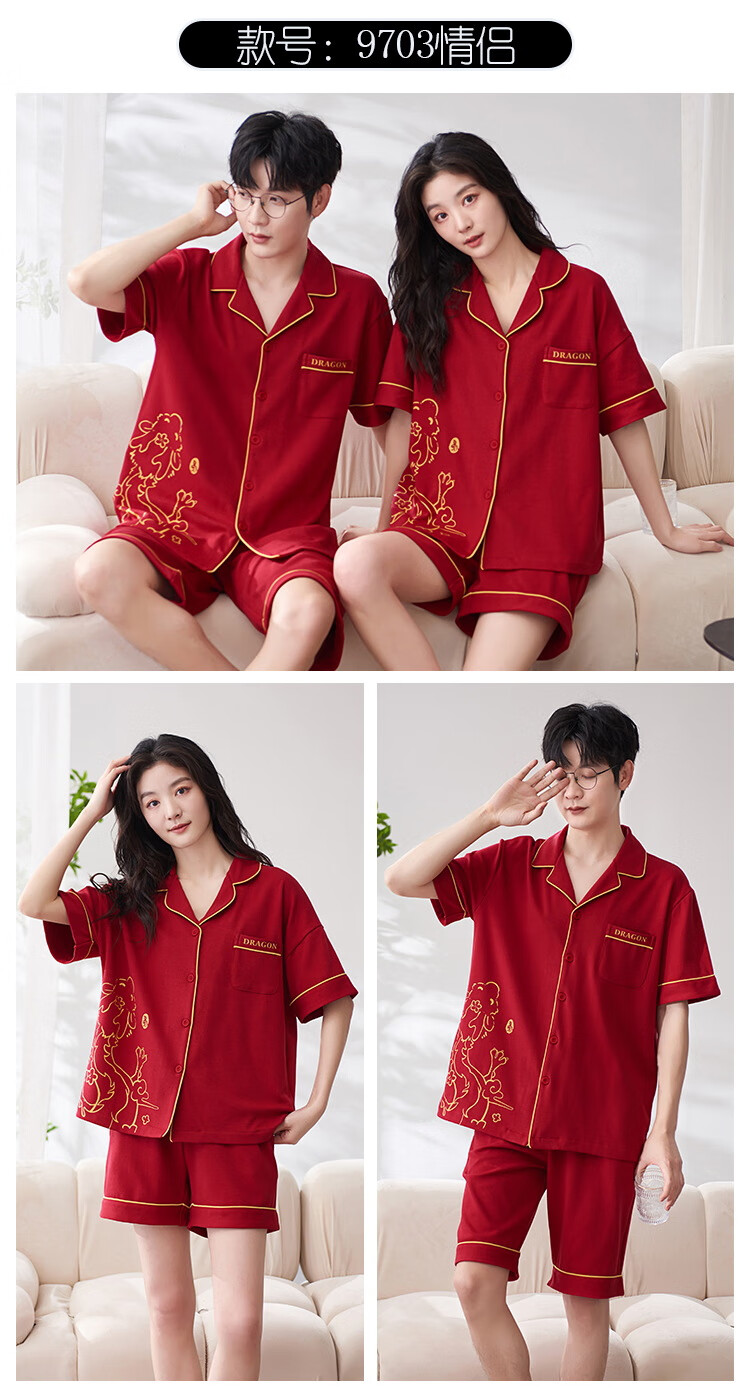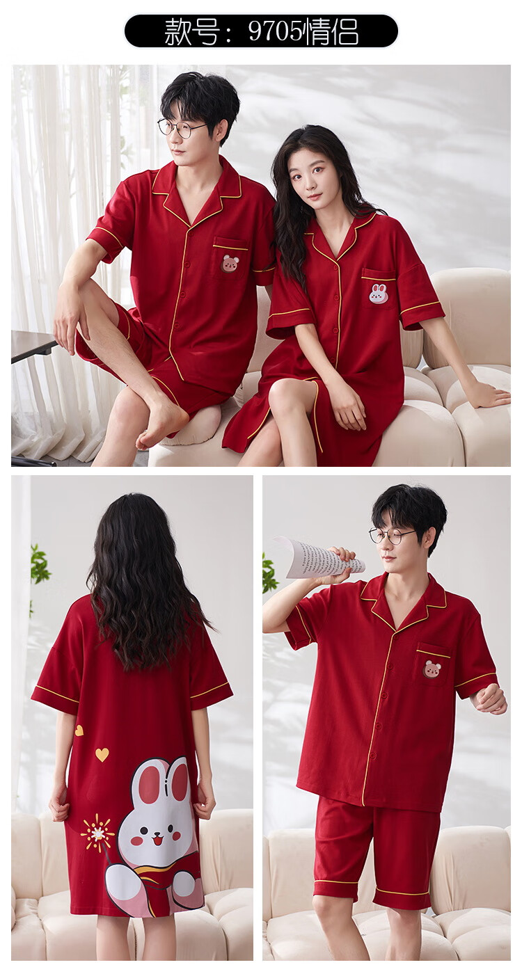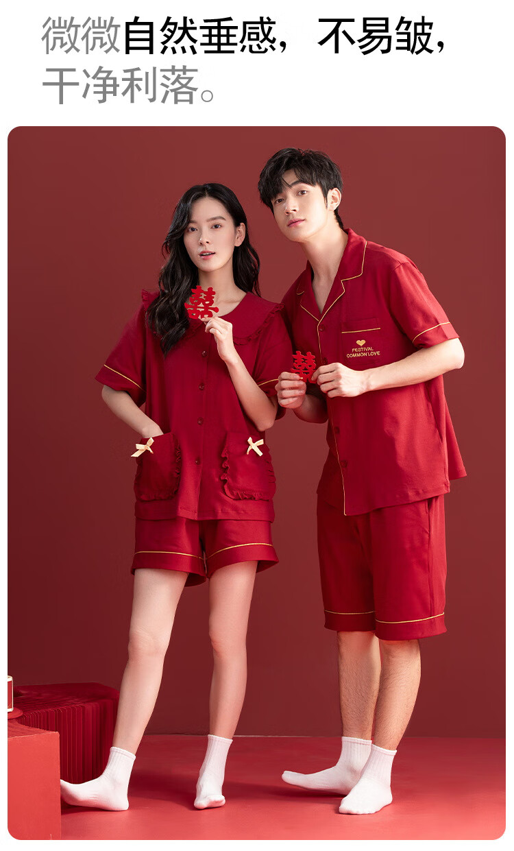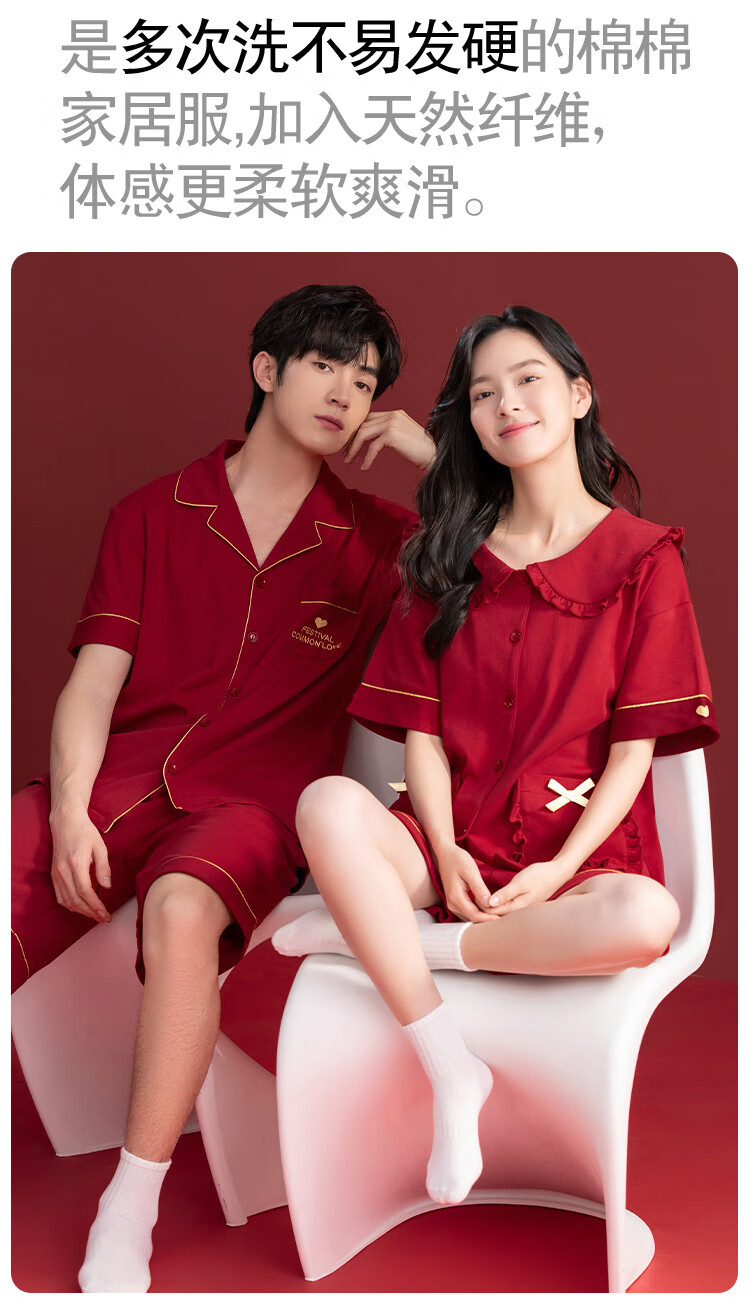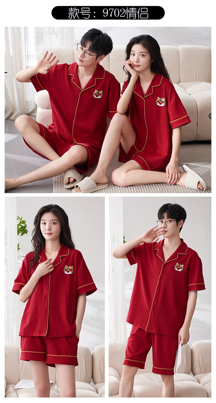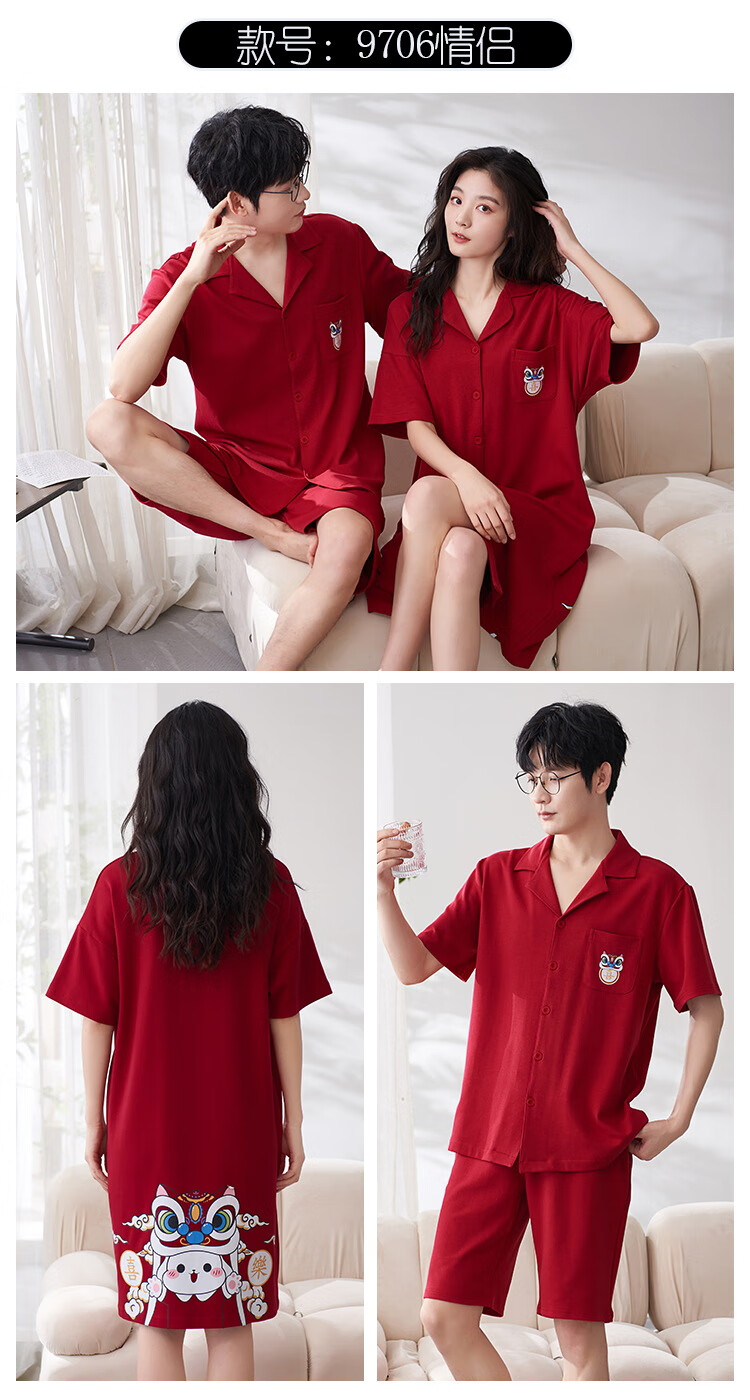 Pure cotton pajamas wedding newlyweds couple set red men's women's short-sleeved summer love couple's pajamas summer Z52012 couple XL male