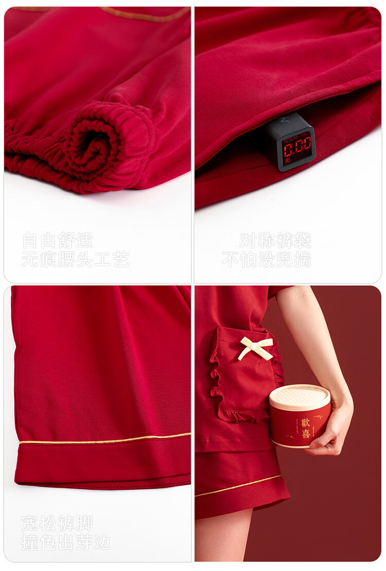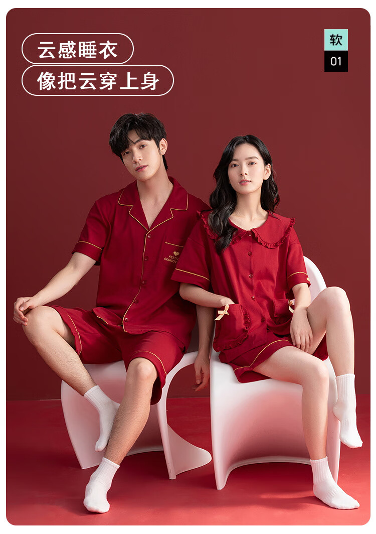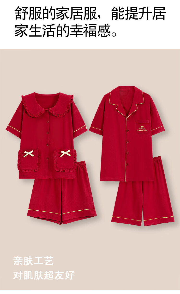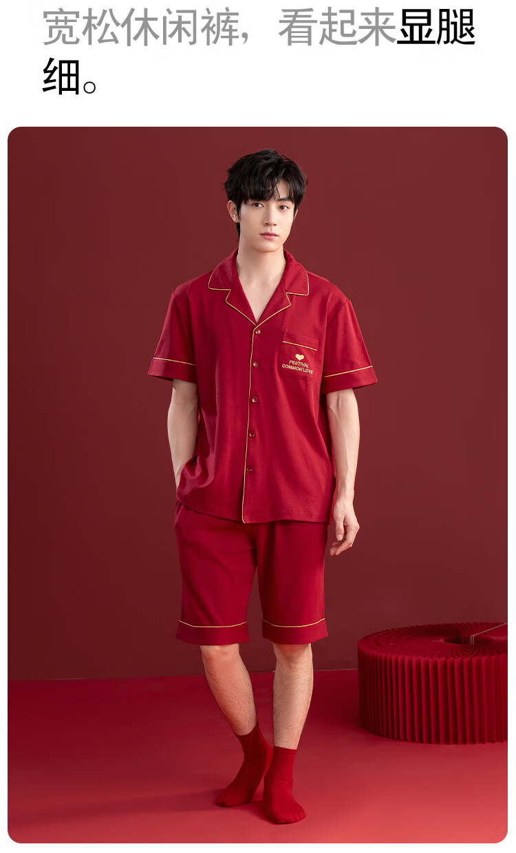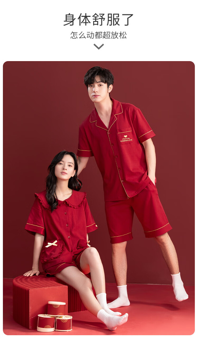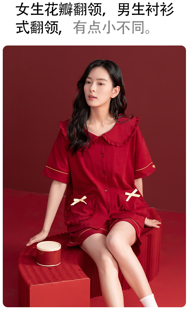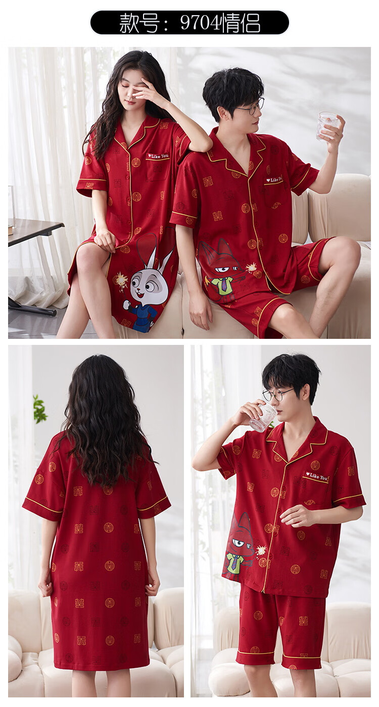 Pure cotton pajamas wedding newlyweds couple set red men's women's short-sleeved summer love couple's pajamas summer Z52012 couple XL male