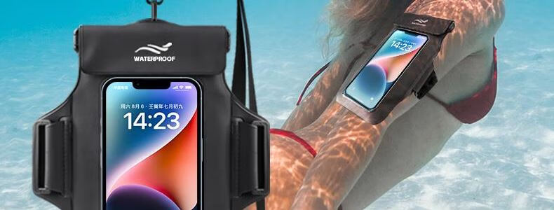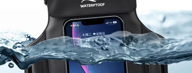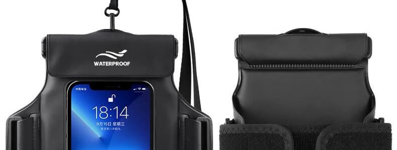 Meishut mobile phone waterproof bag can touch screen swimming rafting hot spring takeaway hanging neck arm arm sponge waterproof mobile phone case classic black 7 inches universal