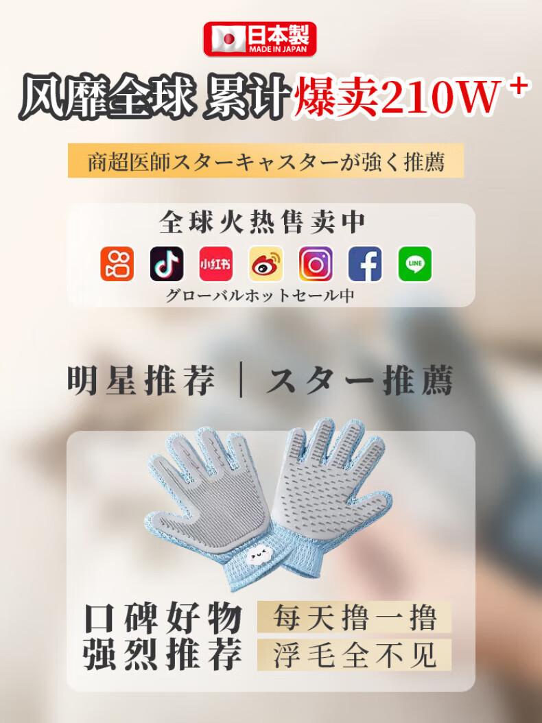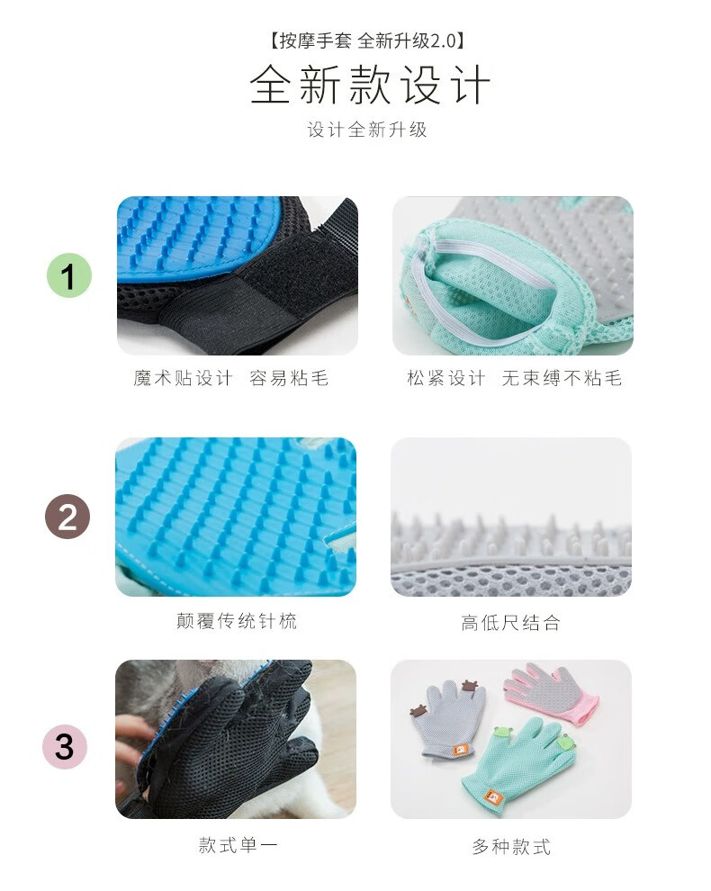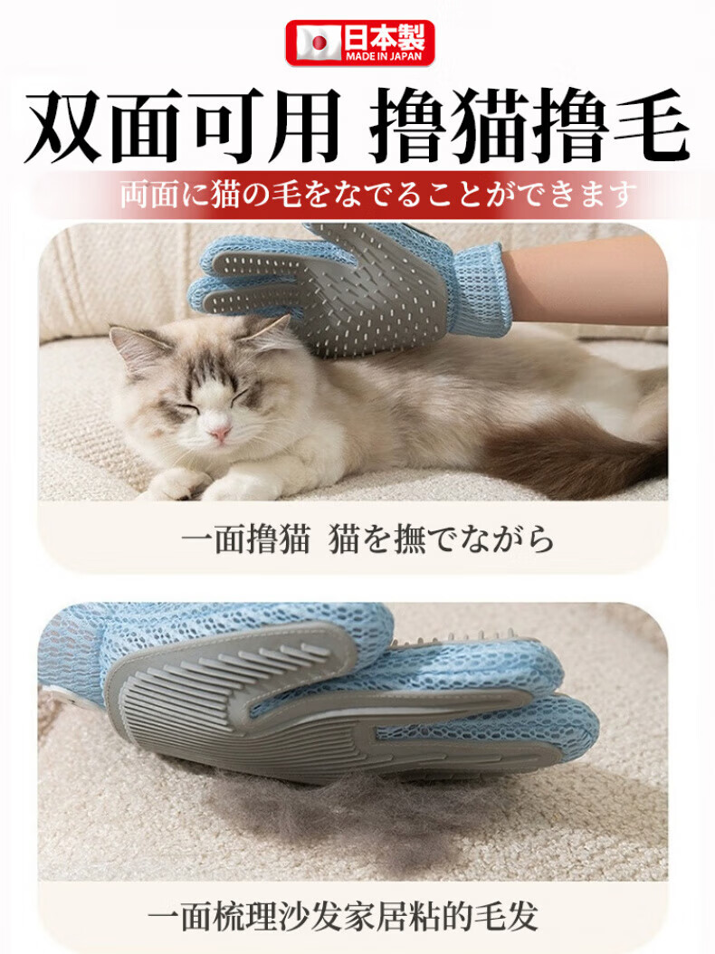 AILUKI Japanese pet cat grooming gloves, hair brush, cat combing artifact, de-floating hair supplies, cat hair comb, customer choice, Yunduo double-sided de-floating gloves