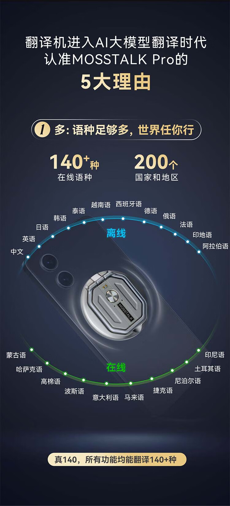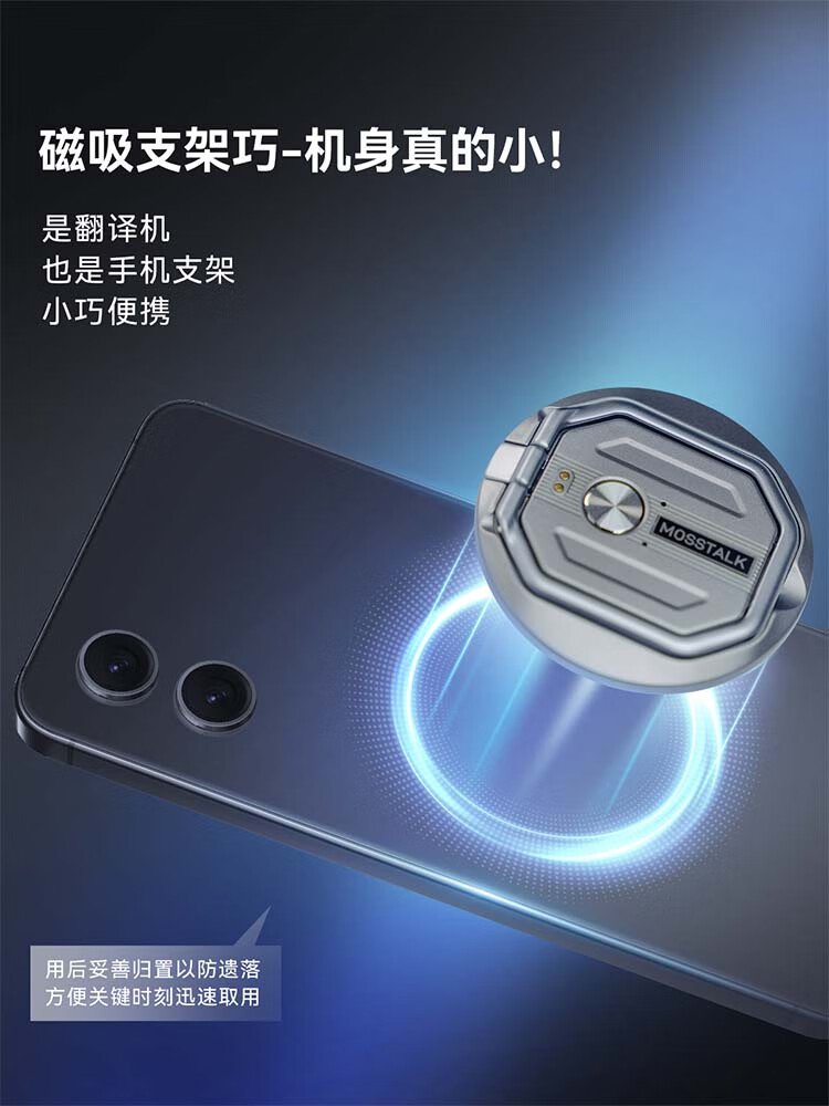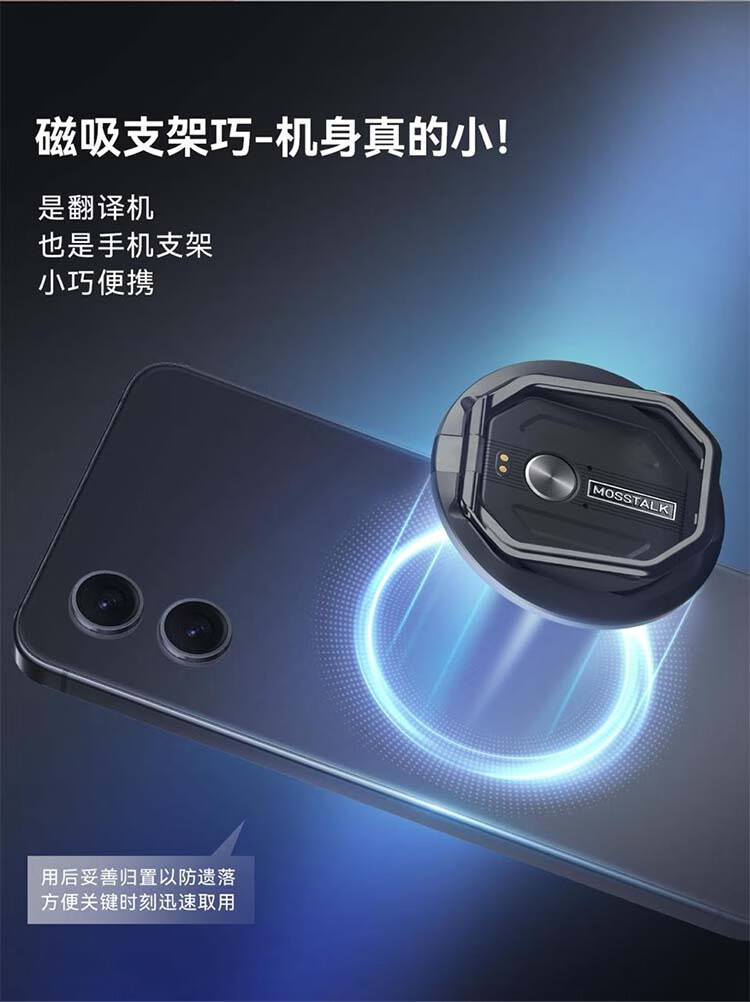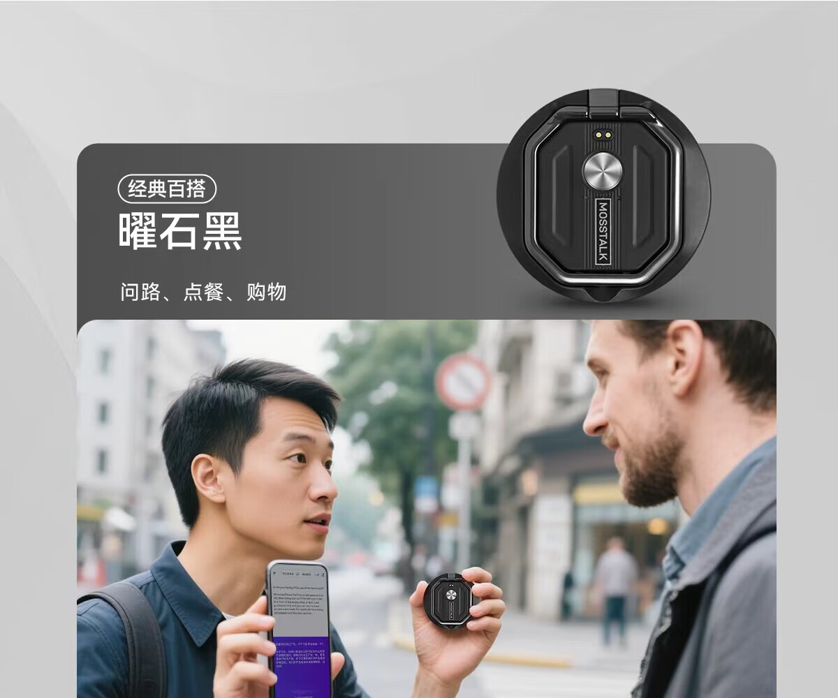 MOSSTALKAI translator large model magnetic handheld English translator intelligent voice real-time simultaneous interpretation translator portable overseas travel conference artifact offline translator AI large model intelligent translator Obsidian Black