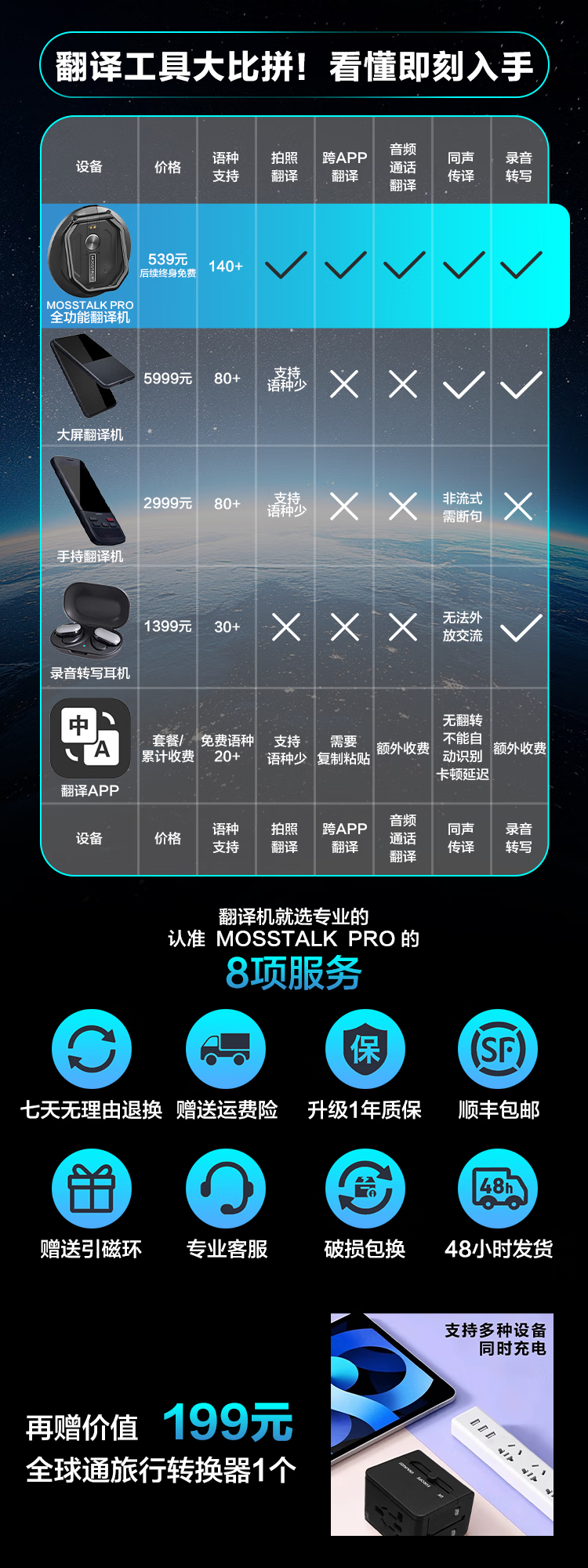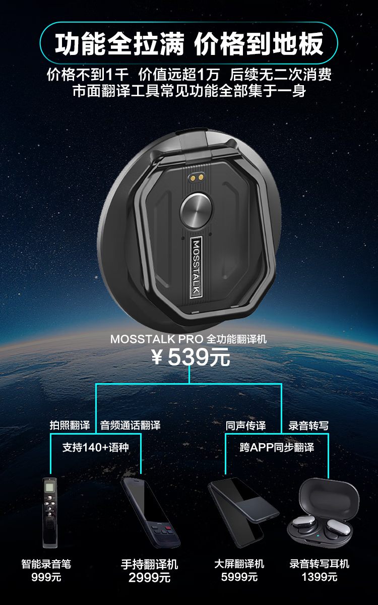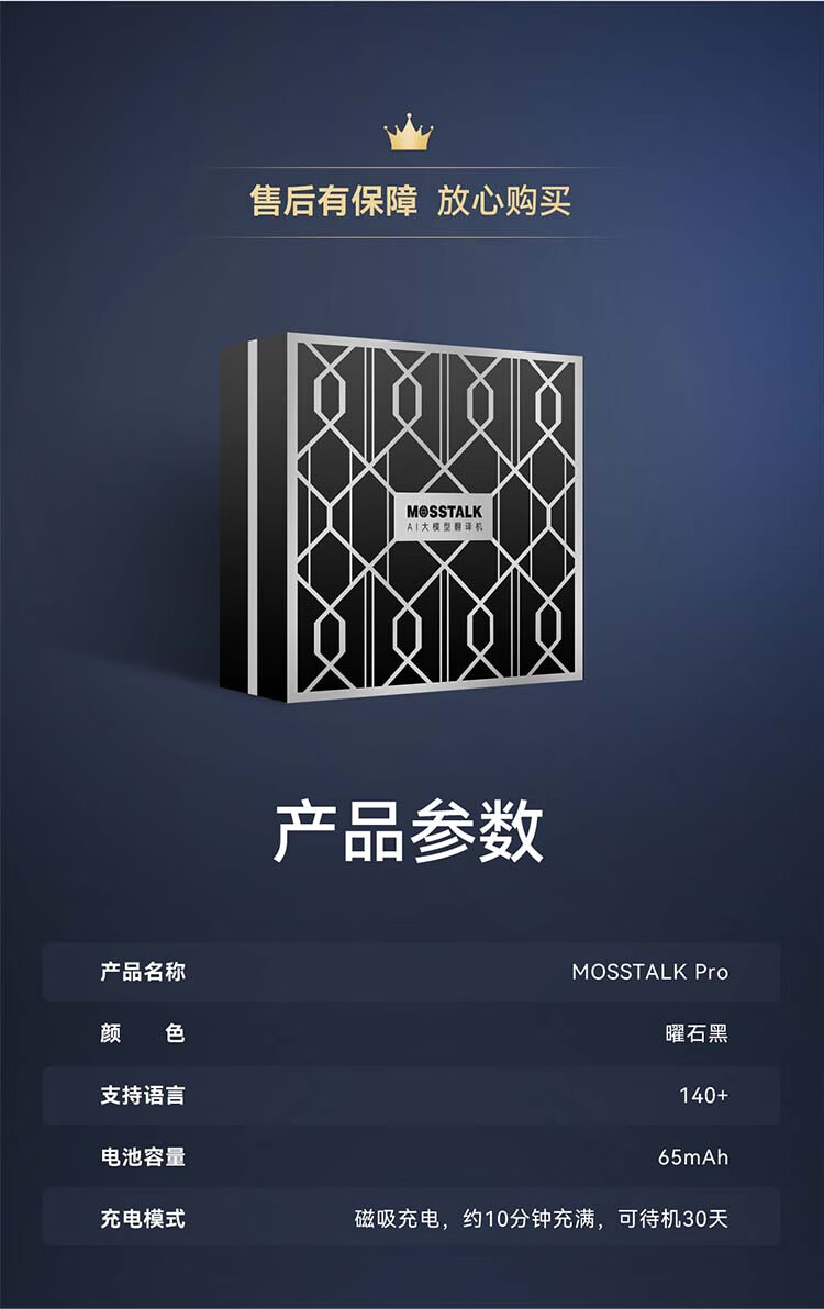 MOSSTALKAI translator large model magnetic handheld English translator intelligent voice real-time simultaneous interpretation translator portable overseas travel conference artifact offline translator AI large model intelligent translator Obsidian Black