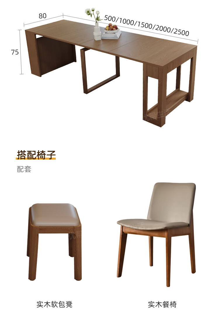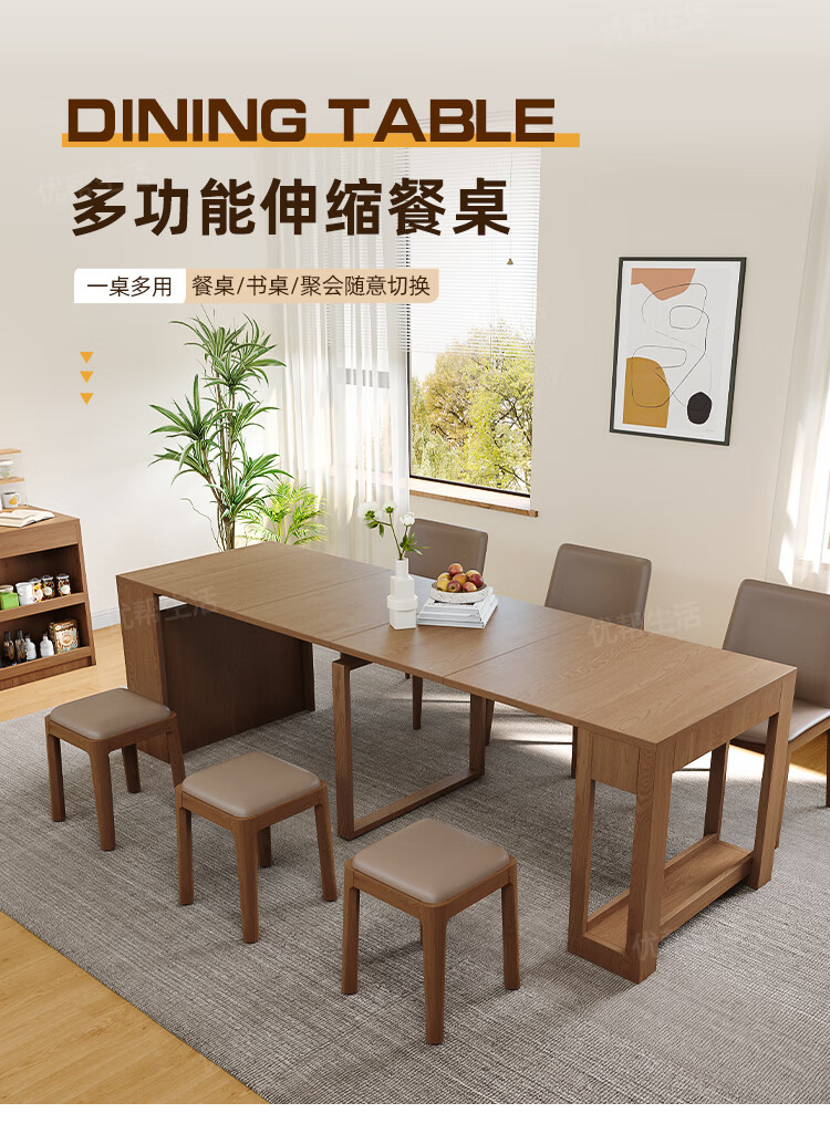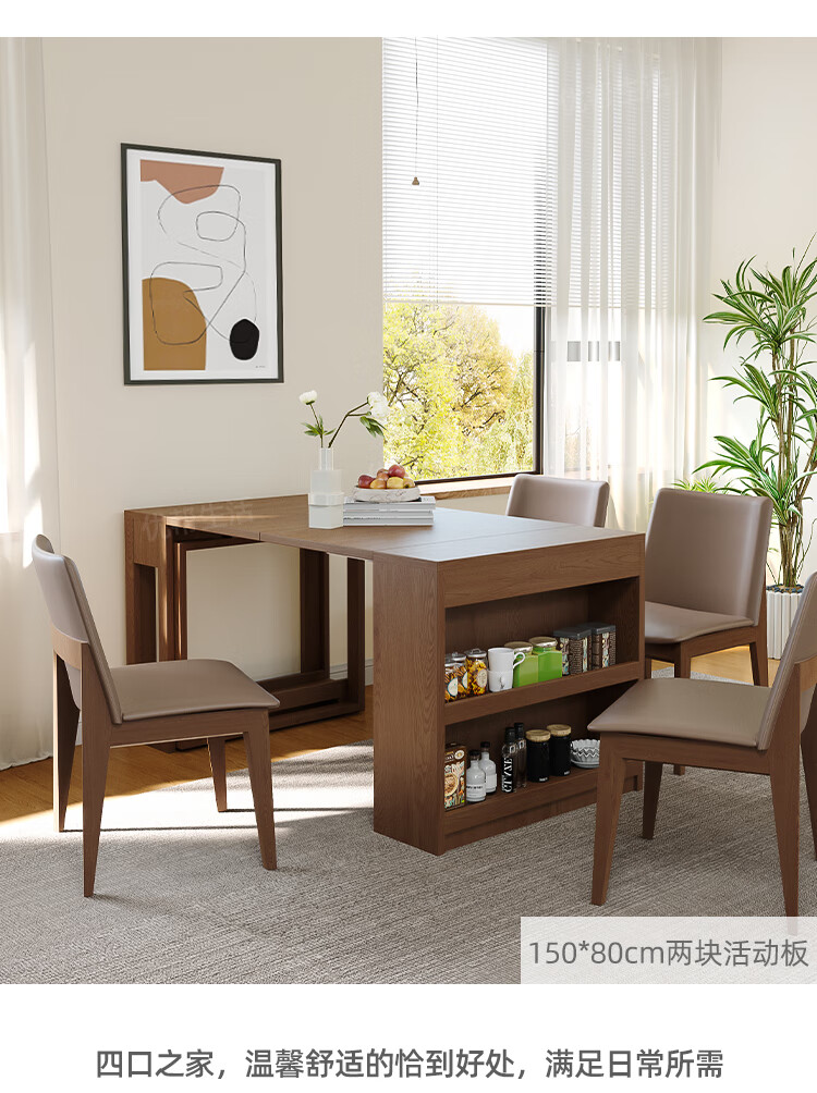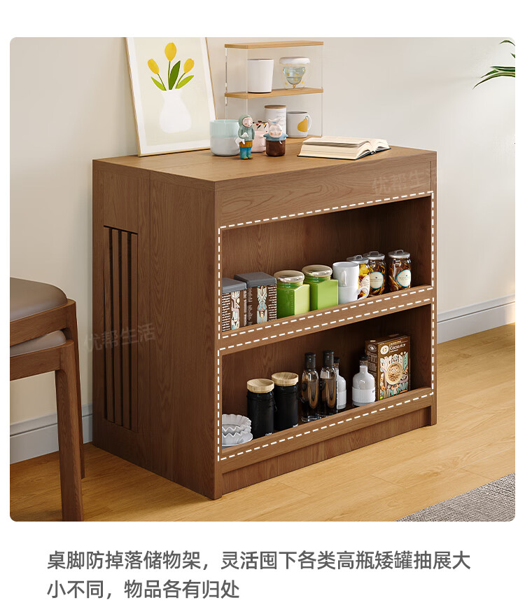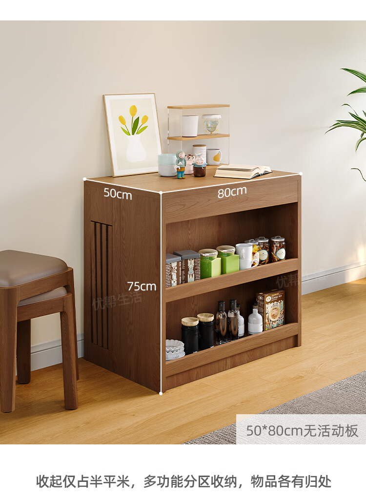 Wooden retractable dining table foldable invisible dining table and sideboard integrated Nordic small apartment storage dining table combination retractable dining table all solid wood