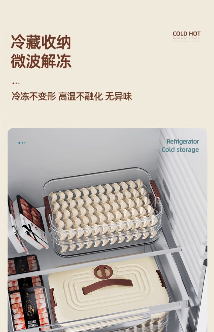 Grain dumpling storage box for refrigerator, special frozen box for food, dumpling tray, multi-layer quick-frozen wonton crisper, can hold 70 dumplings, portable, 1 layer, default, default