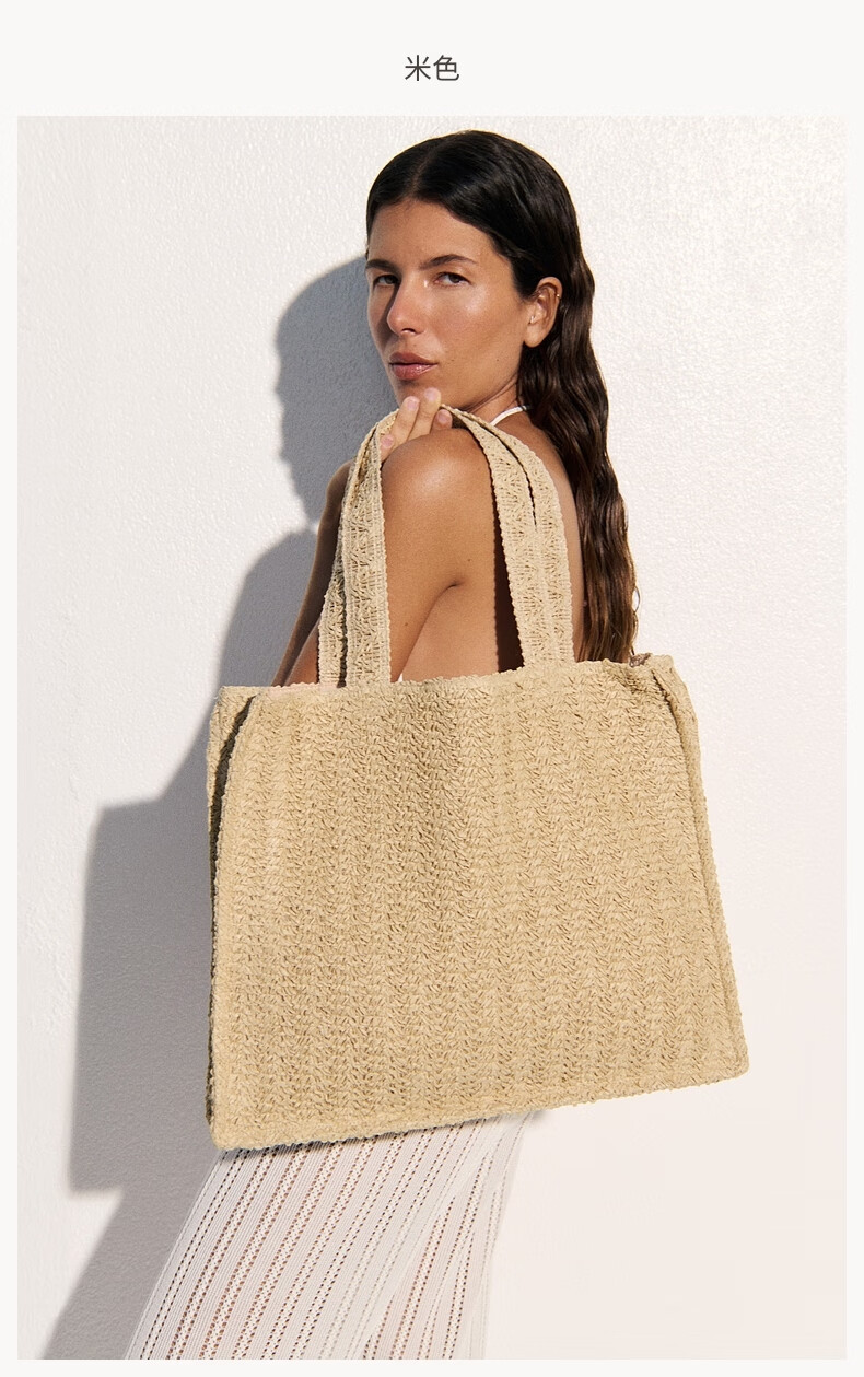 H&M 2025 Autumn New Straw Shopping Bag 1280811 Beige