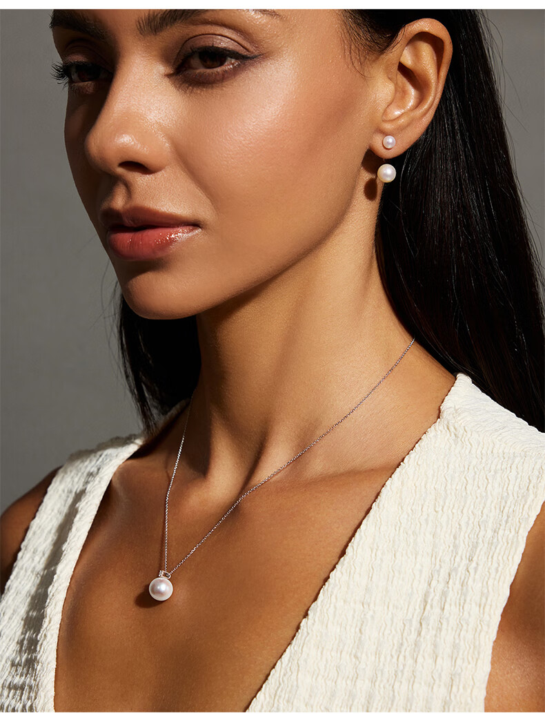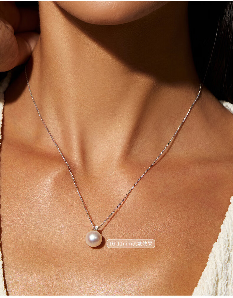 Goselon Freshwater Pearl Pendant 18K Gold 5 Points Diamond No Car Flower Princess Classic Necklace for Girlfriend 10-11mm