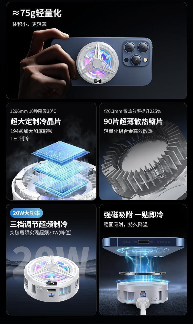 Mobile phone cooling artifact God's radiator semiconductor refrigeration Chen Karen push magnetic back clip Apple e-sports special black real ice overclocking dual-core refrigeration magnetic suction