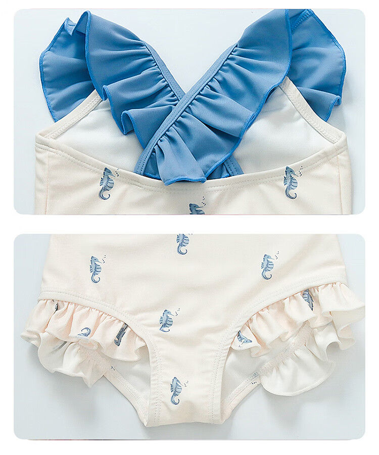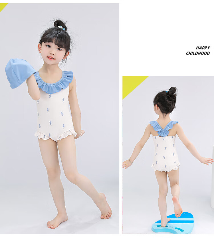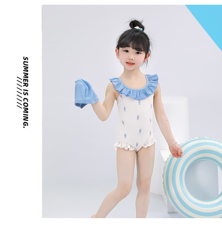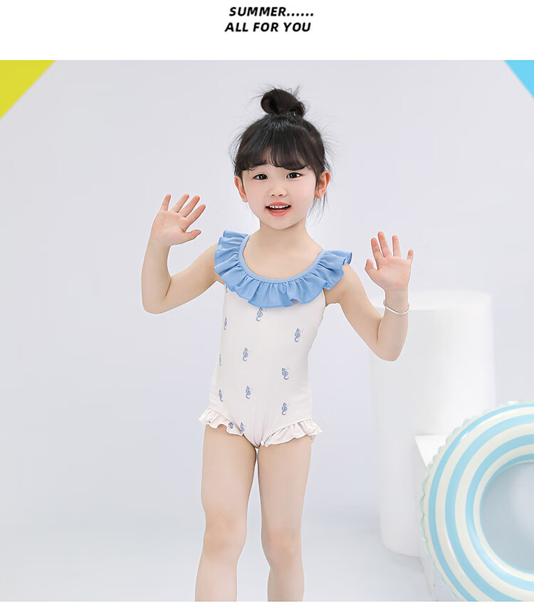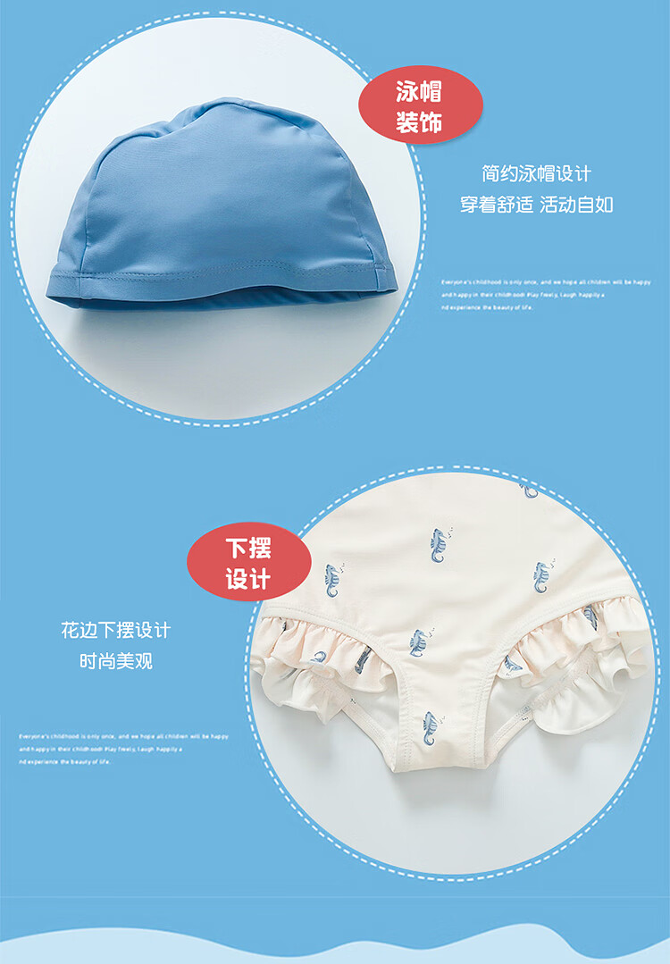 Disney children's swimsuit girls training one-piece swimsuit 25 new baby long-sleeved sun protection hot spring swimsuit off-white 100 cm