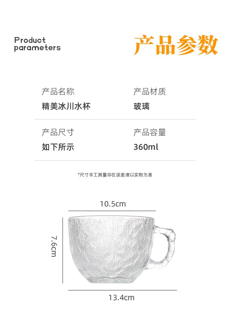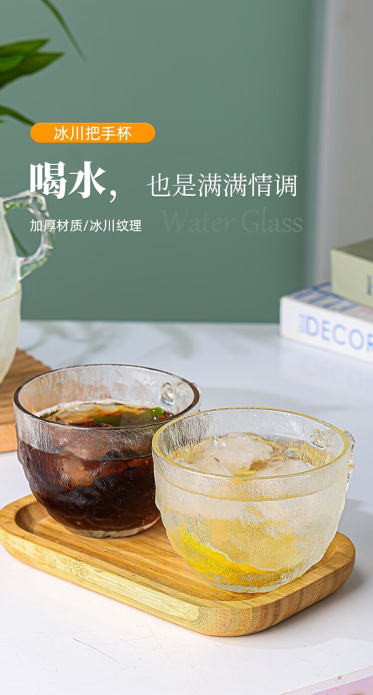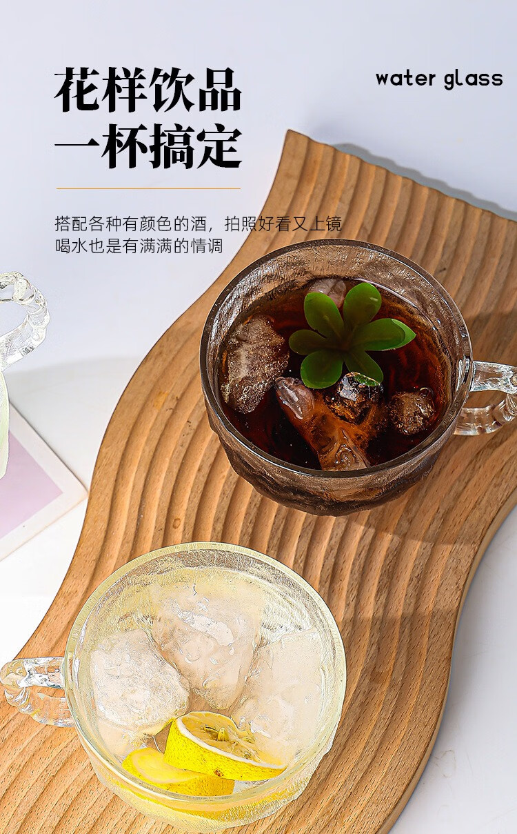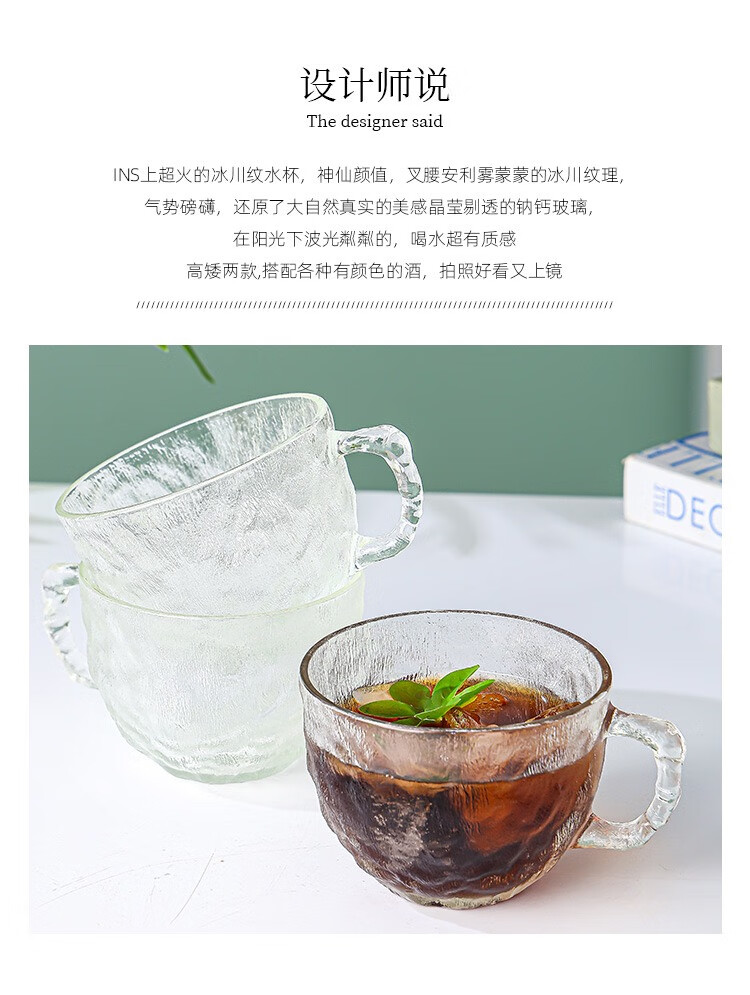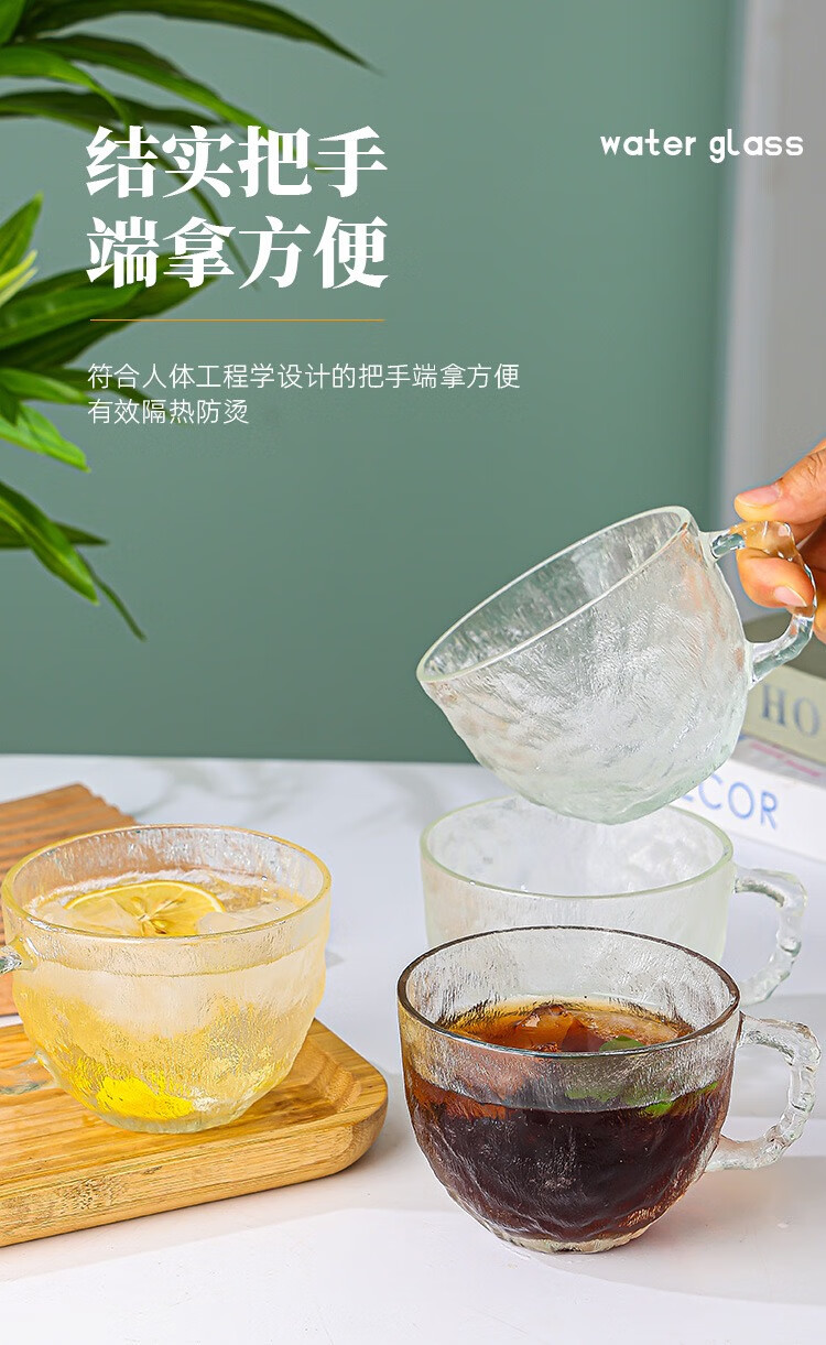 Glacier handle cup breakfast cup juice cup milk cup ins style Japanese coffee cup glacier handle cup 1 piece 360ml