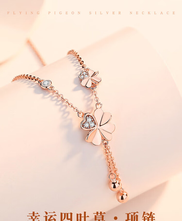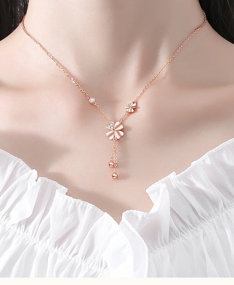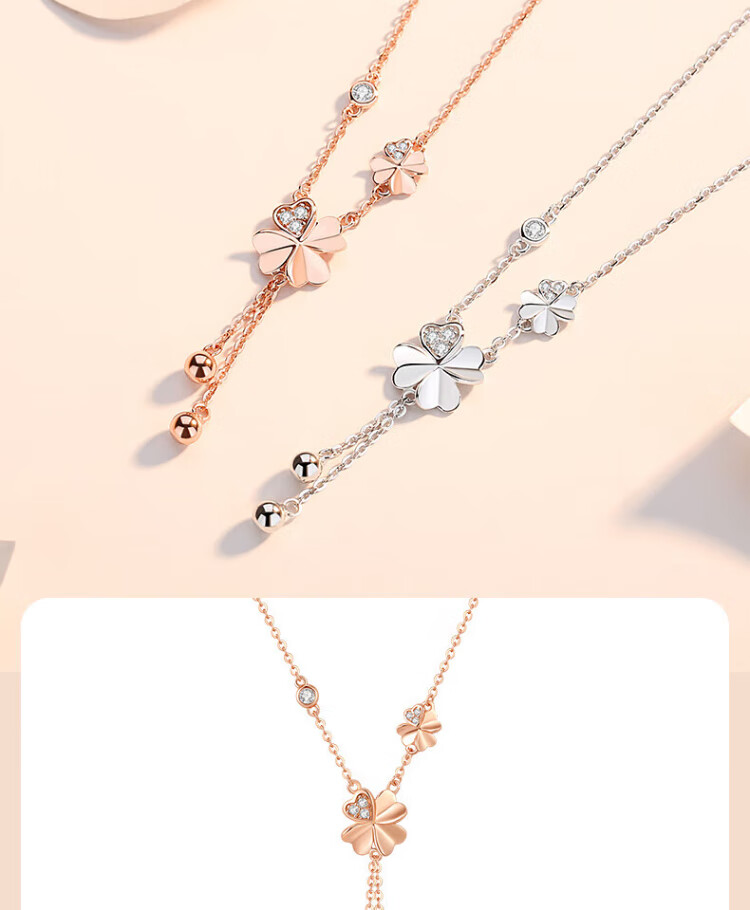 Shiloni light luxury four-leaf clover necklace women's bracelet jewelry heartfelt high-end Chinese Valentine's Day birthday gift for girlfriend Necklace + bracelet Default white, optional color
