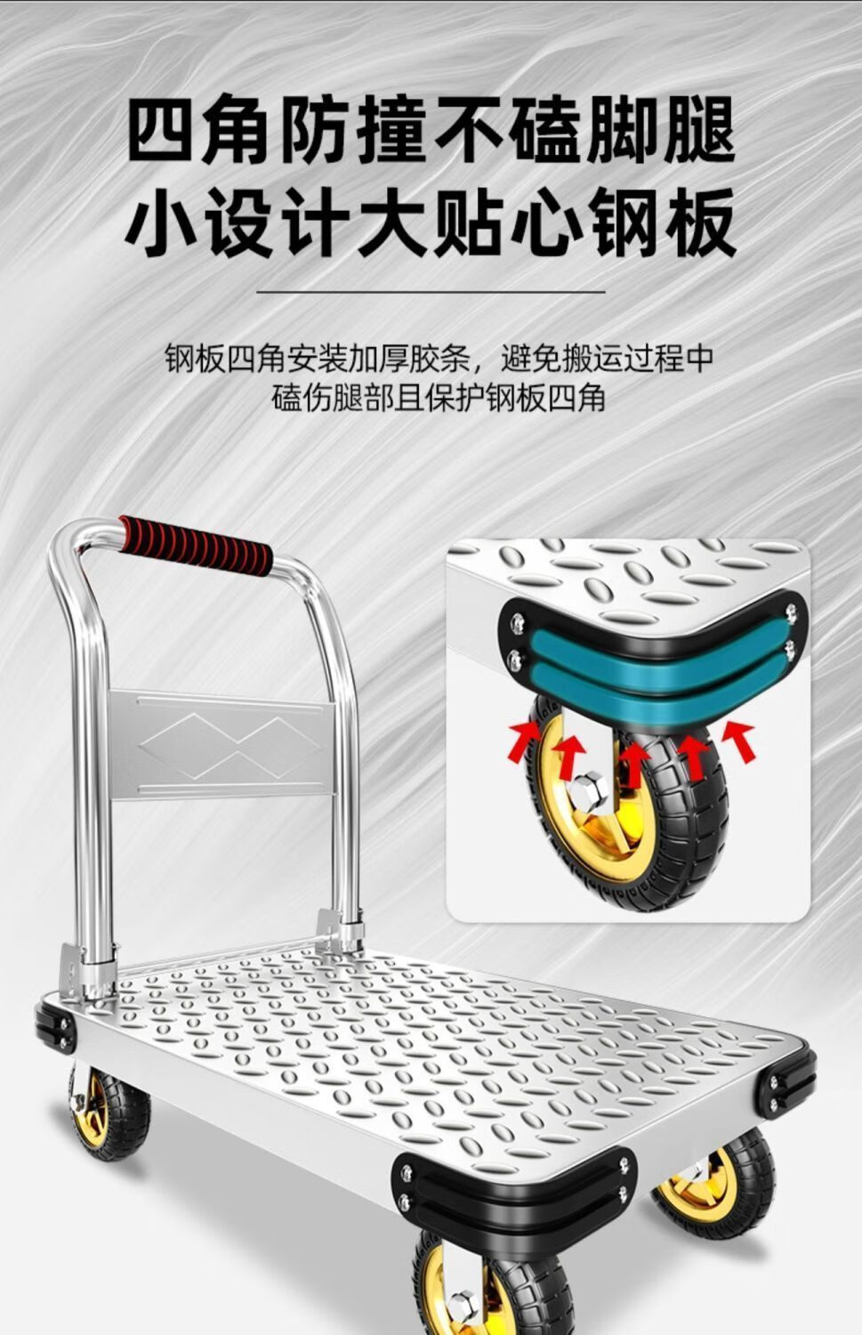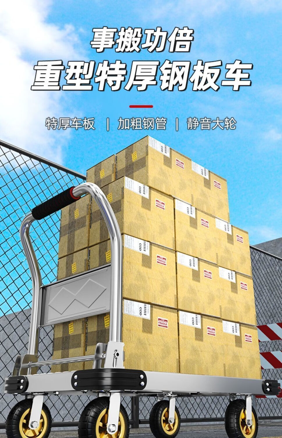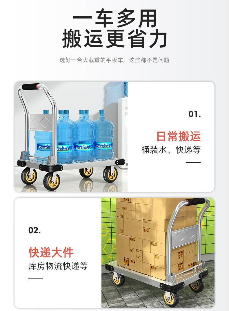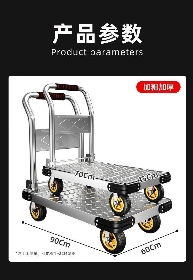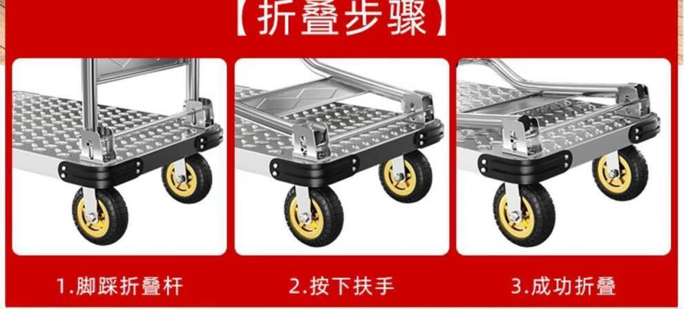 GREENER steel plate trolley, cargo trolley, flatbed truck, household trolley, portable foldable foldable trailer, steel plate 73X48/5 inch silent wheel 1550Jin Jin equals 0.5kg