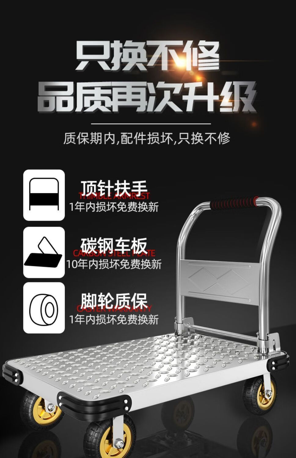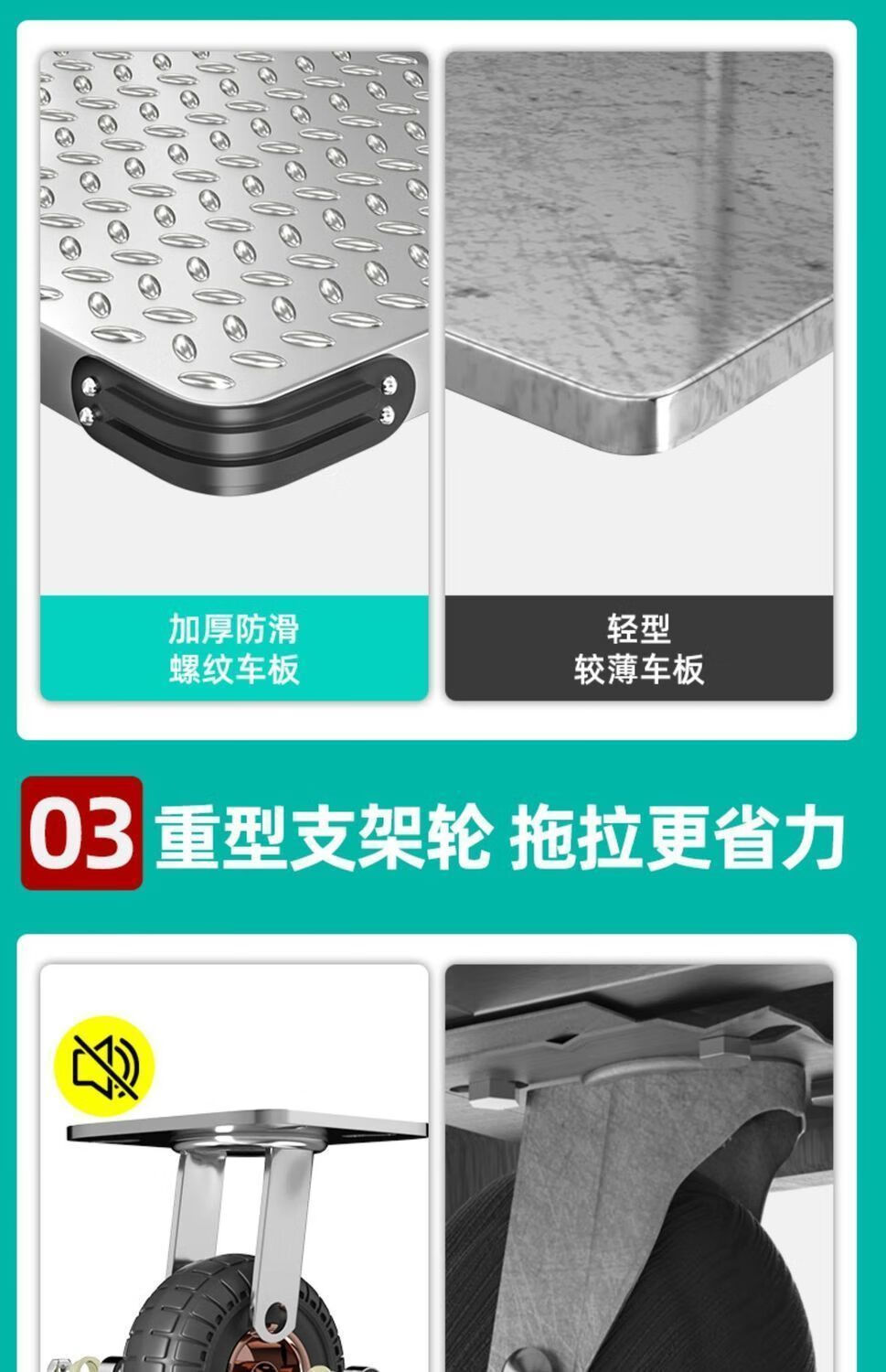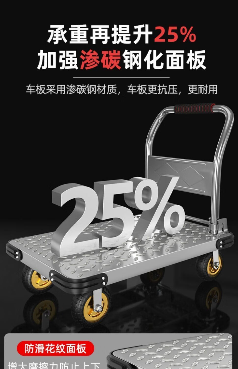 GREENER steel plate trolley, cargo trolley, flatbed truck, household trolley, portable foldable foldable trailer, steel plate 73X48/5 inch silent wheel 1550Jin Jin equals 0.5kg
