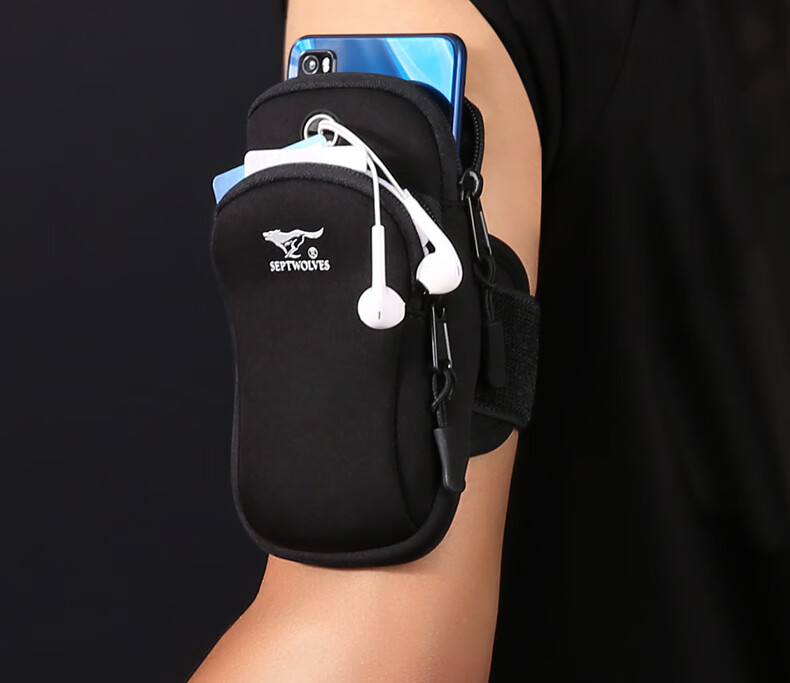 Septwolves mobile phone arm bag men's running sports arm bag women's waterproof wrist bag for mobile phone arm bag light and thin season sports black (new product for summer)