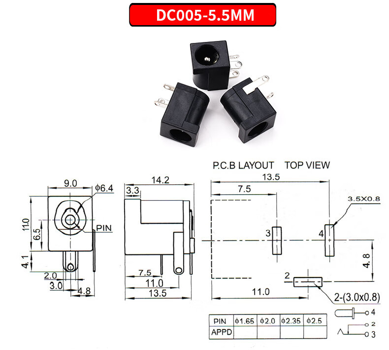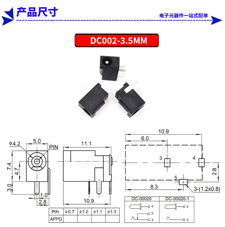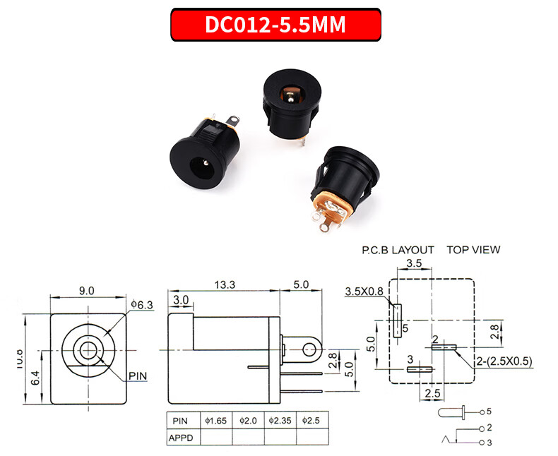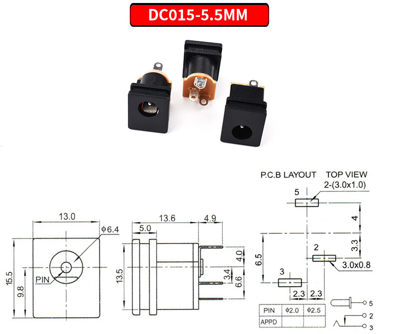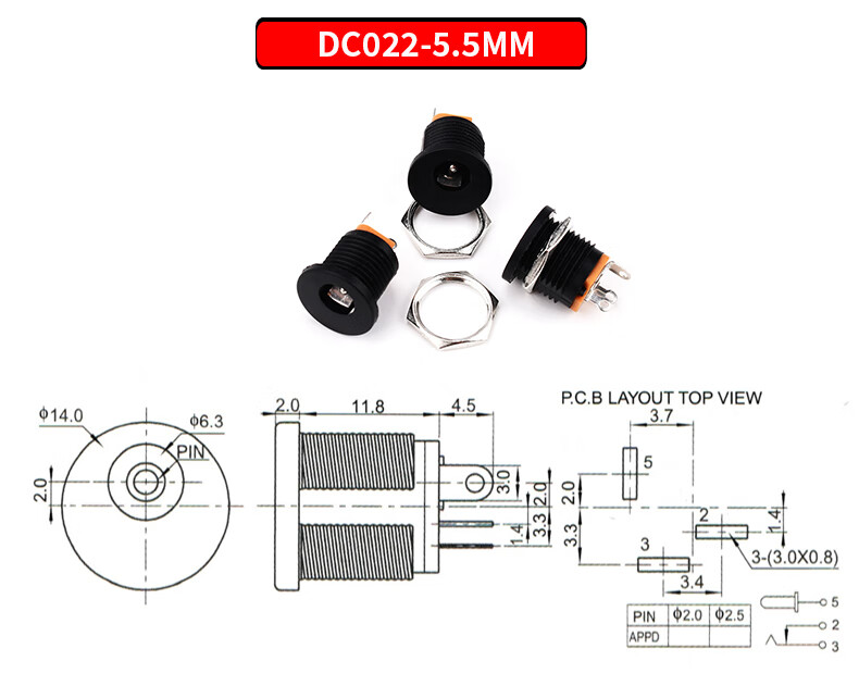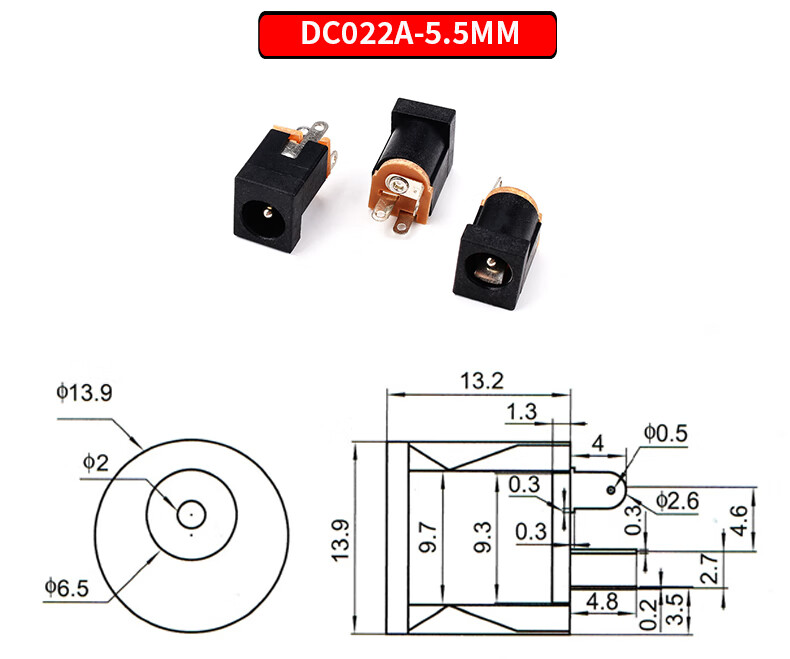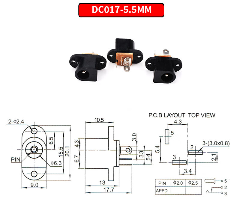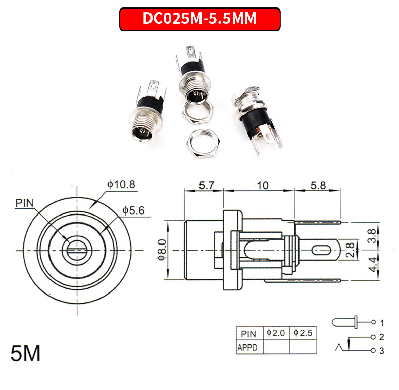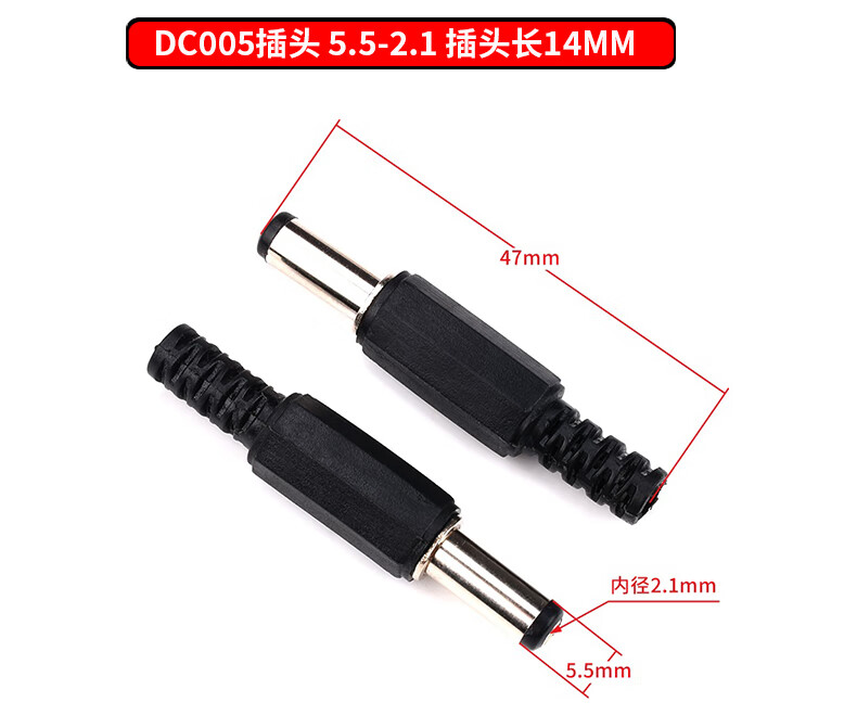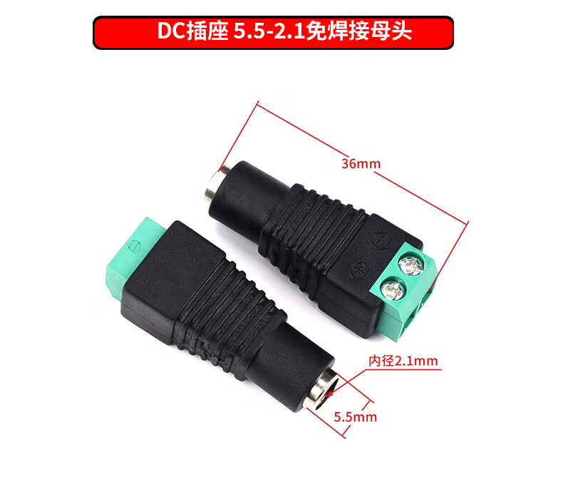 Zejie DC power plug and socket male and female connector adapter conversion female socket male 5.5-2.1/2.5MM3.5 DC-044A 5.5-2.1 copper (5 pieces)