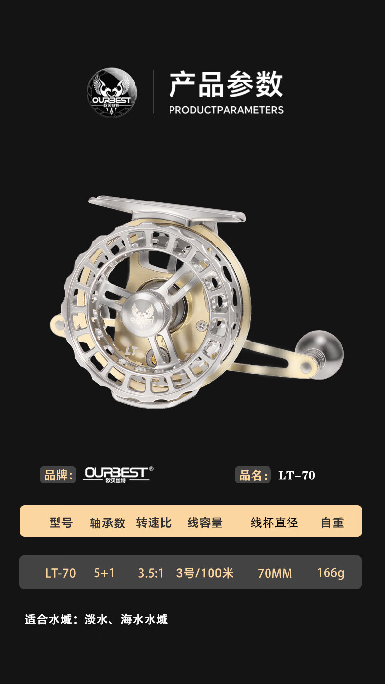 Obest LT70 all-metal raft fishing reel, high speed ratio, lightweight fishing reel, micro-lead belt leakage raft fishing reel, fishing reel, right hand