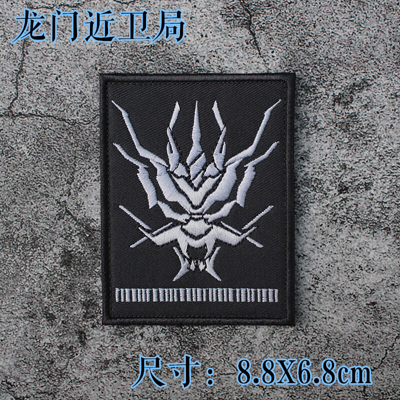 He Jiagong Arknights Rhode Island Rheinland Black Steel Embroidered Velcro Badge Armband Morale Badge Backpack Black Steel 5X8cm
