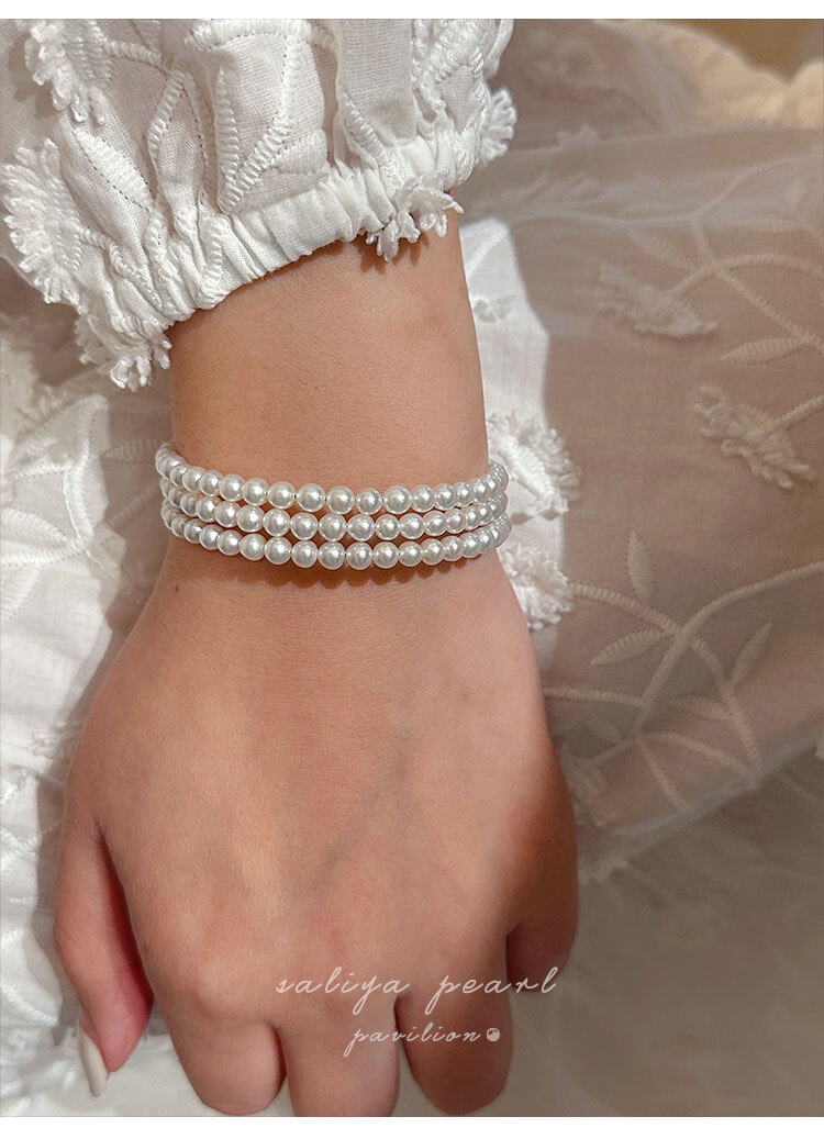 Youshu Aurora Freshwater Multi-layered Retro Japanese Imported Memory Elastic Circle Bracelet Natural Aurora Freshwater Pearl Bracelet 4-5mm