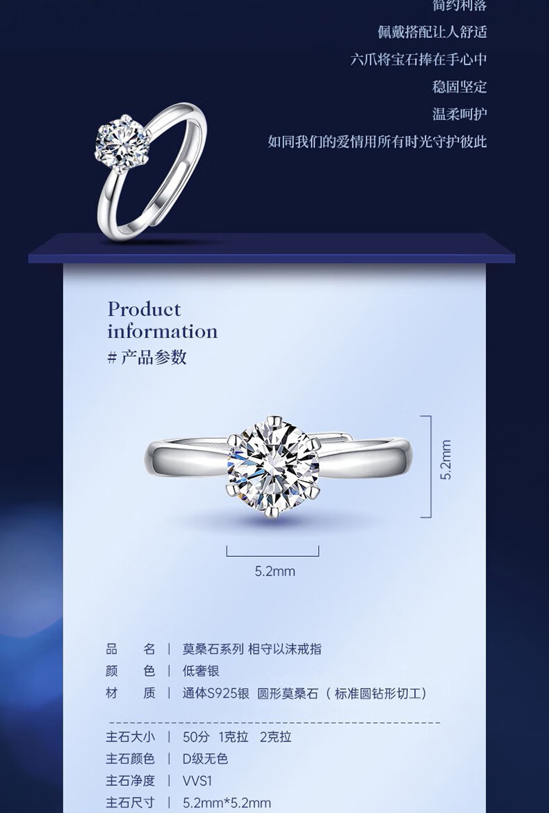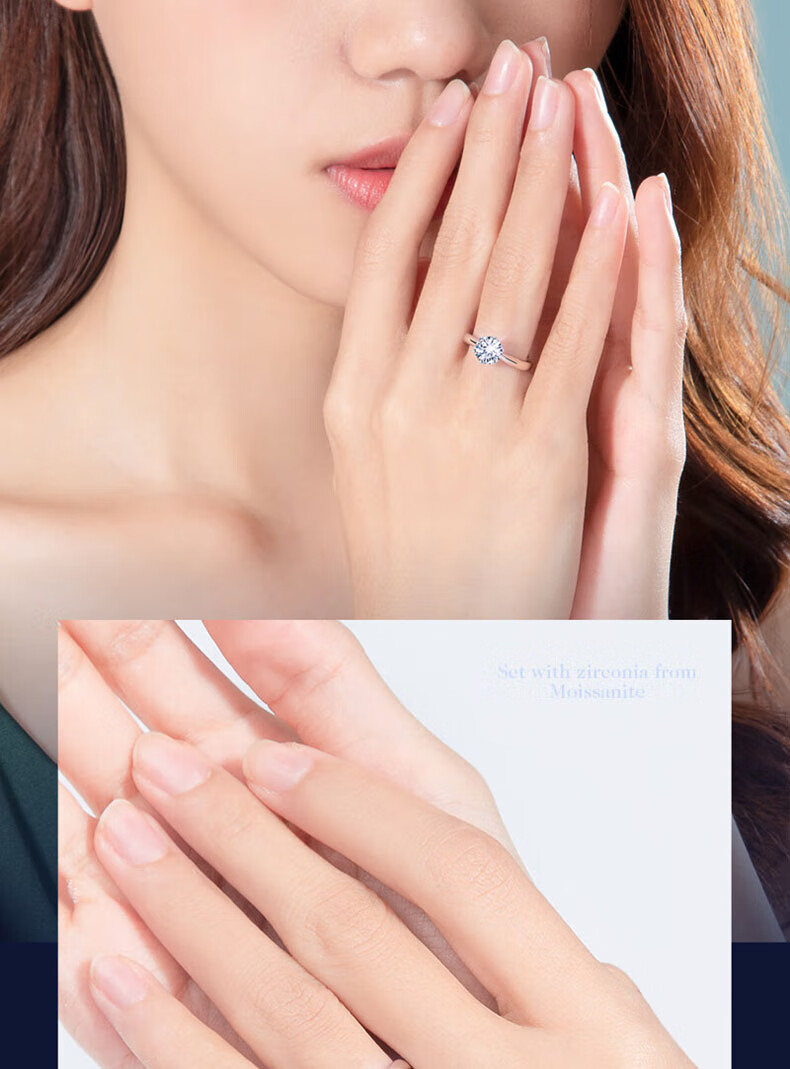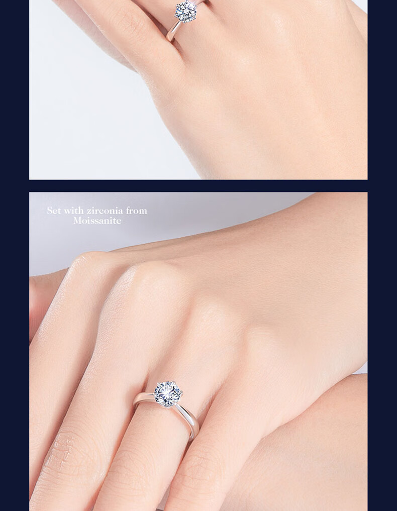 BOEAY Diamond Ring One Carat Proposal Ring Moissanite Diamond Ring Couple Ring Couple Style Sterling Silver Ring Female Wedding Diamond Ring Gift Box Female Model/Free Engraving