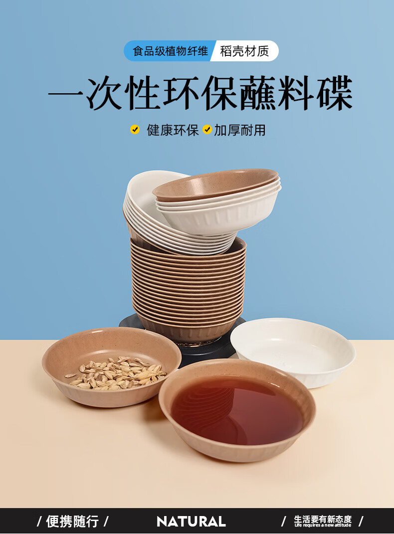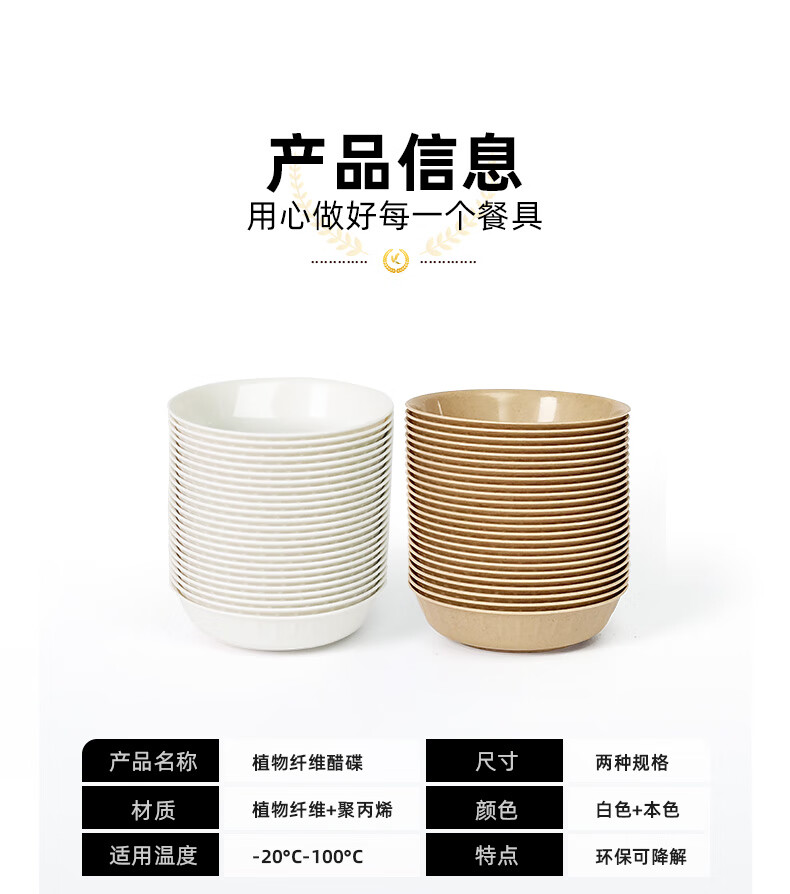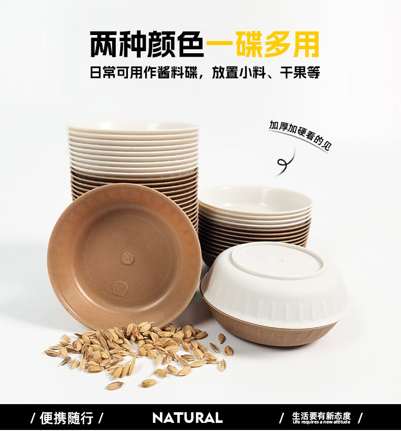 Lushang disposable rice husk dipping saucer, round flavor saucer, thickened saucer, vinegar saucer, soy sauce vinegar sauce saucer, 9cm white, two packs of 100 pieces