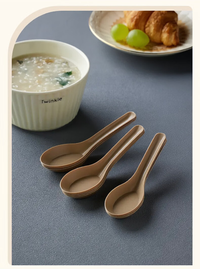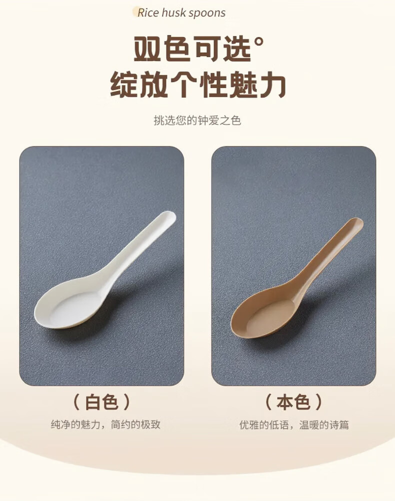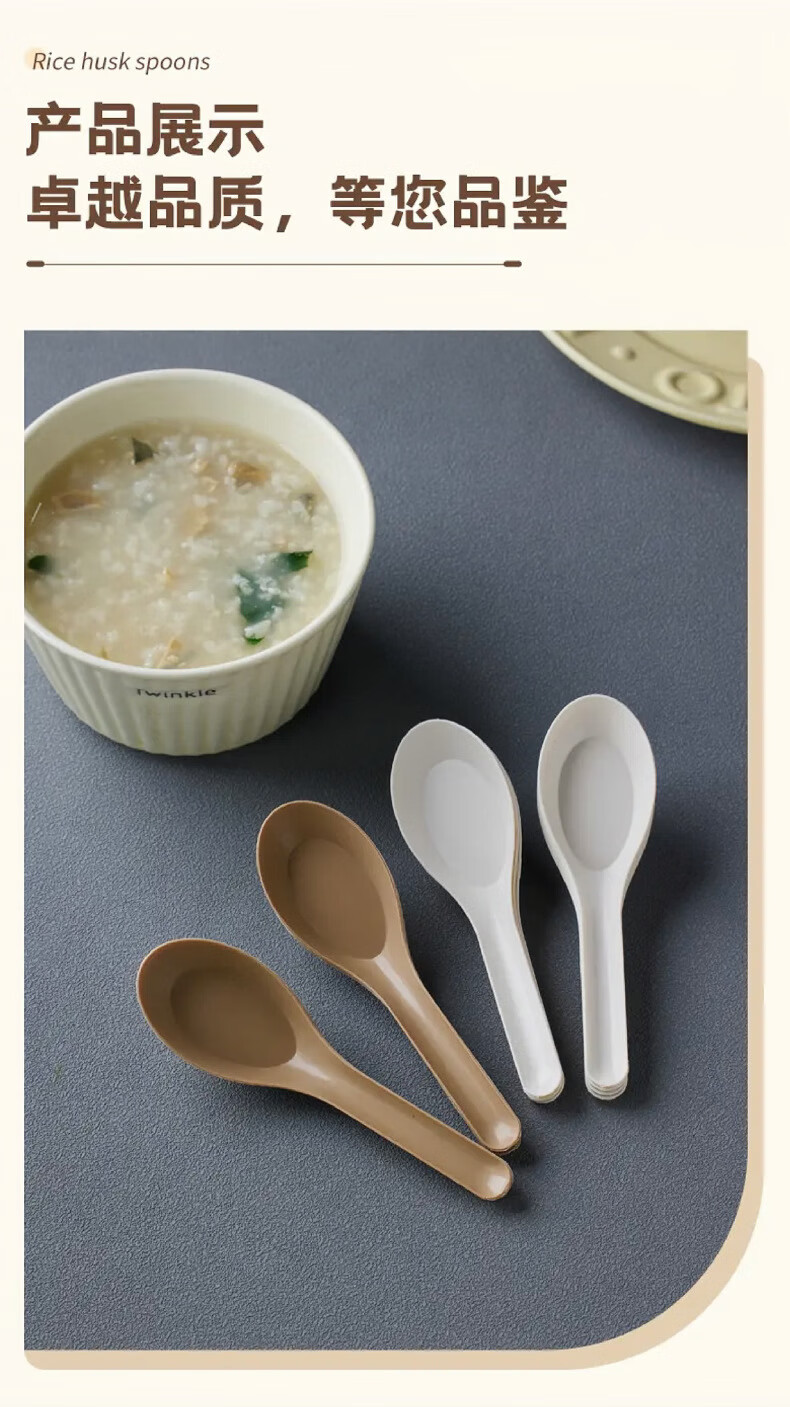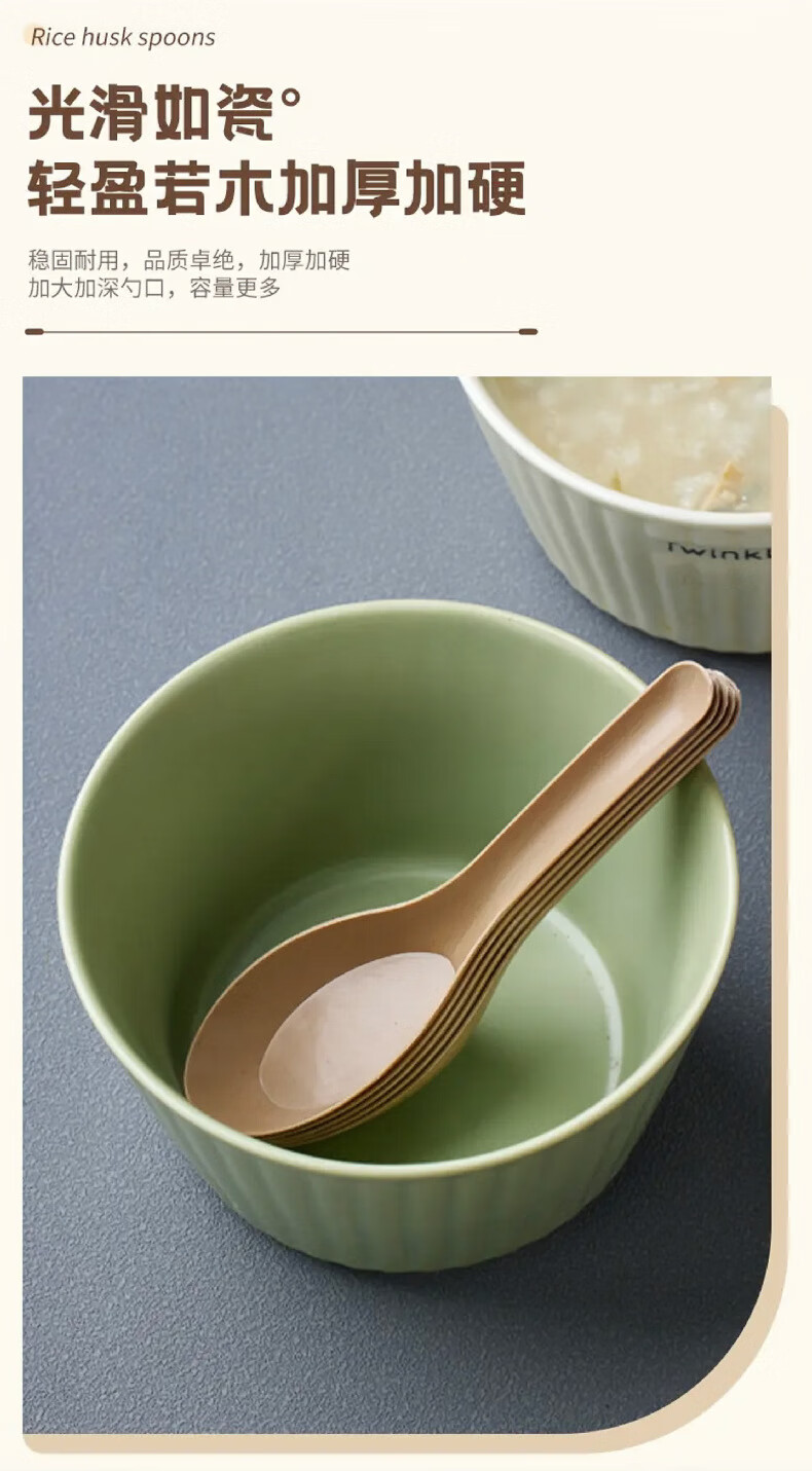 Lushang Rice Husk Disposable Spoon Thickened and Biodegradable Individually Packaged Takeaway Dessert Small Spoon with Round Head for Commercial Use Two Packs of 100