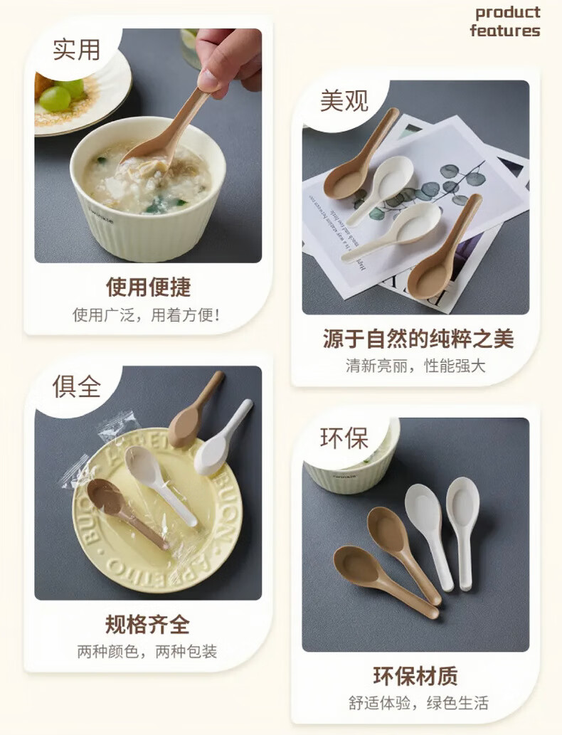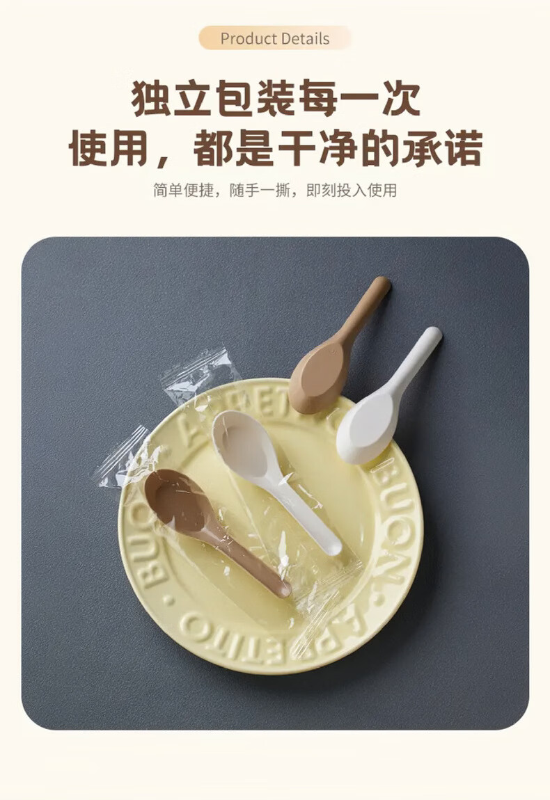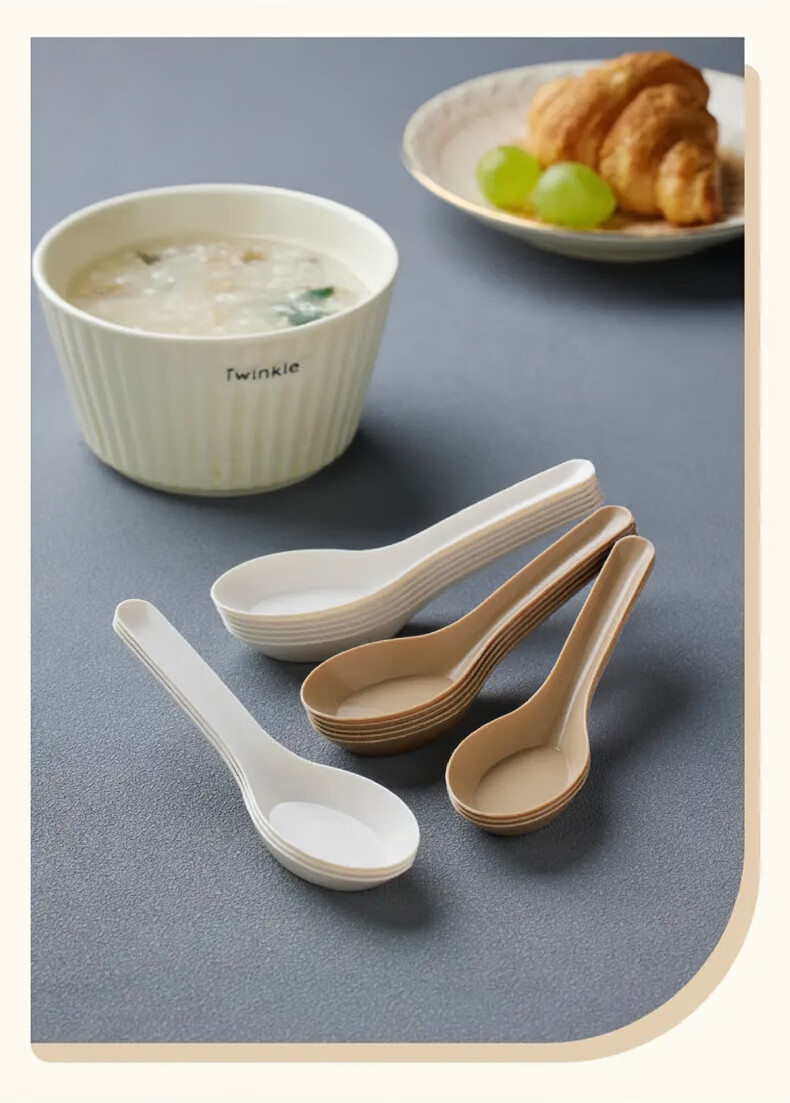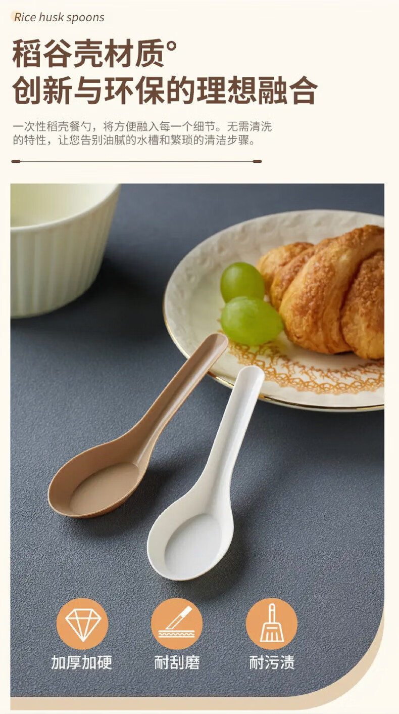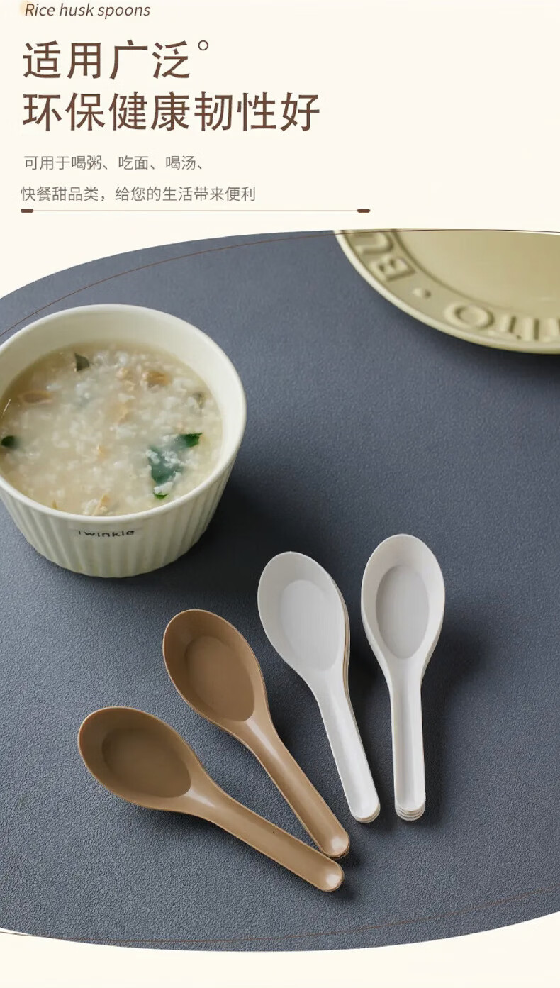 Lushang Rice Husk Disposable Spoon Thickened and Biodegradable Individually Packaged Takeaway Dessert Small Spoon with Round Head for Commercial Use Two Packs of 100