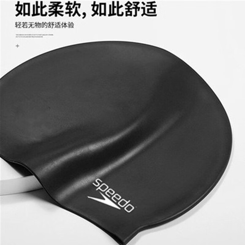 SpeedoSpeedo Swimming Cap Speedo Silicone Waterproof Plus Size Men's and Women's Long Hair Children's Training Competition Cap Black