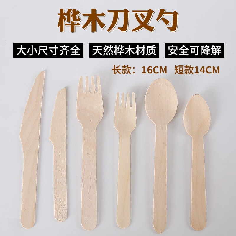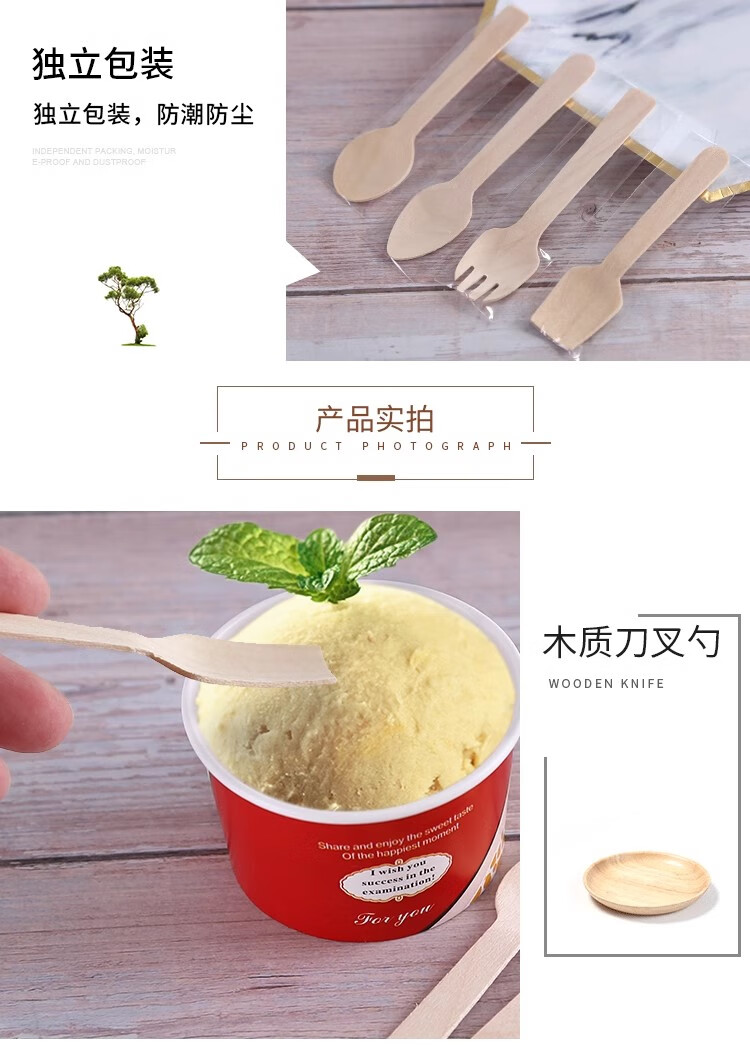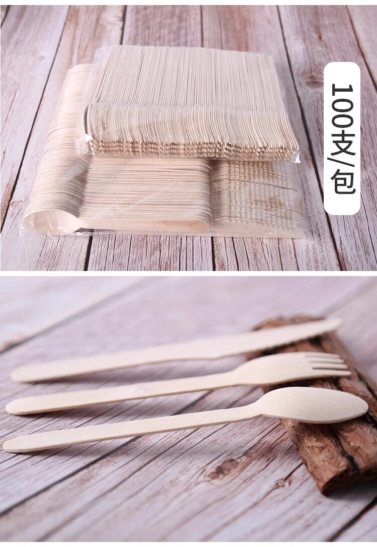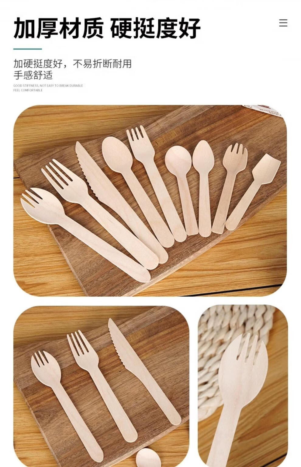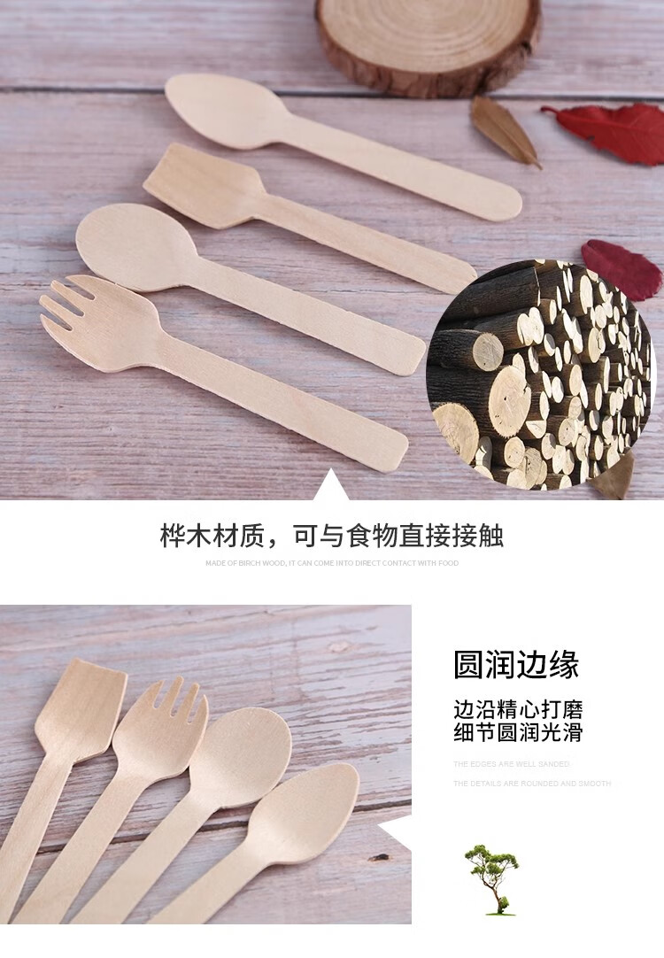 Weimiao Disposable Wooden Spoons and Forks Biodegradable Wooden Knives and Forks Tableware Salad Forks Ice Cream Dessert Trial Cake Spoons 100 14cm Wooden Spoons - Simple Pack