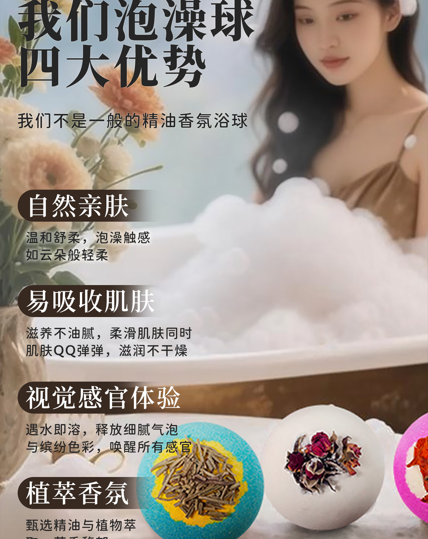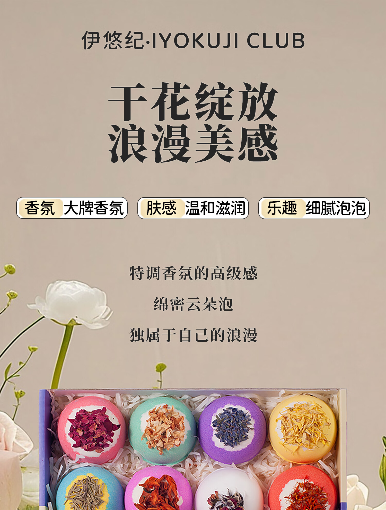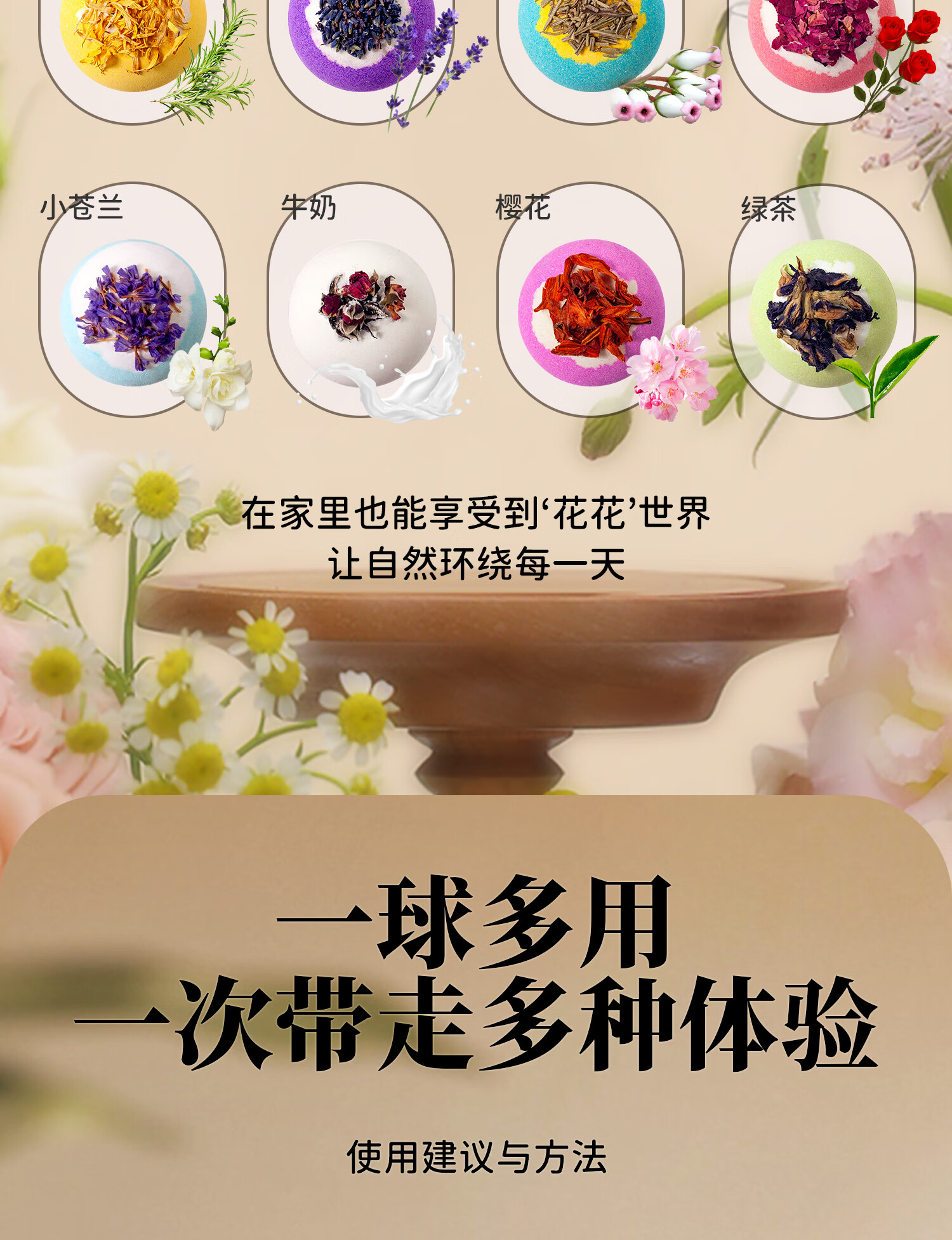 IYOKUJI CLUB Bath Ball Petals Milk Bath Bubble Bath Ball Women's Adult Special Bath Salt Ball Essential Oil Ball Bath Bath Ball Dried Flower Bath Ball 4 Pack - Random Four