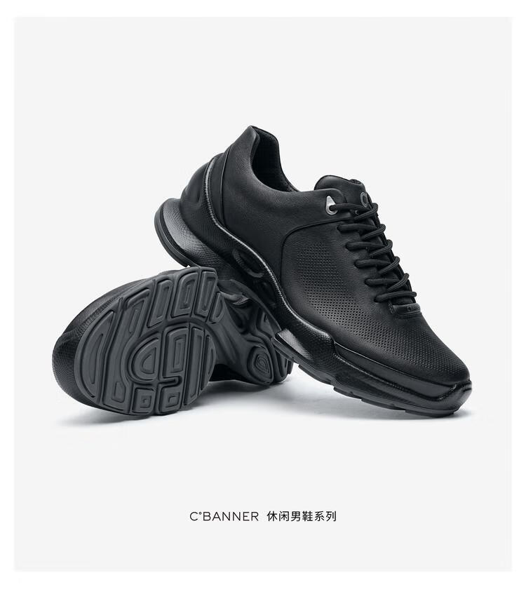 Qianbaidu first-layer cowhide new plain thick-soled men's shoes business casual shoes men's genuine leather outdoor versatile sports shoes black 38 (240mm)