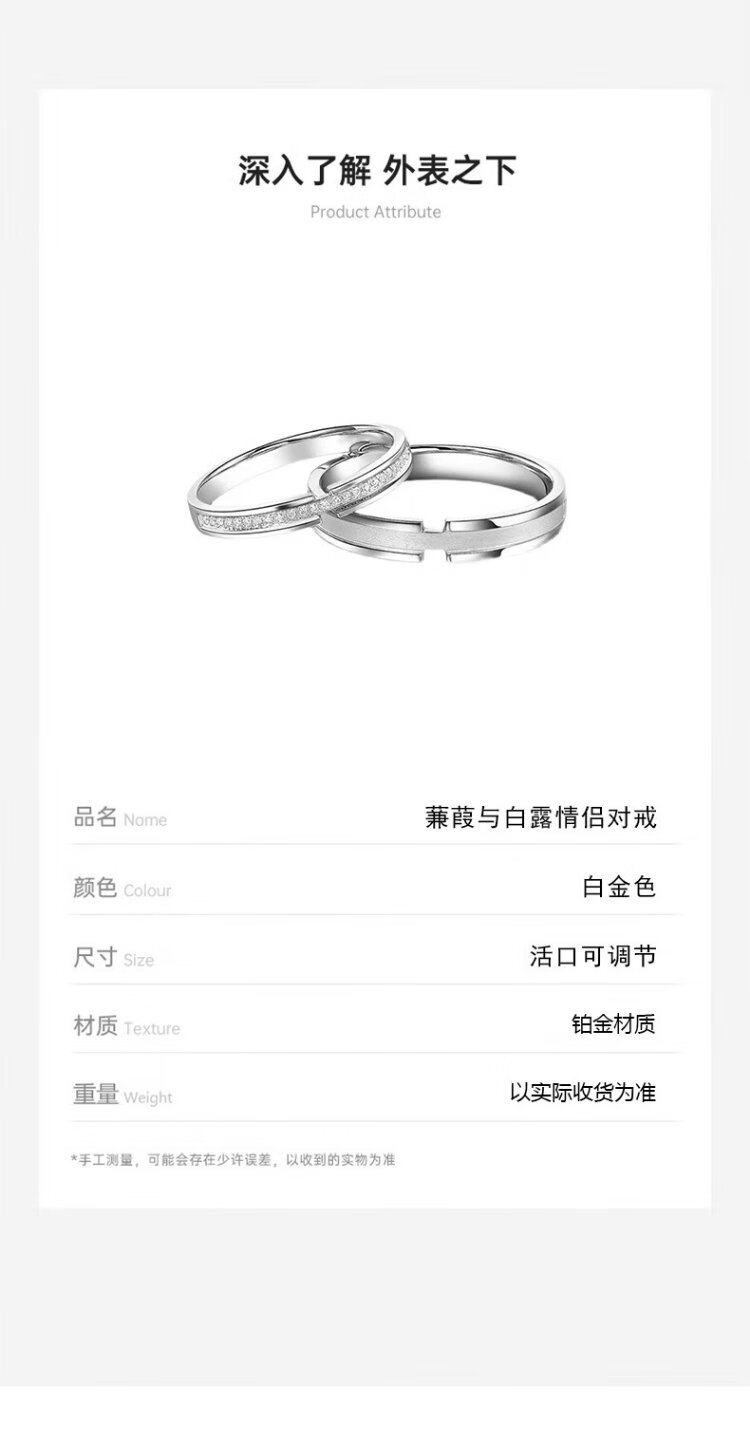 RHM Jianjia platinum couple ring PT950 platinum high-end engagement ring birthday and Valentine's Day gift for girlfriend Platinum Jianjia couple ring pair + certificate + gift box