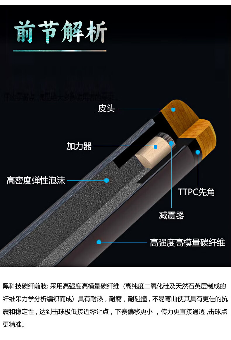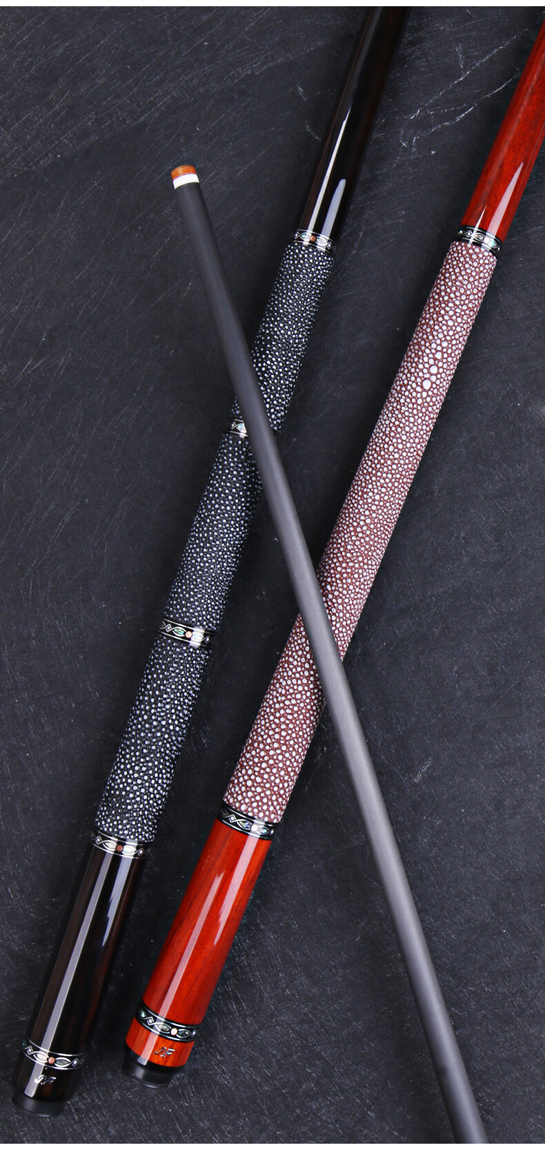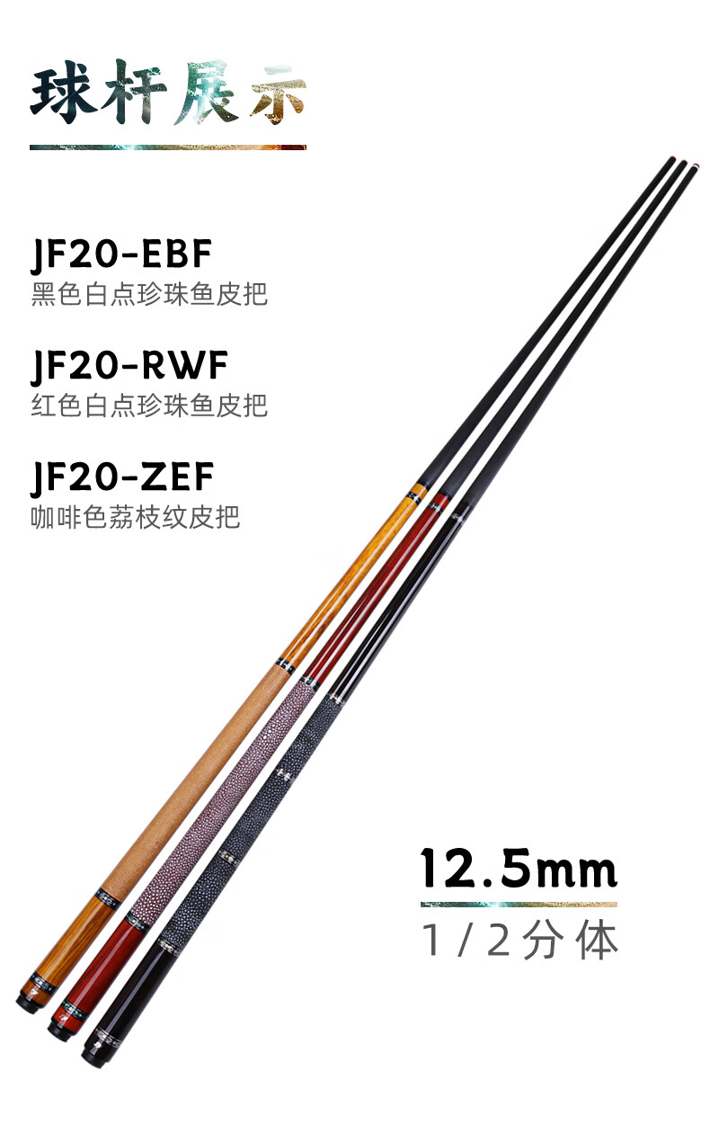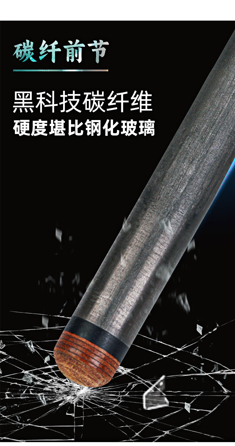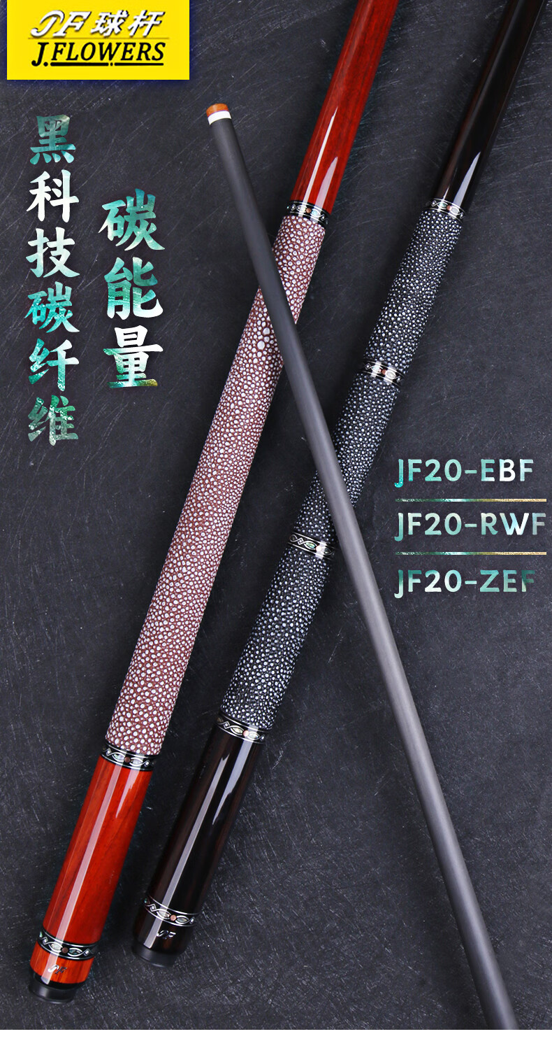 J.flowers billiard cue big head JF plain ebony black technology carbon fiber black eight American nine-ball pool cue stinger 11.8 JF20-EBF ebony 11.8mm black technology front section