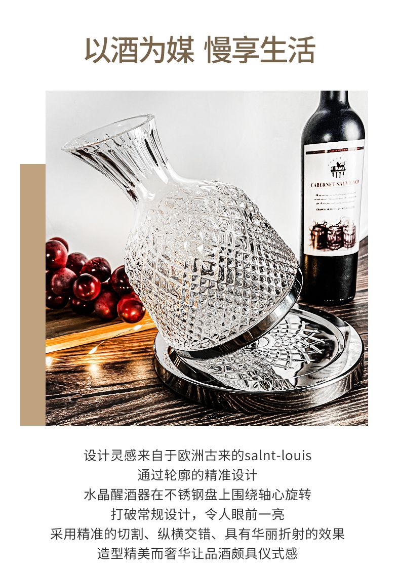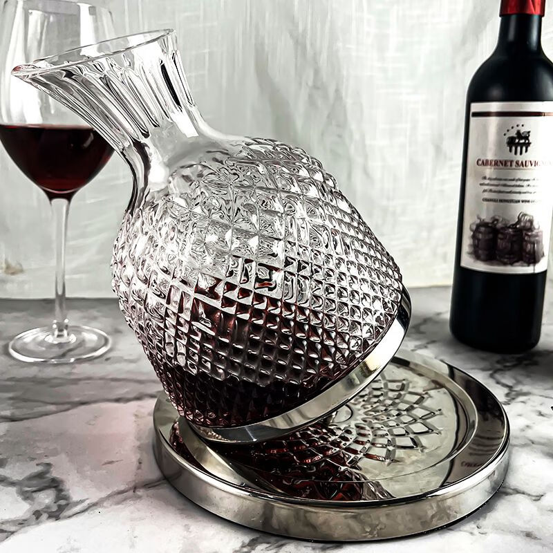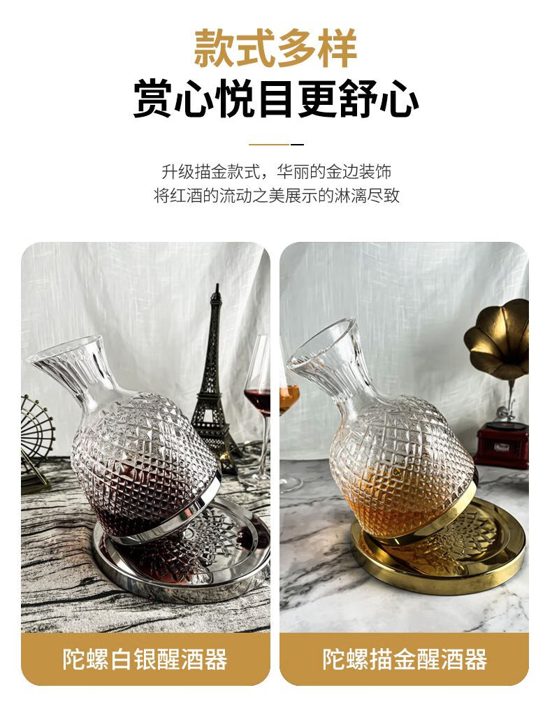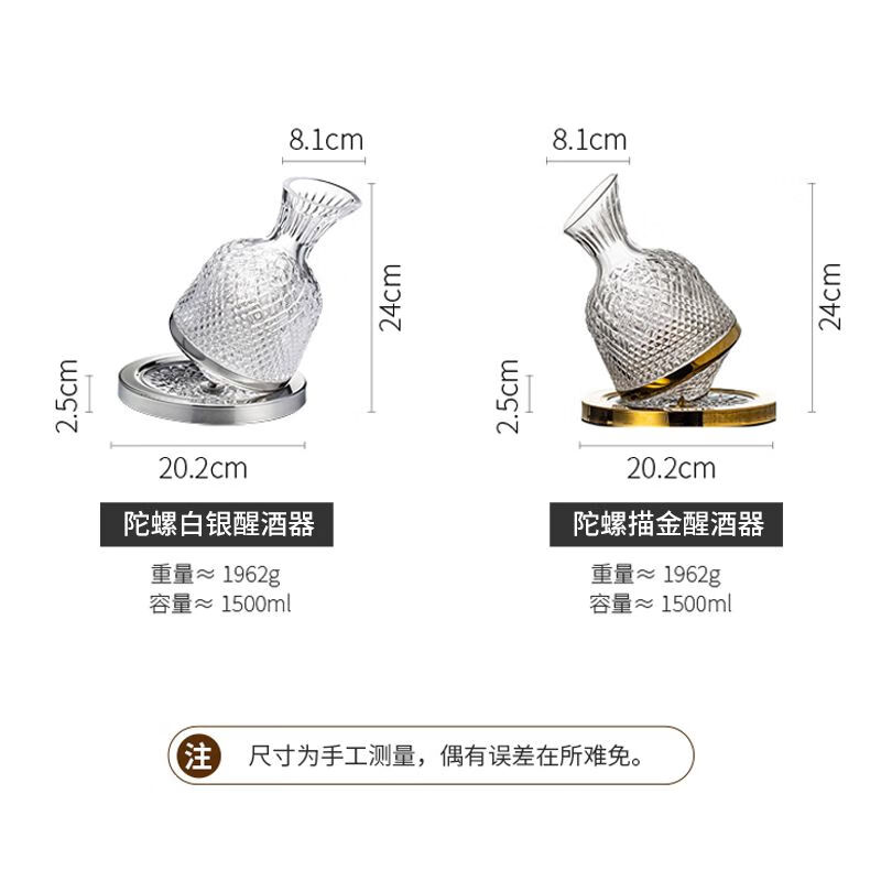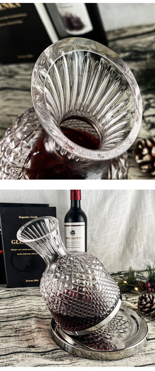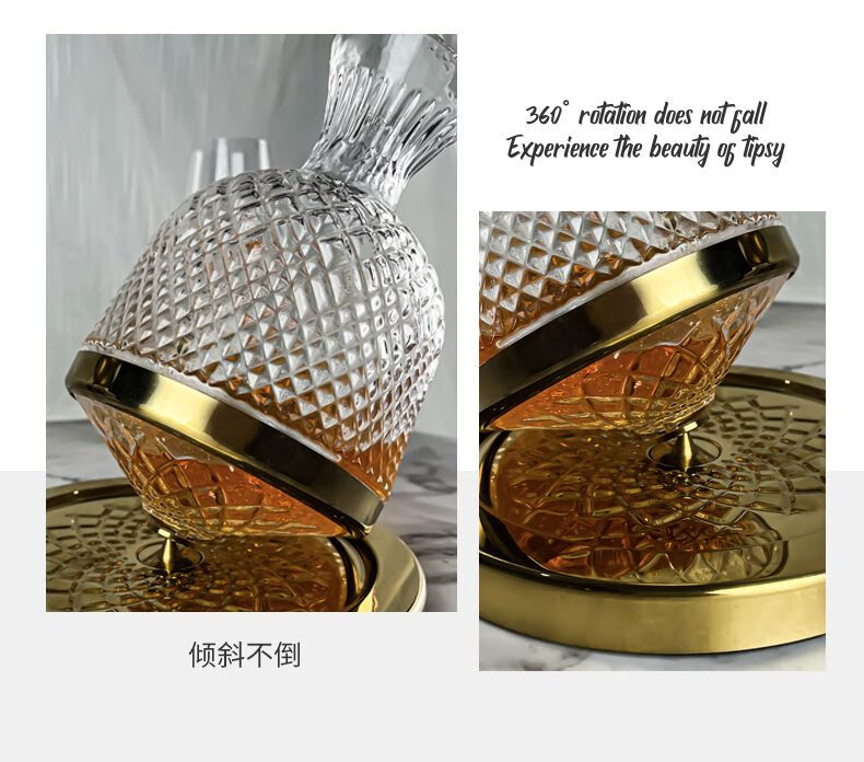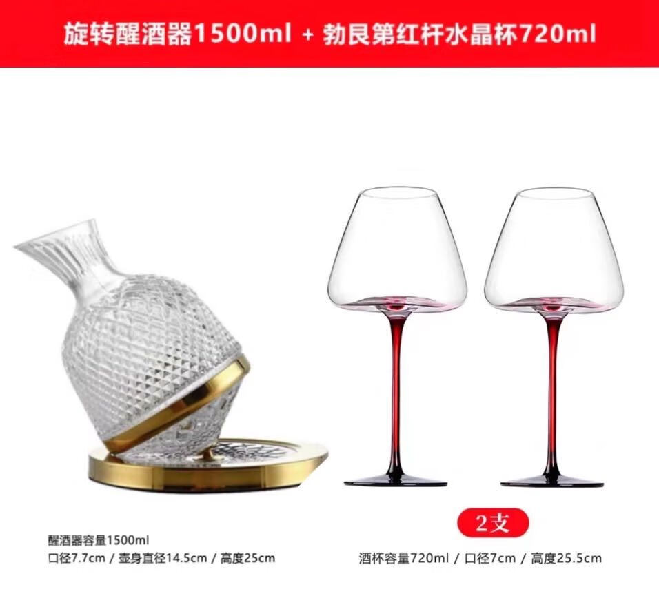 Sophora frost crystal glass decanter, fast spinning top, tumbler, high-end set, New Year's gift box, gold 1.5L + 2 red and black bow ties 720ml