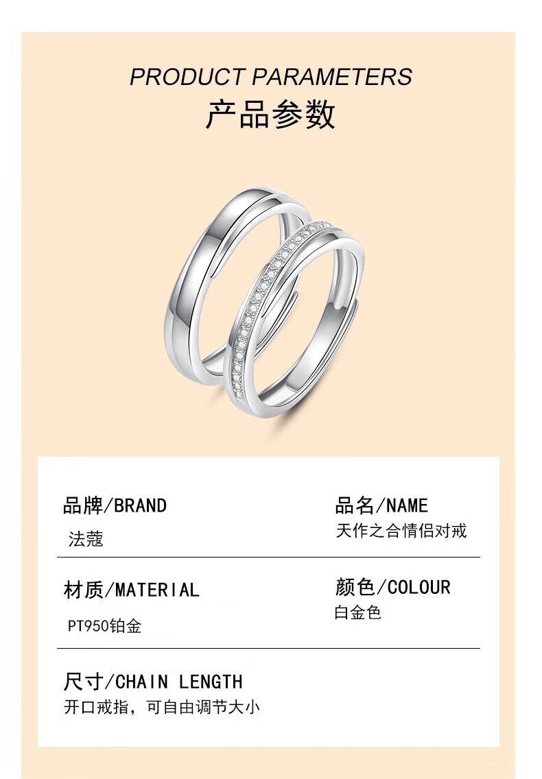 Facôme platinum ring, a perfect match pt950 platinum pairing ring, men's and women's ring, engagement, birthday, Valentine's Day gift, light luxury - couple ring
