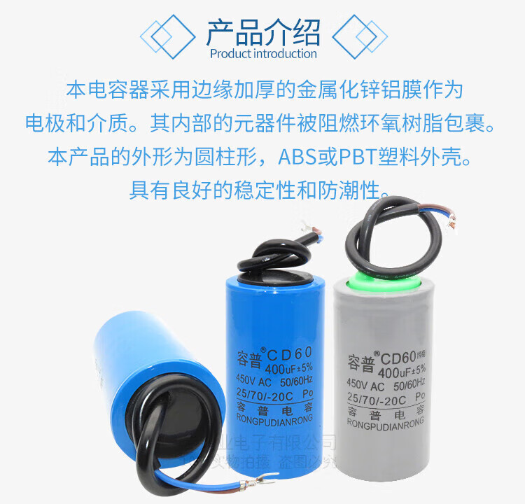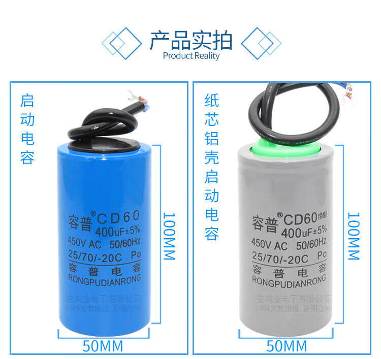 4kW single-phase motor supporting starting and running capacitor 450v400uf motor starting capacitor 400UF 450V paper core aluminum shell 400UF starting