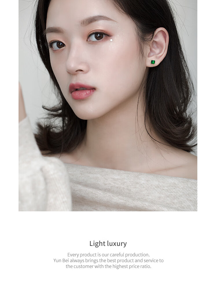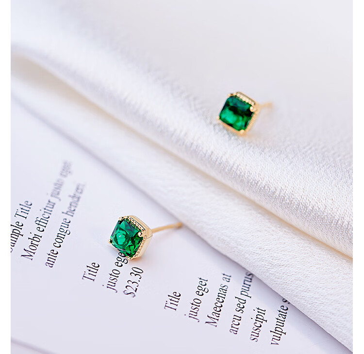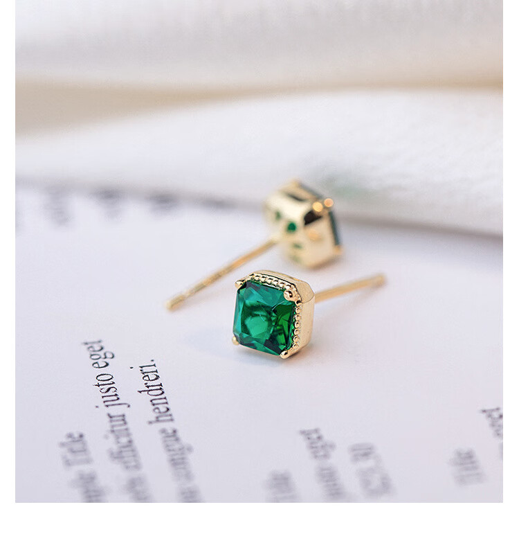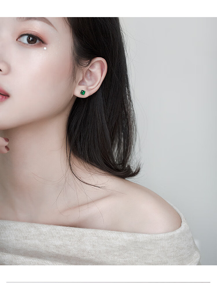 Fat Donglai quality emerald earrings emerald s925 silver women's French style retro temperament internet celebrity simple earrings