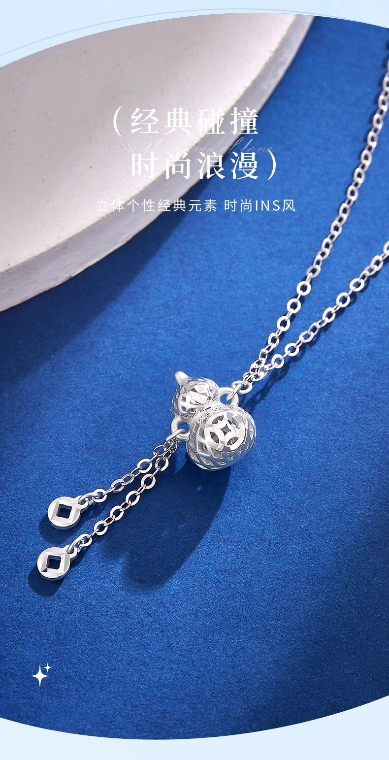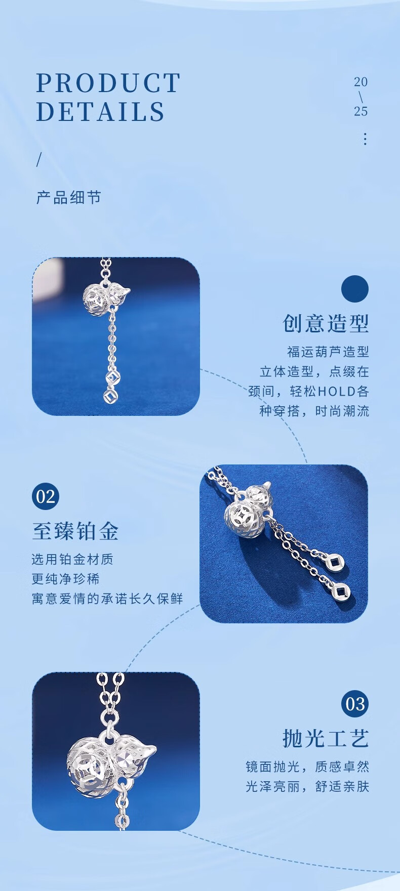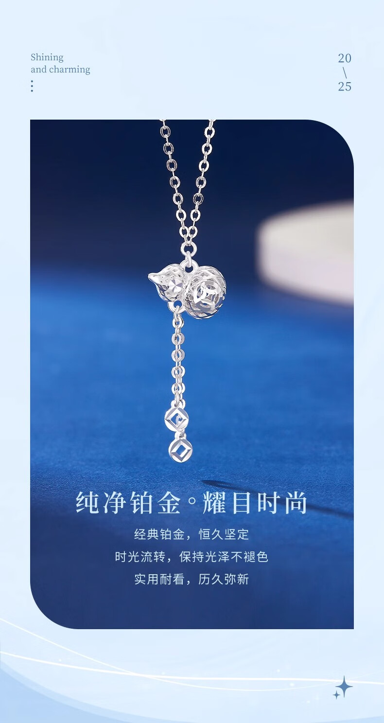 CHINA GOLD PT950 Platinum Gourd Tassel Pendant Women's Pure Platinum Valentine's Day Birthday Gift Year of the Horse Animal Year Gift PT950 Platinum Gourd Tassel Necklace About 5.4g