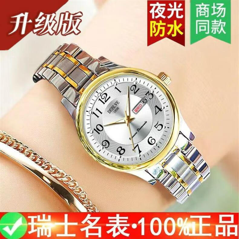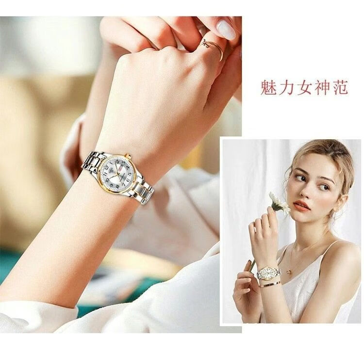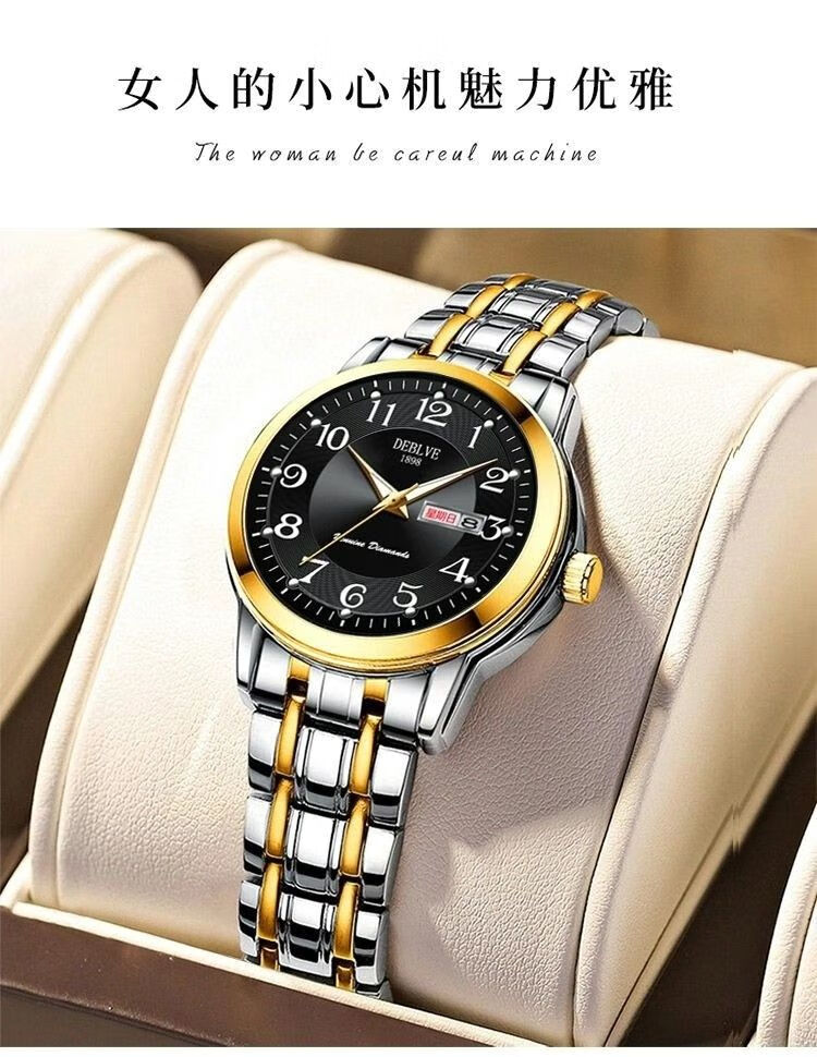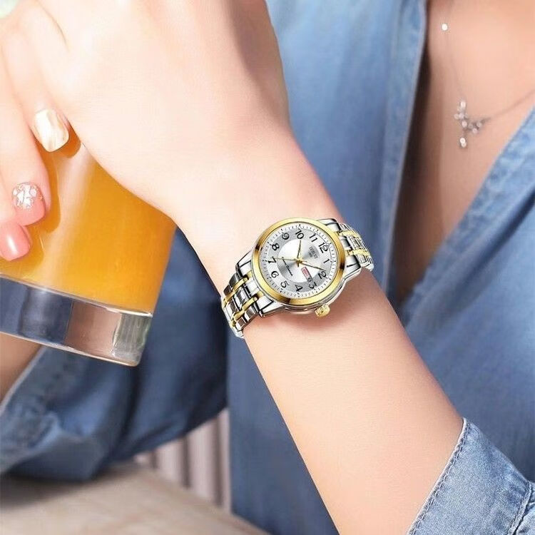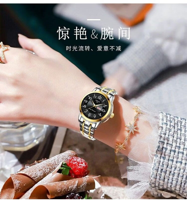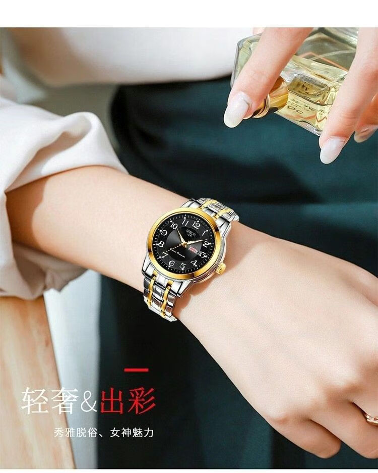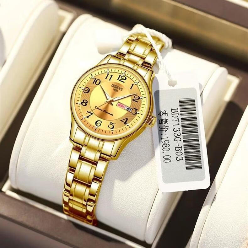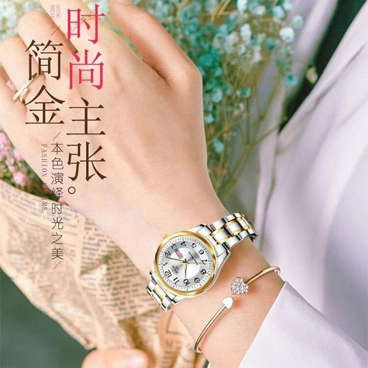 New Swiss watch women's fully automatic mechanical watch luminous waterproof large digital double calendar women's fashion watch movement upgraded version counter same style - all gold gold face hot