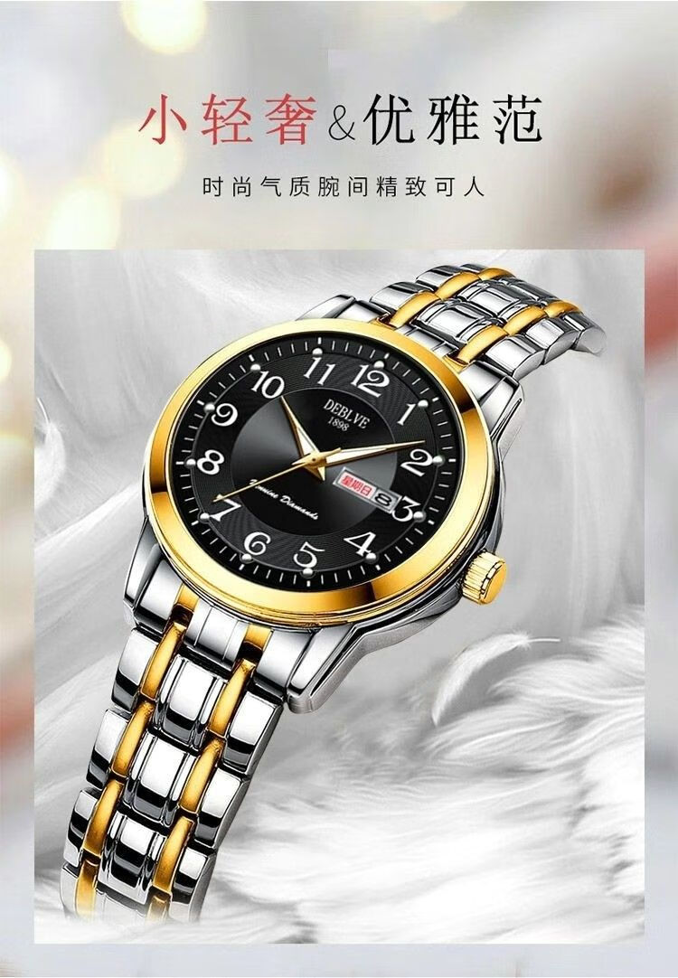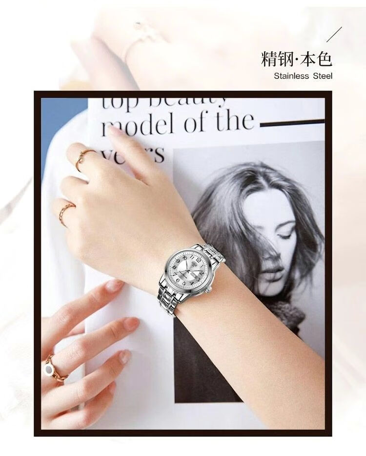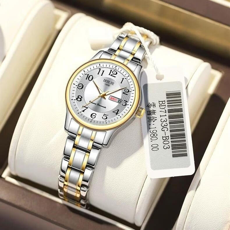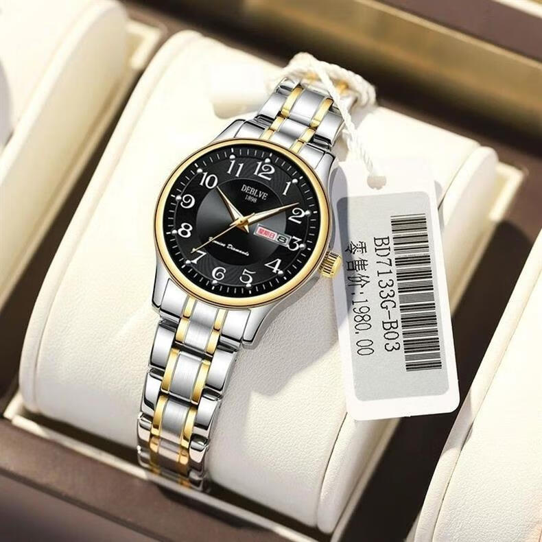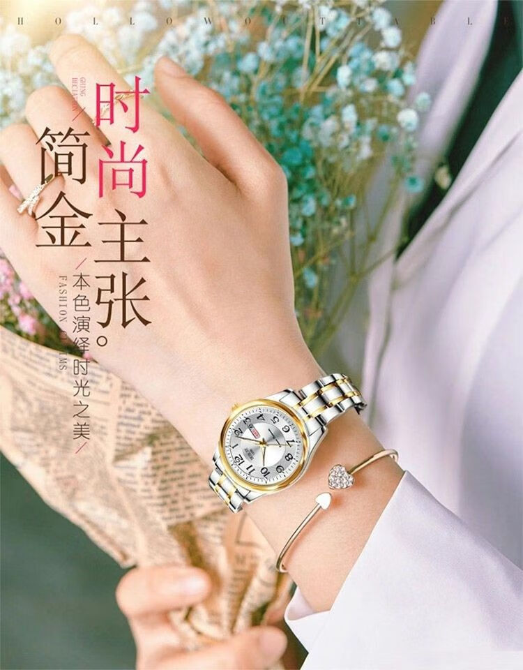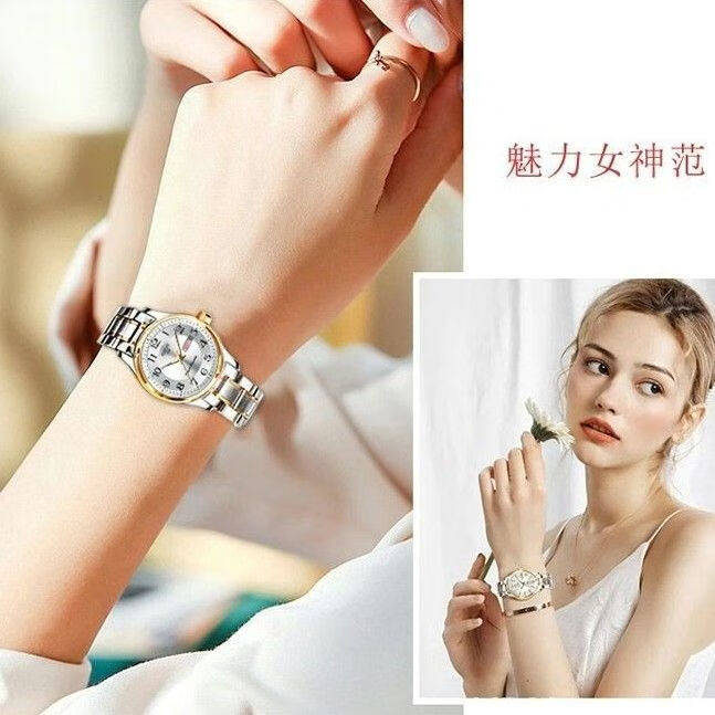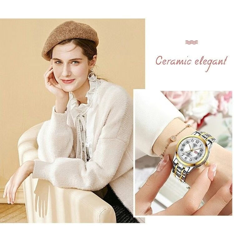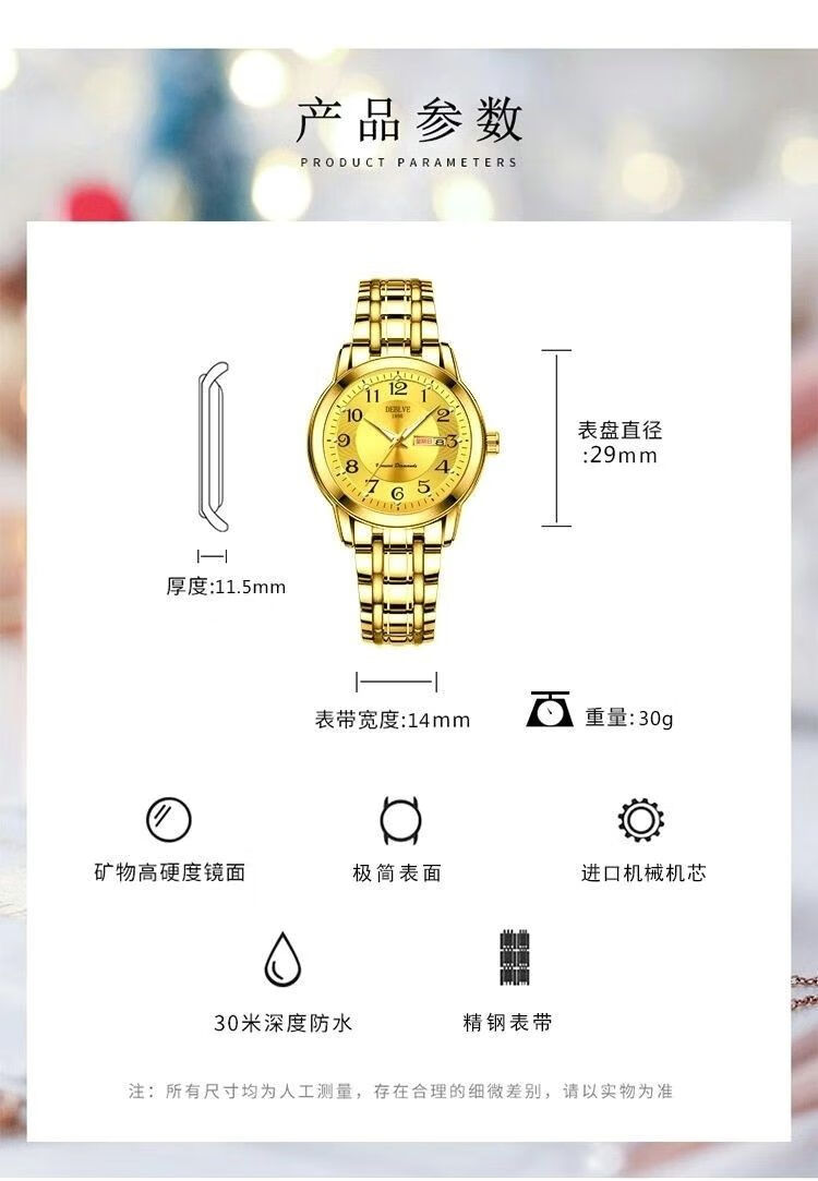 New Swiss watch women's fully automatic mechanical watch luminous waterproof large digital double calendar women's fashion watch movement upgraded version counter same style - all gold gold face hot