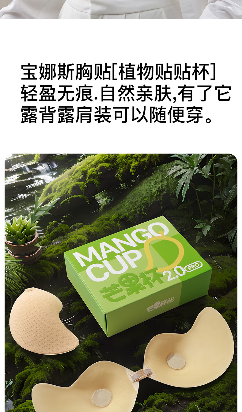 BONAS bra stickers for women's wedding dresses, push-up bras, invisible strapless underwear, silicone breast stickers for small breasts, mango style A cup (thin)_1 pair
