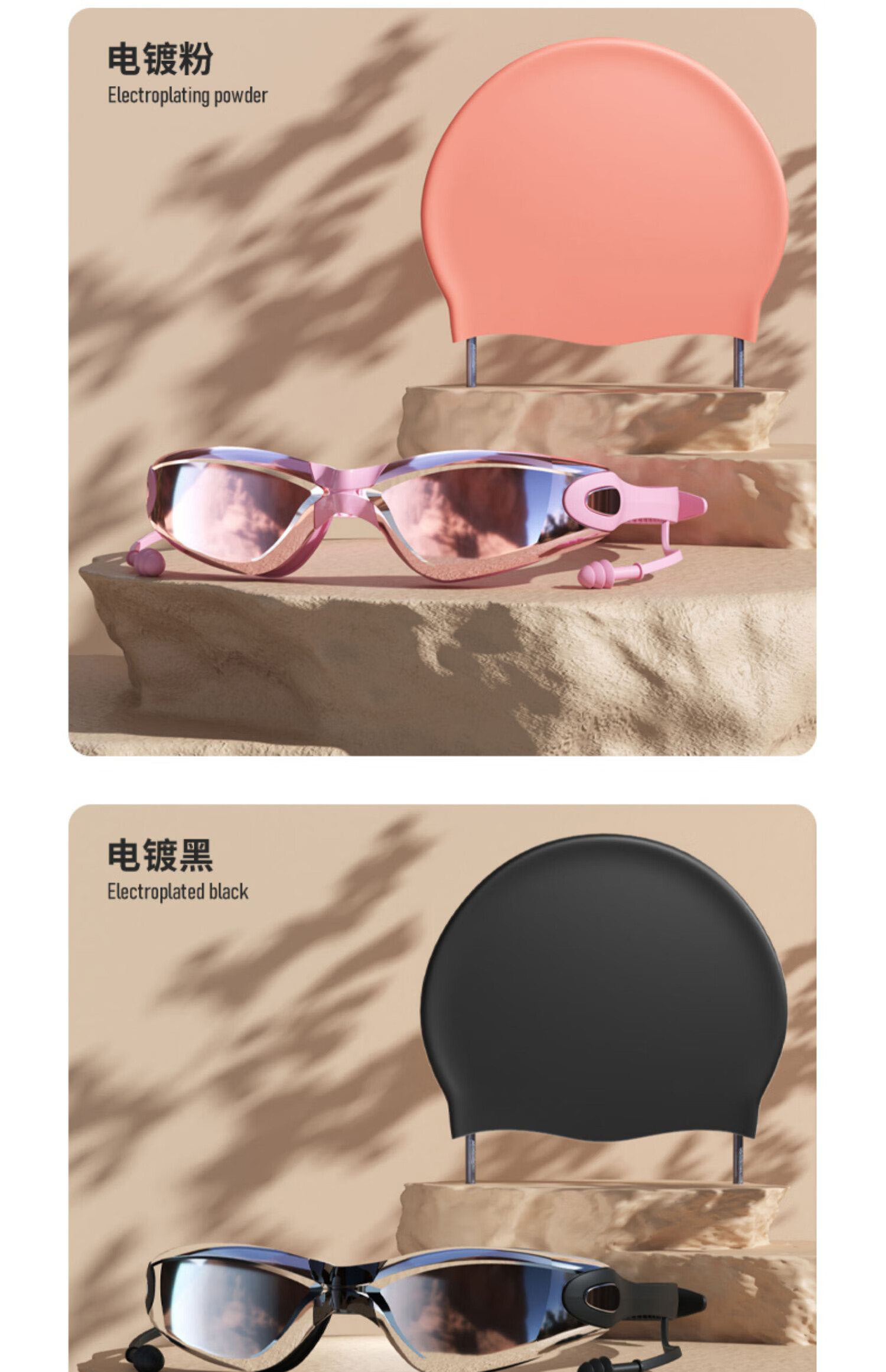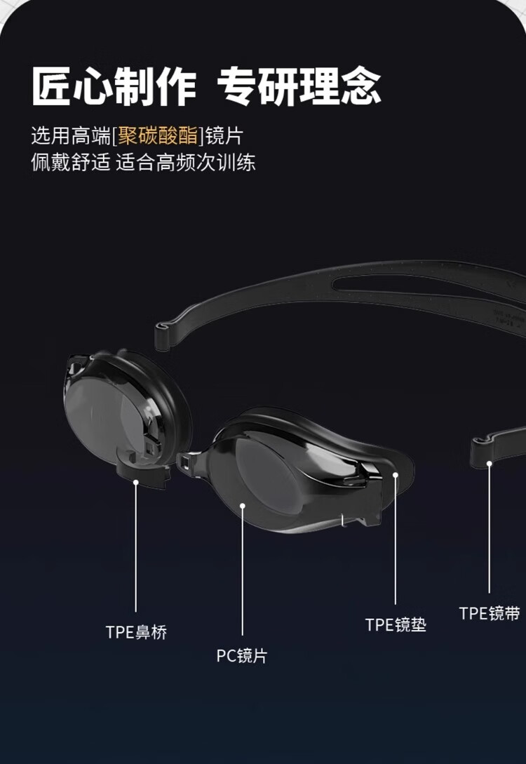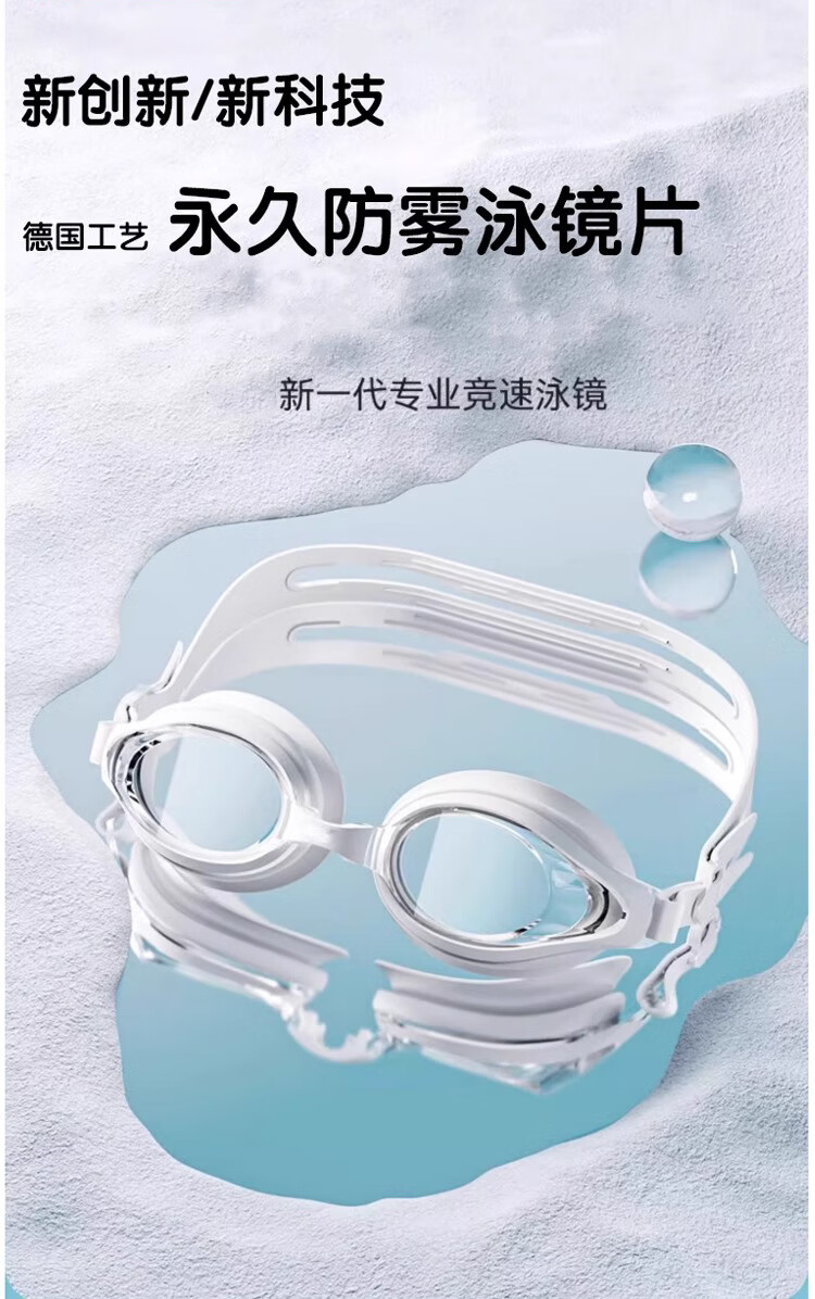 German swimming goggles for men, high-definition, anti-fog, waterproof, professional-grade adult swimming goggles with earplugs for men and women, electroplated black, high-definition anti-fog, anti-UV, flat light