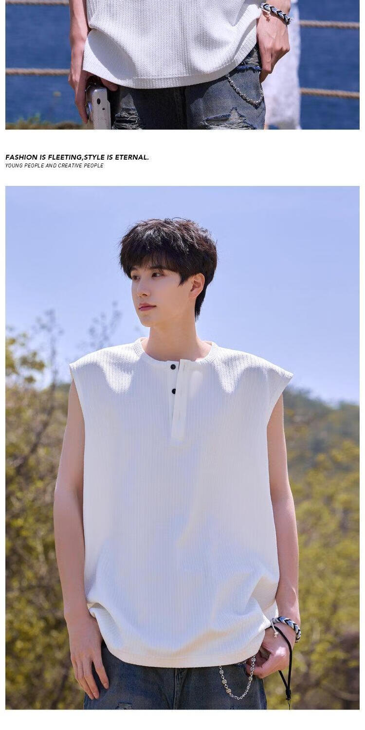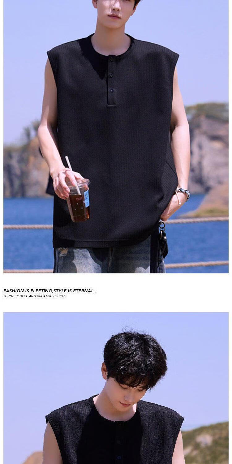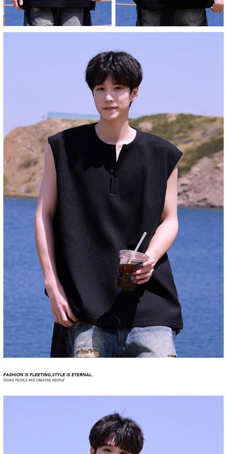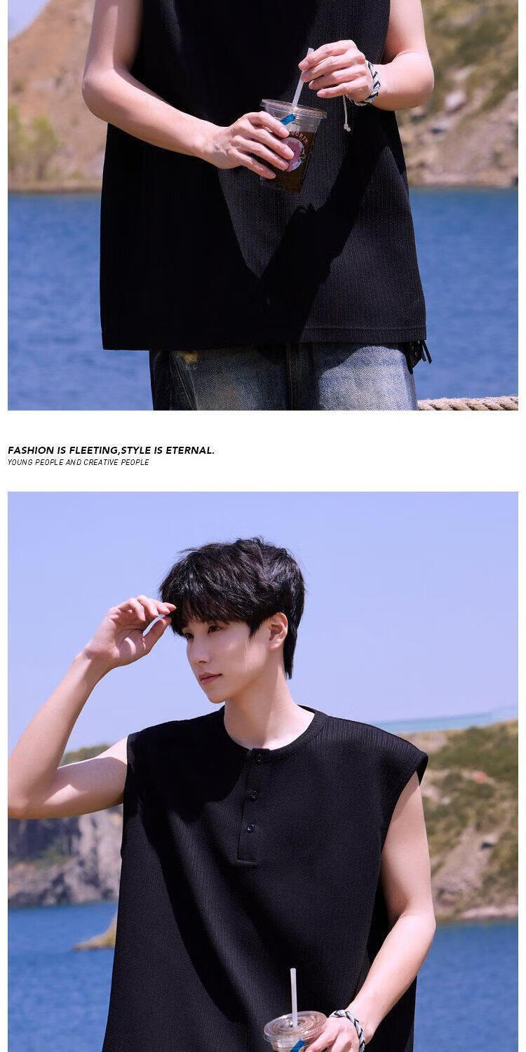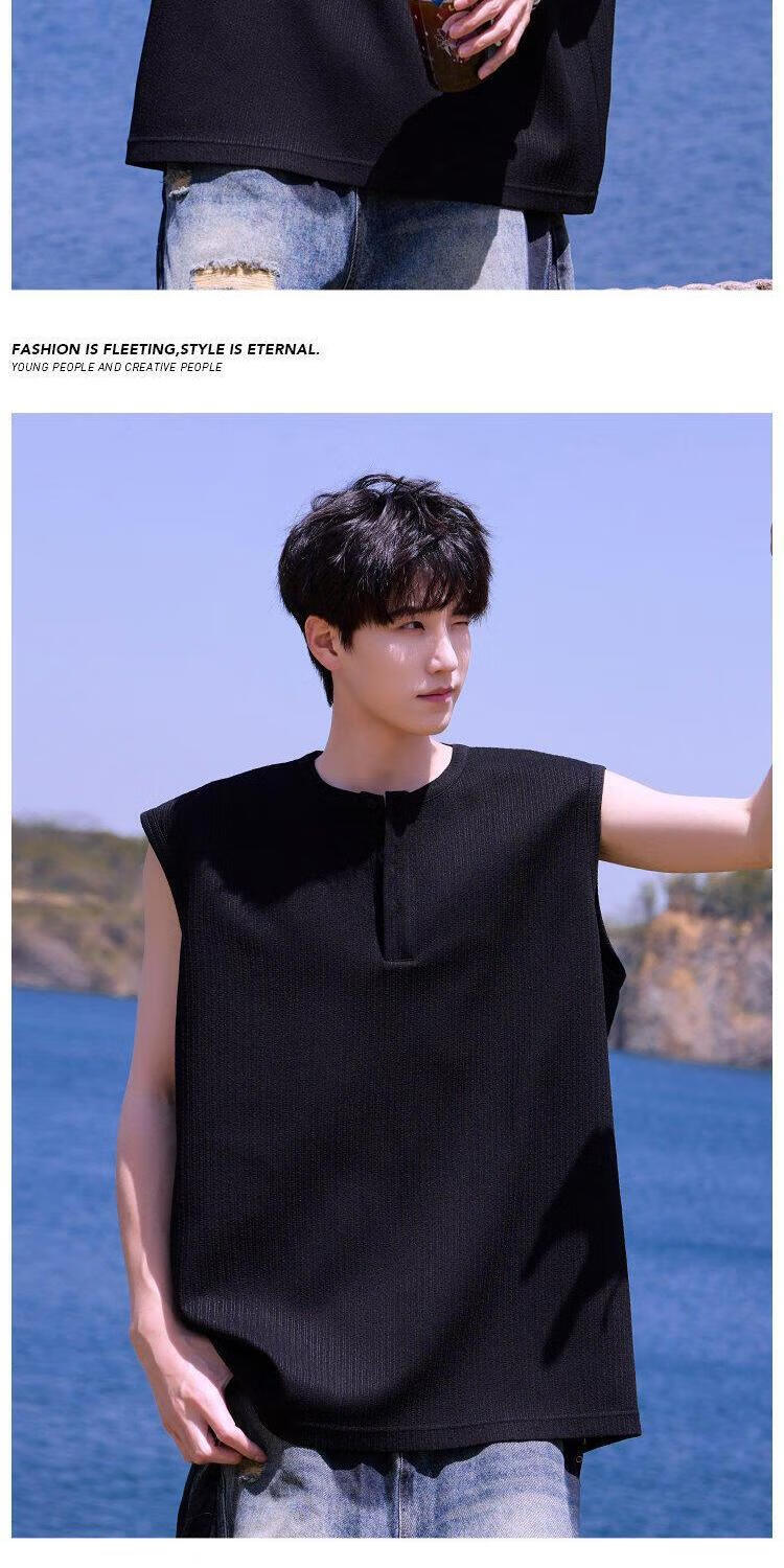 Du Xiaoxian's textured sleeveless vest men's summer thin youth sports fitness vest Henry collar t-shirt black L recommended 100-120Jin Jin equals 0.5 kg