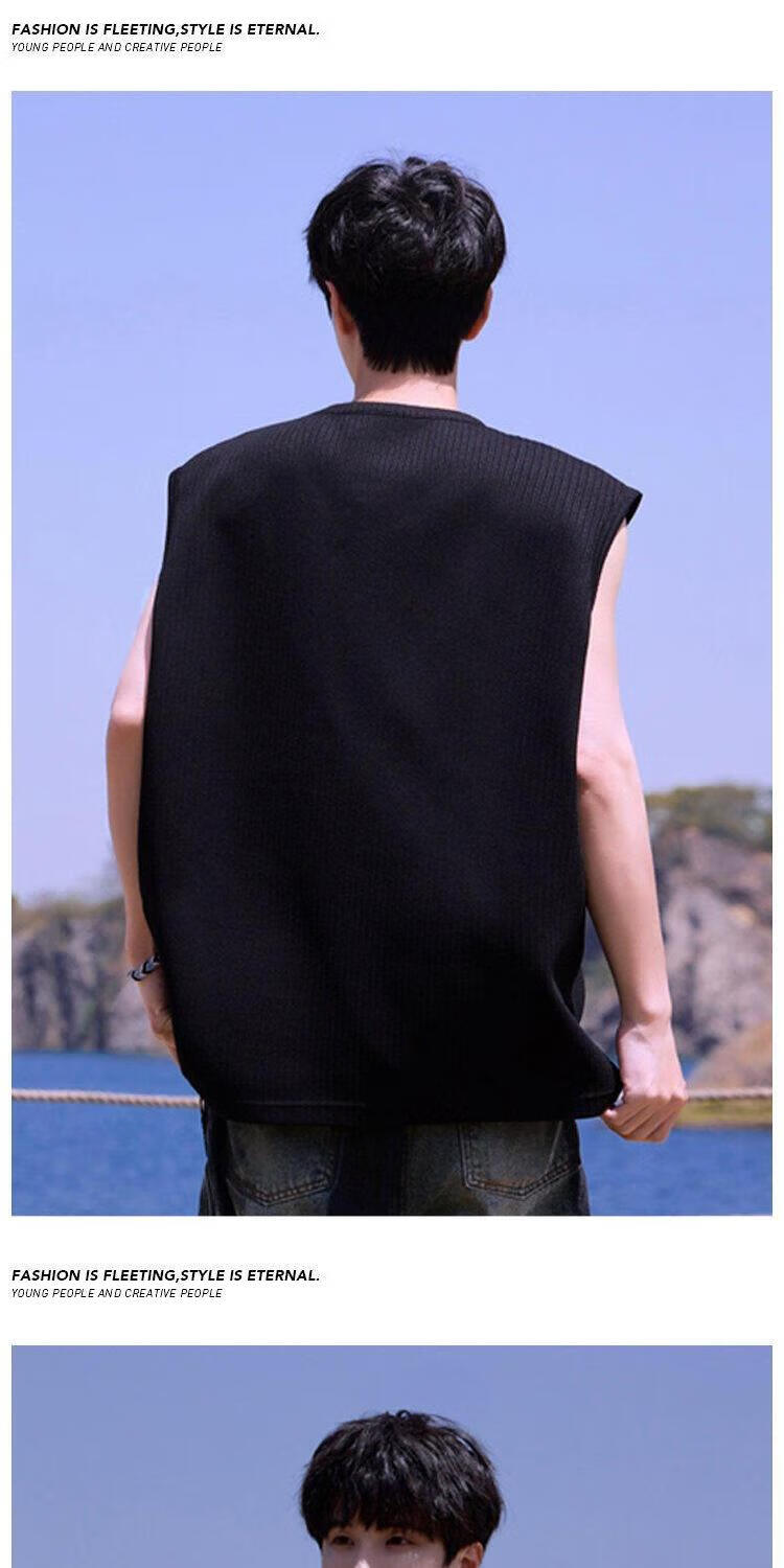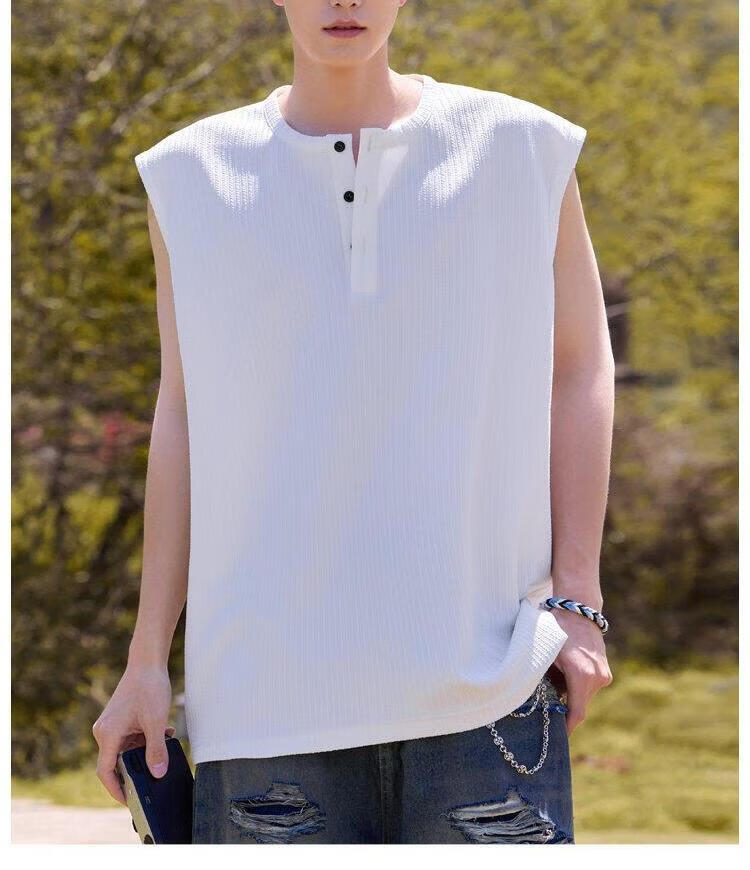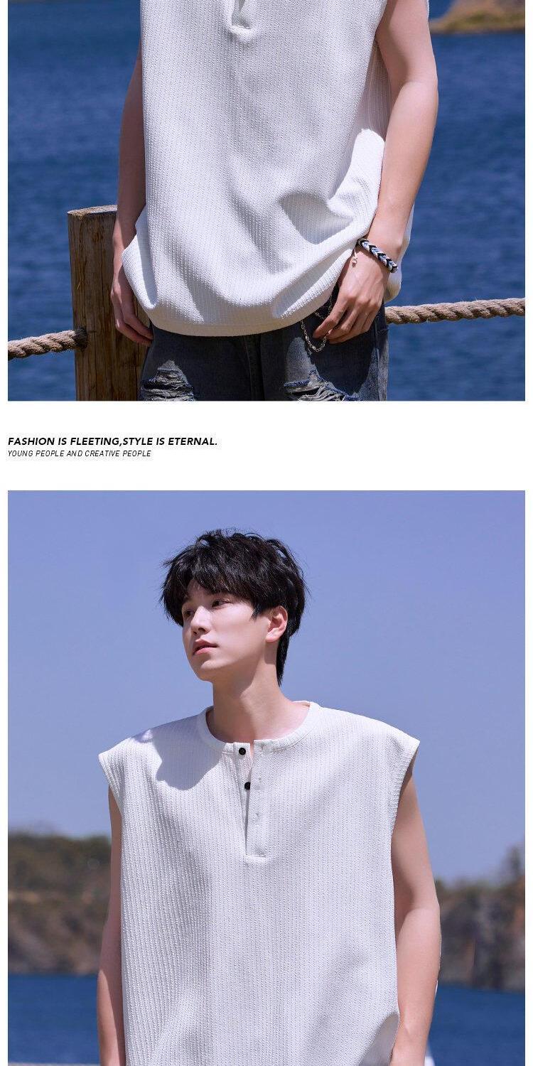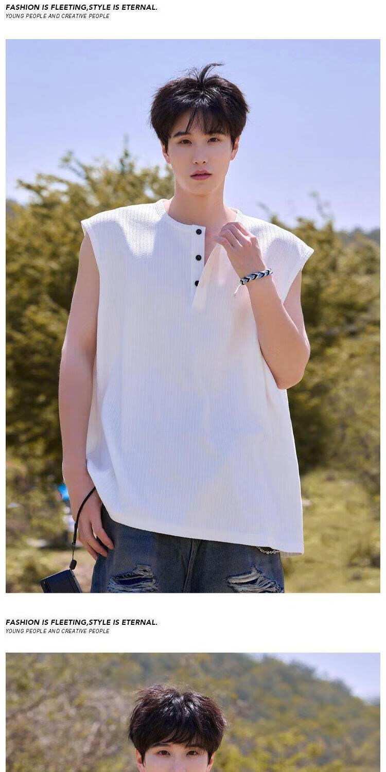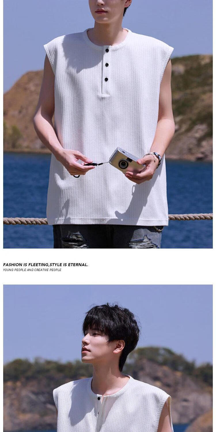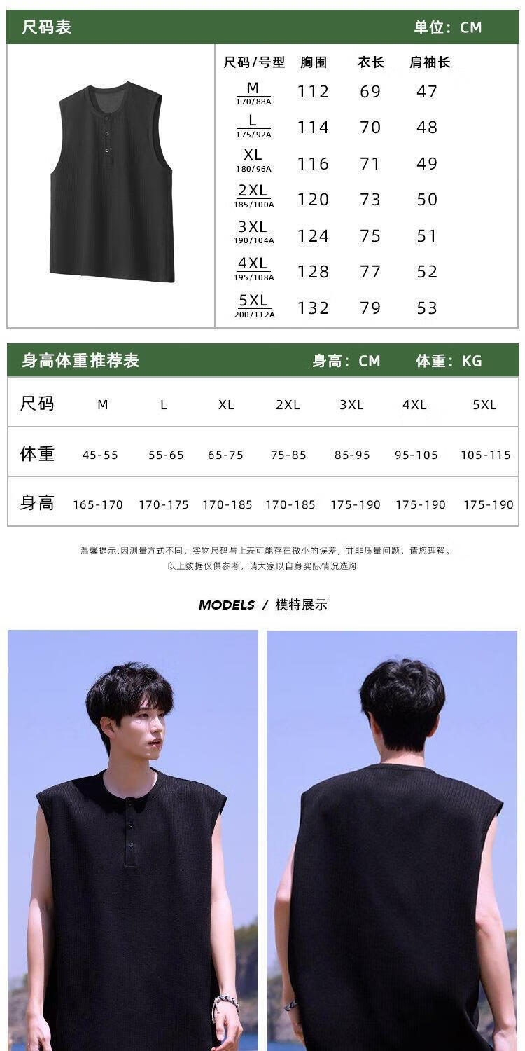 Du Xiaoxian's textured sleeveless vest men's summer thin youth sports fitness vest Henry collar t-shirt black L recommended 100-120Jin Jin equals 0.5 kg