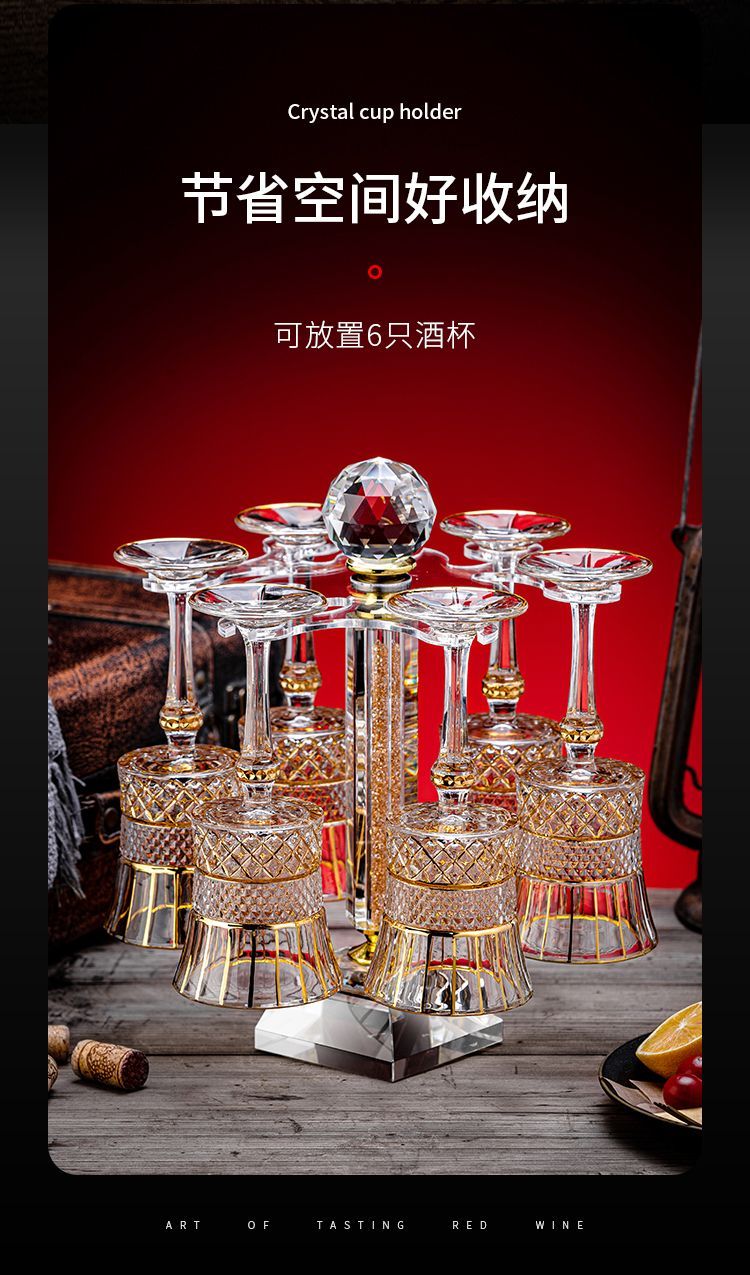 Sophora frost painted gold Visa red wine decanter high-end crystal luxury rotating red wine decanter tumbler gyro design Visa regular style 6 cups regular pack