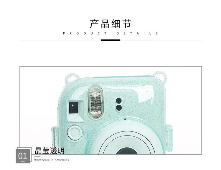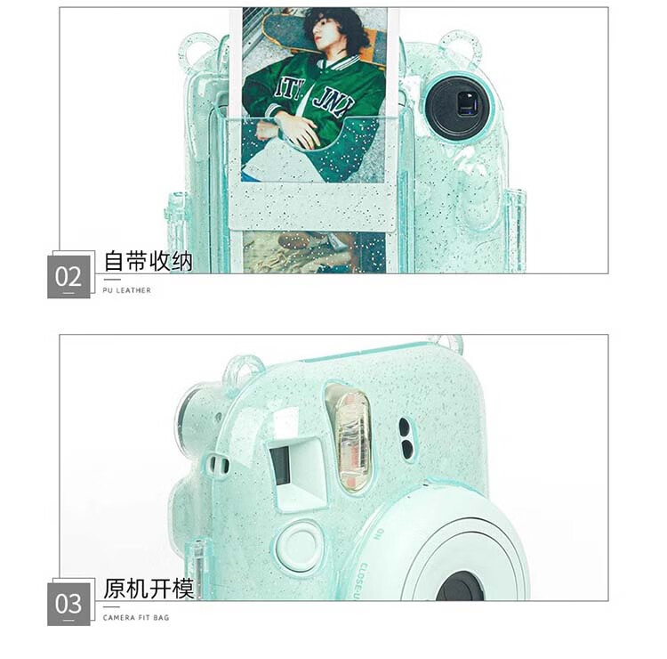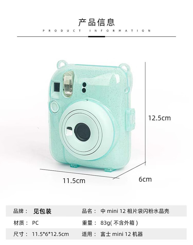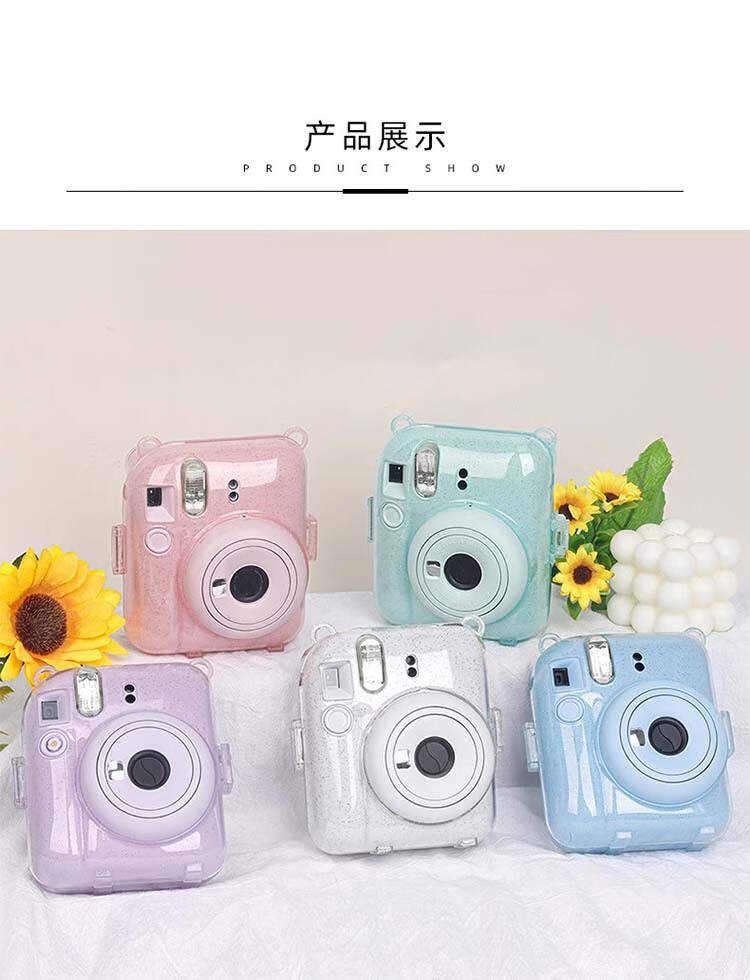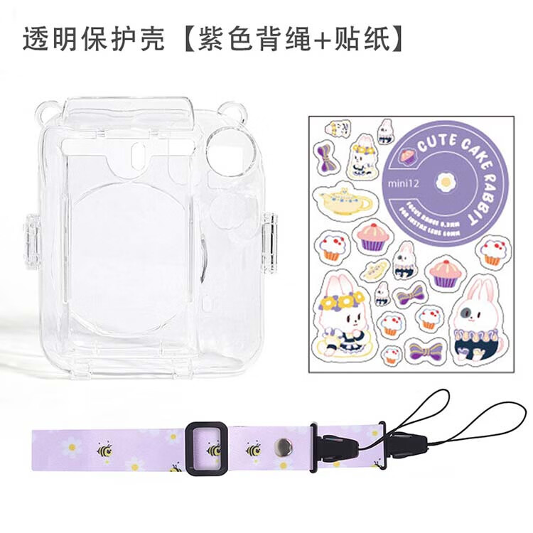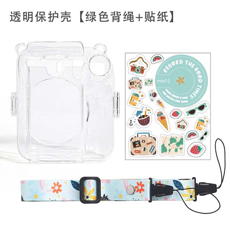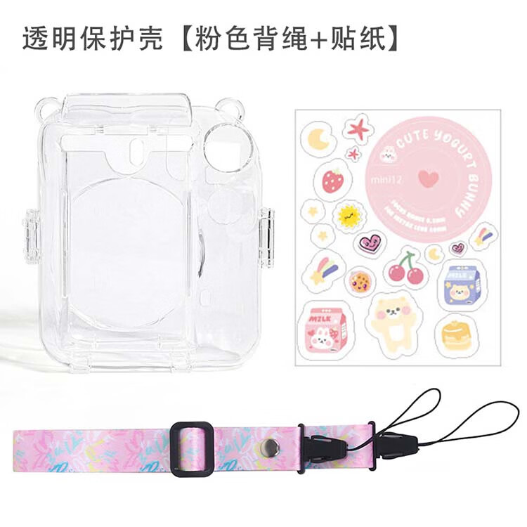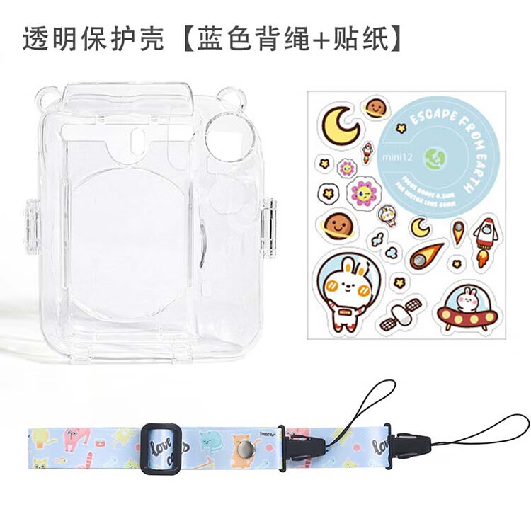 凌云鹤适用拍立得mini12保护壳富士相片袋透明水晶壳相机包 【蓝色背绳+贴纸】透明保护壳 【拍立得mini12保护壳】